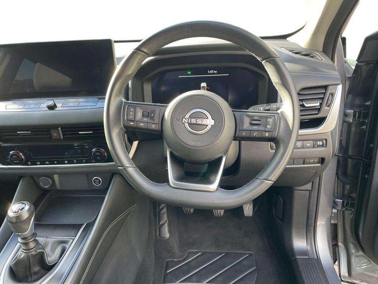 Android auto/Apple CarPlay (Wired), Blind spot warning, Drive modes (sport, normal, eco), Electric speed sensitive power steering, Emergency and breakdown call, Front and rear parking sensors, Full Digital 12.3" TFT Digital Combimeter, Google maps services - search, weather, 3D maps and Google street view, Idle stop/start system, Intelligent around view monitor, Intelligent Cruise control (ICC), Intelligent driver alert system, Intelligent forward collision warning, Intelligent lane intervention, Lane departure prevention, Lane departure warning system, Maximum speed limiter, Moving object detection, Nissan connect 12.3 inch touchscreen infotainment system, Nissan connect navigation, Push button starter, Rear cross traffic alert, Rear view camera, Remote control services - door locks, lights, horn and car locator, Telematics - notifications and connectivity services, TomTom live traffic services, Traffic sign recognition with legal speed adjustment, Trip computer, Virtual personal assistant and firmware over the air capability, Wireless apple carplay, 6 speakers, AM/FM audio system with DAB, Bluetooth audio streaming, Front USB connections (Type-A and Type-C), Rear USB charging only ports (Type-A and Type-C), Auto dimming rear view mirror, Auto rear wiper when reversing, Automatic hazard signal with emergency stop signal, Body colour mirror caps, Body coloured door handles, Bodyside mouldings, Chrome side window finisher, Door handle with button, Electric auto folding door mirrors, Electrically adjustable and heated door mirrors with LED turn indicator, Follow me home headlights, High beam assist, Intelligent auto headlights, LED daytime running lights, LED Headlights, LED rear lights, One touch front and rear electric windows with remote opening and closing, Partially body coloured bumpers, Privacy glass, Rear bumper with graphite insert, Rear reversing light (bulb lighting), Rear roof spoiler, Rear side wing doors, Rear styling plate, Shark fin antenna, Splash free rain sensing wipers, Super UV and infrared cut glass, Three blink turn signal, 12v power socket in dashboard and luggage, 2x Rear coat hooks, 3 bench rear seats in 2nd row, 3 rear headrests, 4 folding assist grip, 6 Luggage hooks - 4 on floor, 2 on side, 6-way manually adjustable driver's seat, 60/40 split folding rear seat bench, Ambient lighting around centre console, Centre console storage tray, Chrome interior door handles, Cloth monoform upholstery, Driver and front passenger sunvisors with illuminated vanity mirrors, Driver seat back pocket, Dual zone automatic climate control with pollen filter, Electrically adjustable lumbar support for driver, Front and rear door storage, Front centre console and armrest, Front cupholders x 2, Front door with bottle holders, Glovebox with light, Hard trunk cover, Height adjustable driver's seat, Height adjustable front headrests, Height adjustable passenger seat, Leather shift knob, Leather steering wheel, Luggage board system, Luggage space lighting, Manually adjustable passenger (slide recline + lifter), Multifunction steering wheel, Passenger seat back pocket, Rear armrest with 2 cupholders, Rear door bottle holders, Single front passenger seat, Soft PVC kneepad, Steering wheel switches, Sunglasses holder, Tilt/telescopic adjustable steering wheel, Two rear isofix child seat anchorage points with top tether, Welcome light and console tray ambient lighting, 3x3 point rear seatbelt pretensioners + load limiters, ABS with EBD and brake assist, Active brake limited slip, Auto hold function, Child locks on rear doors, Curtain and front side, far side airbags, Driver and passenger airbags, Driver, passenger and 2nd row rear seat belt reminder, Electronic parking brake, Front seatbelt pretensioners + load limiters, Height adjustable front seatbelts, Hill start assist, Intelligent blind spot intervention, Intelligent front emergency braking with pedestrian, cyclist recognition and junction assist, Intelligent rear automatic braking, Tyre pressure monitoring system, Vehicle dynamic control, Capless fuel filler, Engine immobiliser, Intelligent Key, Remote central door locking with deadlocking, Thatcham Cat.1 alarm, Interior instrumental panel B finisher, 18" Diamond cut alloy wheels, Tyre puncture repair kit,
