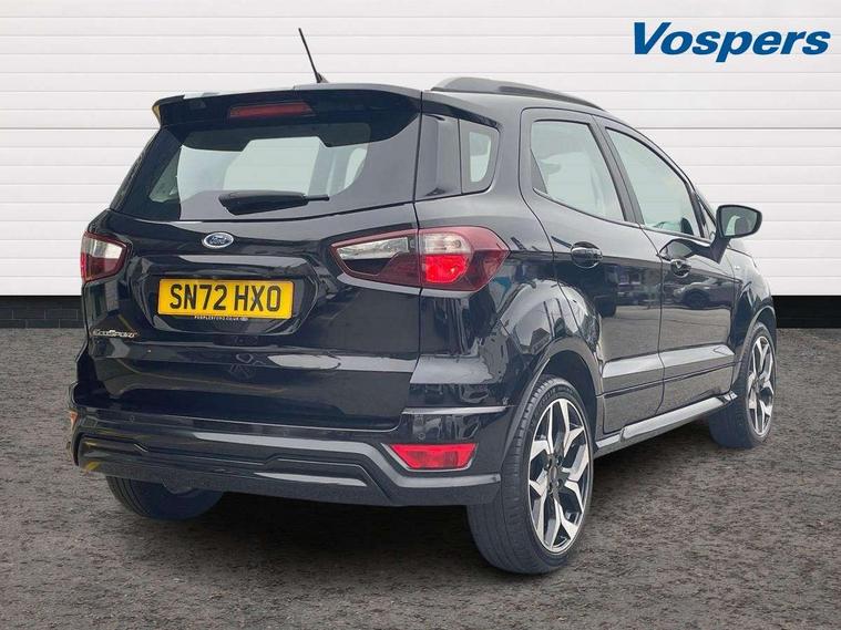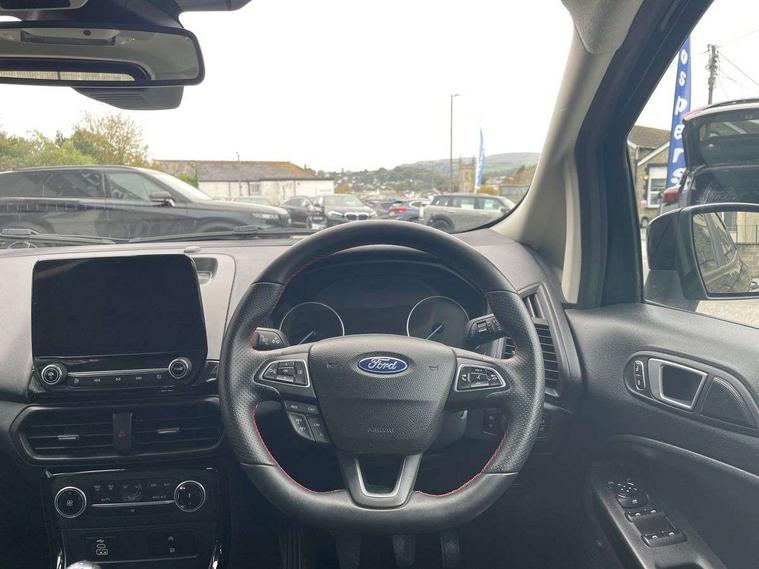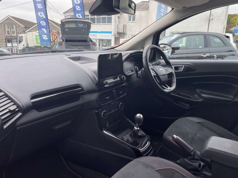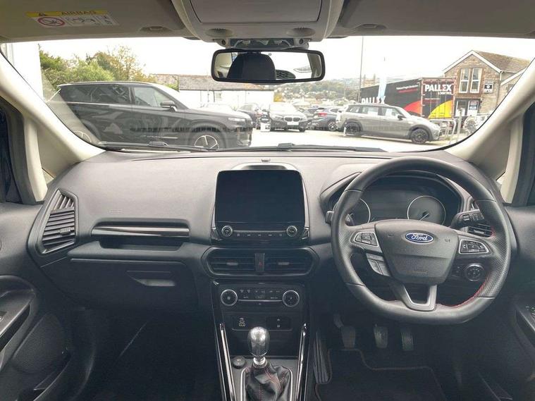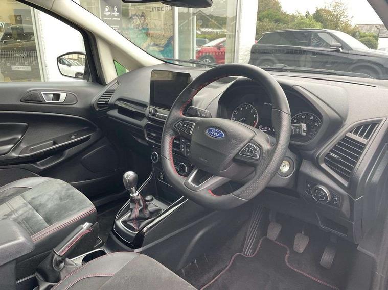 Cruise control, e-Call (emergency call), Easy fuel capless refuelling system, Ford SYNC 3 nav system with DAB radio, 8" screen, emergency assistance, Apple car play/Android auto, 2x USB, 6 speakers, Ford pass connect, Intelligent speed limiter, PAS, Rear parking sensors, Rear view camera, Traffic sign recognition, Trip computer, Sports suspension, Steering wheel mounted audio controls, Auto dimming rear view mirror, Automatic front wipers, Automatic headlights, Black roof rails, Body colour door handles, Body coloured bumpers, Chrome lower window surround, Electrically adjustable and heated door mirrors, Front fog lights, Front grille bars and surround in black, Headlight levelling control, Large rear roof spoiler, LED day running lights, LED third brake light, Power front and rear windows, Puddle lights, Quick-clear heated windscreen, Rear side wing doors, Rear wiper, ST Line body styling kit - Black headlamp bezel, front and rear sport bumpers, body colour lower door claddings, 12V socket in front and rear, 3 seat bench in 2nd row, 60/40 split rear seats, Ambient lighting, Centre console with sliding front armrest, Cooled glovebox, Courtesy lights with map reading light, Driver seat height/lumbar adjust, Driver's side glovebox, Driver/passenger sunvisors and lidded vanity mirrors, EATC - Electronic Auto Temperature control, Folding grab handles, Front head restraints, Front seat back map pockets, Illuminated glovebox, Illuminated luggage compartment, Isofix system on outer rear seats, Luggage compartment carpet, Neosuede/Partial sensico leather upholstery, Overhead console with sunglasses holder, Rake adjustable rear seats, Reach + rake adjustable steering column, Rear headrests, Sensico trimmed steering wheel, handbrake and gearshift gaiter with red stitching, Single front passenger seat, ST-Line Front floor mats with red stitching, Stainless steel sports pedals, Storage drawers under front seats, Tie down hooks, Variable boot floor, 3x3 point rear seatbelts, ABS, Autonomous emergency braking, Child locks on rear doors, Curtain airbags, Driver airbag, Drivers knee airbag, Electronic Stability Programme with hill launch assist, Front passenger airbag deactivation, Front side airbags, Passenger airbag, Pre collision assist system with AEB, Seatbelt reminder for driver and front passenger, Traction control, Tyre pressure monitoring system, Immobiliser, MyKey system, Remote central locking, Thatcham 1 volume sensing alarm, Low rolling resistance tyres, Tyre inflation kit,