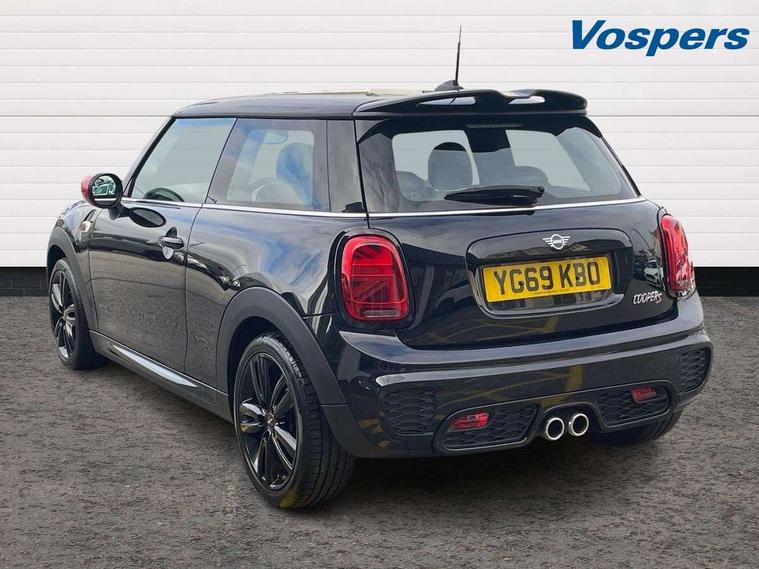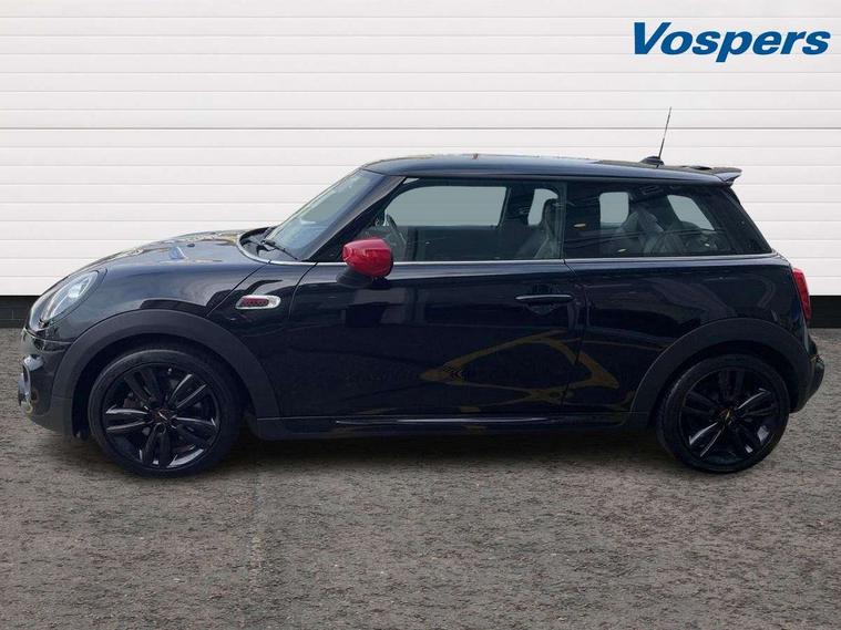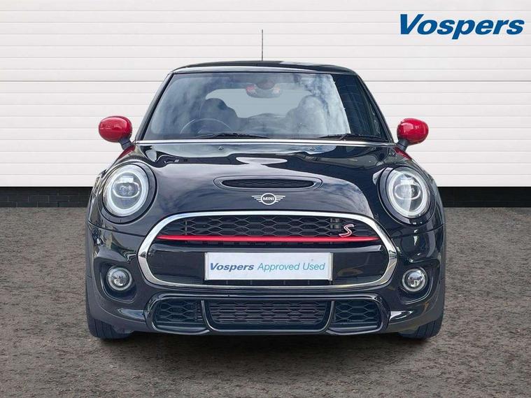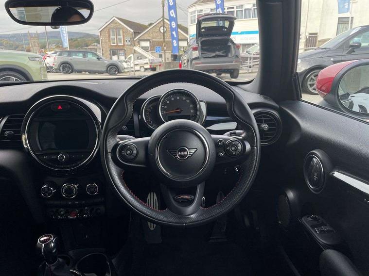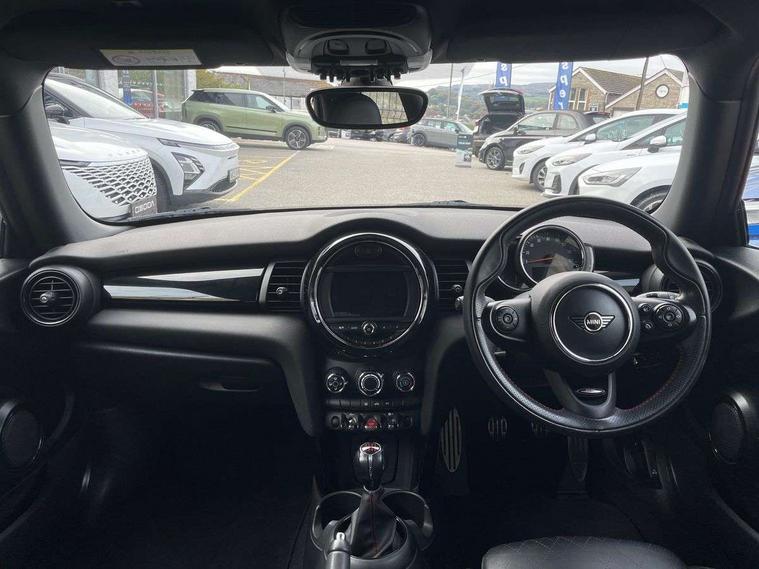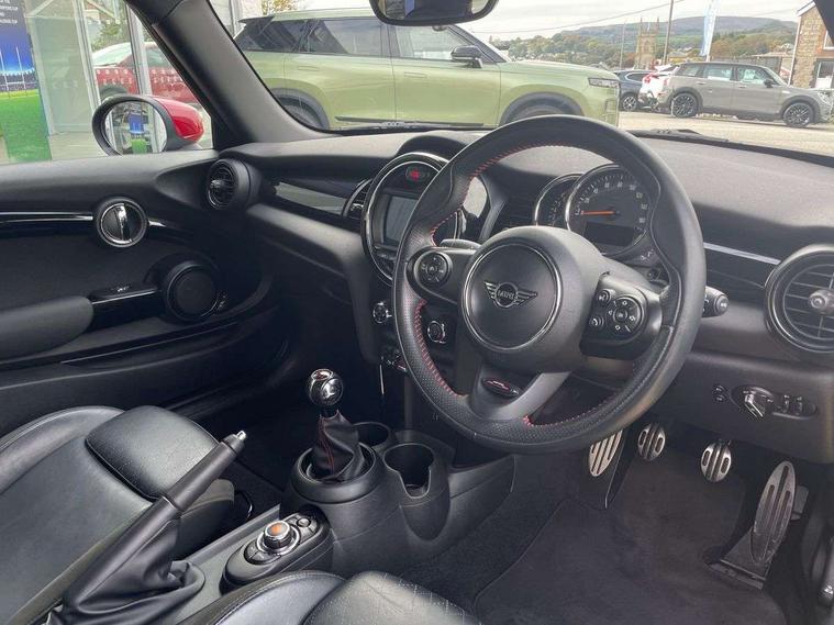 Automatic start/stop function with brake energy recuperation, Compatible mobile phone bluetooth with audio streaming, Electro-mechanical speed dependant steering assistance, Instrument cluster, Mini E-call, MINI TeleServices, On board computer, Service interval indicator, Double Vanos system, Fully variable valve control, High precision injection, Performance Control, 6.5" touchscreen with LED ring, FM tuner and DAB digital radio, Automatic headlight activation switch, Bonnet scoop, Chrome border honeycomb structure radiator grille with S badge, Chrome plated fuel cap, Dynamic brake lights, Electric front+rear windows, Heated rear window, Heated windscreen washer jets, John Cooper Works - aerodynamic kit (front and rear apron, spoiler), front and rear sport bumpers and part-painted side sills with door sill finishers, John Cooper Works rear spoiler, LED headlight with closed ring and daytime driving lights, Metal door sill strips with Cooper S imprint, Model logo Cooper S on right of tailgate, Rain sensor window wipers, Rear fog lights, Rear LED lights with union jack design, Rear window wiper, Side scuttle panel with integrated indicator, Sun/heat protection glass, Two central exhaust tailpipes with chrome finisher, White indicator lenses, 12V Accessory socket in centre console, 4 lashing eyes in luggage compartment, 60/40 split folding rear seat, Anthracite headlining, Chrome interior highlights, Cupholders, Front and rear head restraints, Front and rear isofix with front passenger airbag deactivation, Glove compartment, Height and length steering column adjustment, Interior lighting with 12 basic colours selectable via toggle switch in roof, John Cooper Works leather steering wheel with contrasting stitching in Chilli Red with John Cooper Works logo, John Cooper Works Logo in seat, Leather gearshift lever and handbrake gaiters, LED reading lights, vanity mirror lights, front foot well light and spotlight on front seats, Manual air conditioning, Mechanical seat adjustment, driver seat height adjust, forward/back and front seats backrest, Mini logo projection on floor from drivers exterior mirror, Multifunction steering wheel, Storage compartments in doors, Storage pocket on back of front seats, Sunvisors with vanity mirrors, 3 point seatbelts on all four seats, 6 Airbags - front, side, head and seat belt tensioners, Anti-lock braking system (ABS), DSC - Dynamic Stability Control, Front and rear disc brakes, Hill start assist, Two tone horn, Tyre pressure monitoring system, Alarm system with tilt sensor, monitoring doors, bonnet interior and tailgate, Electronic vehicle immobiliser, Start/stop toggle with keyless go, Tool kit,
