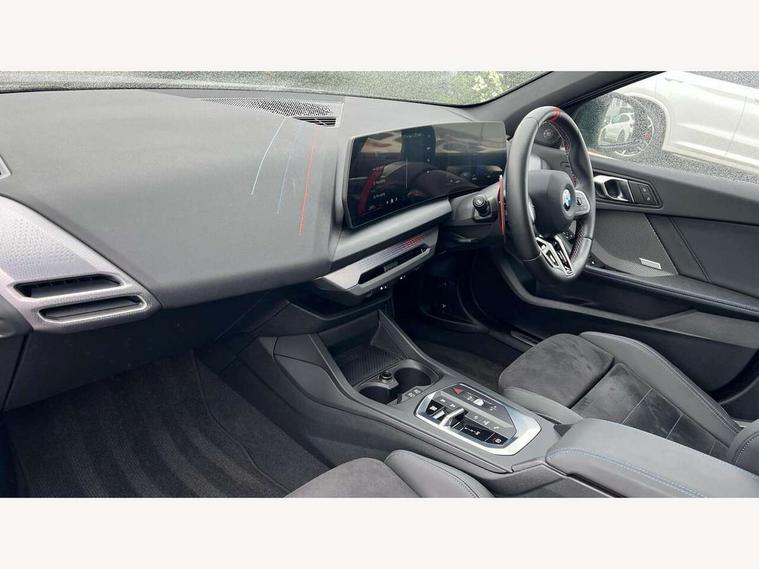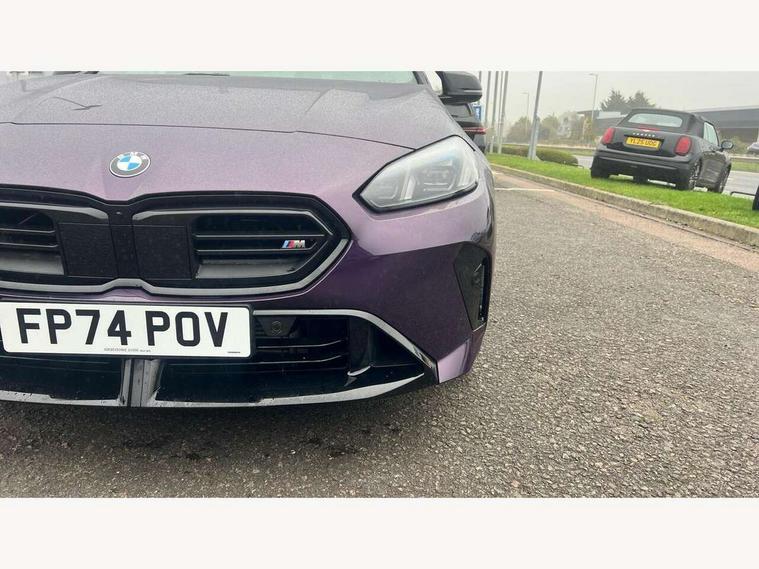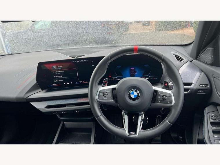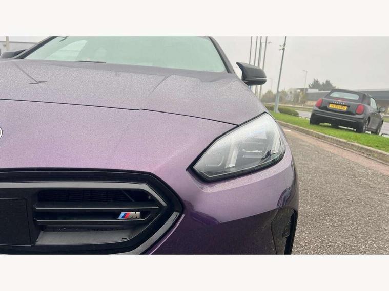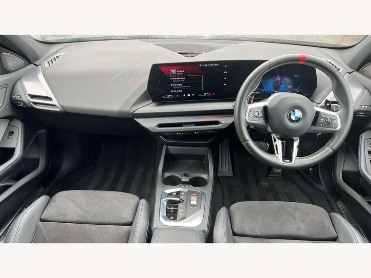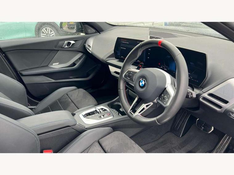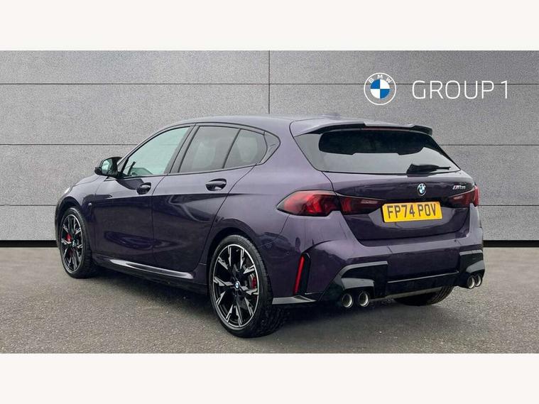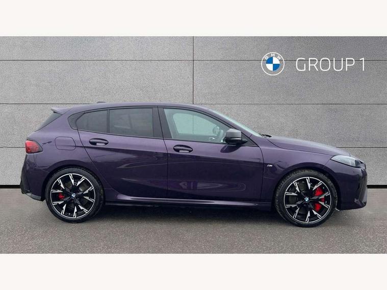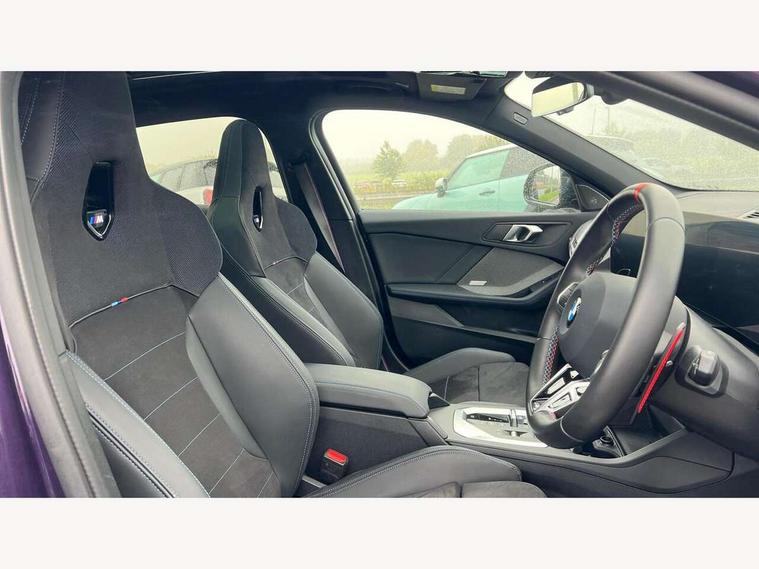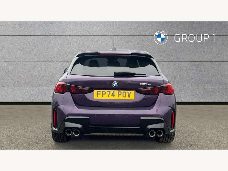 Active guard plus, Attentiveness assist, Bluetooth / WiFi interface for wireless connection of mobile terminal devices and audio streaming, BMW ConnectedDrive online services, BMW Live cockpit plus, BMW Teleservices, Check Control warning system for monitoring of lights and door/luggage compartment open warning, Cruise control with speed limiter, Eco pro mode, Electric power steering, Electro hydraulically controlled multi-plate clutch transfers drive to rear axle and with power take-off device located on the front differential., Energy efficient operating strategy, Front and rear parking sensors, Front axle single joint with specific axle kinematics to minimise drive influences on steering + provide increased rigidity agile driving behaviour, Gearshift time display in manual mode, Integrated owners handbook, Lane departure warning system, M Sports steering with M135i xDrive specific settings, Oil sensor for level and grade, On board computer, Optimum shift indicator, Park assist including reversing assistant, lateral parking aid and reversing assist camera, Personal Profile, Pull away assistant, Rigidly mounted rear subframe - Multi link construction with separate spring / damper configuration and excellent driving characteristics, Speed limit Info including no-overtaking indicator, Speedometer, Sporty fast gear shifting in sport mode, 49 litre fuel tank, Aluminium lightweight construction, Anti roll bar front and rear, Balancer shaft, Double VANOS, Drive Performance Control, Eight speed sport automatic transmission with gearshift paddle switches, Electronic differential lock, Electronic selector lever, Engine cover with M performance designation, High precision injection, Launch control, M Adaptive suspension, M135i specific heavily de-throttled engine intake air guide, M135i specific high-performance cooling package, M135i specific larger turbocharger with integrated divert-air valve, Petrol Particulate Filter, Twin tube gas filled shock absorbers with degressive characteristic curve, VALVETRONIC engine management, Variable, stepless and infinitely adjustable distribution of drive torque between the front and rear axles, xDrive intelligent all wheel drive with M135i specific reinforced components, DAB Digital radio, Harman/Kardon surround sound audio system with 464W amplifier power, 9 channels and 16 speakers, Auto dimming rear view mirror, Automatic headlight beam throw control, Automatic windscreen wipers and automatic headlight, Body colour door handles, Body colour roof trims, Cerium grey exterior mirror caps, Direction indicator side lights in exterior mirrors, Electrically adjustable exterior mirror with mirror adjustment switch on drivers armrest and aspheric on driver side, convex on passenger side, Exhaust tailpipe, Cerium Grey with bevelled finish - twin, round 100mm, left and right split, Fading support, Folding side mirrors with auto dimming/folding wing mirrors with auto dimming, Follow me home headlights, Front and rear bumper system with replaceable deformation elements, Front and rear electric windows with open and close fingertip control, anti trap facility and comfort closing, Front door sill finishers with M135i designation, Green tinted heat protection glazing, High gloss shadowline window frame, Recess cover mirror frames and B/C pillar embelisher trim, High level third brake light, Integrated front windscreen with washer jets, Kidney grille frame in Cerium Grey with Mesh design, LED daytime running lights, LED eyebrow turn indicators, LED Headlights, Lightweight engineering, M Performance exhaust system with valve control and minimised exhaust back pressure, M Performance specific setup, M sport roof spoiler, Matt black air guide grilles, Matt black wheel arch trim, Nearside reverse light in rear light cluster, Preparation for high beam assistant, Rear fog lights, Rear side wing doors, Rear window wiper, Reinforced crank drive, new pistons and adapted con rods, Shark fin antenna, Sun protection glass, Trailer stabilisation logic, Visible VIN plate, Welcome lighting, 12V power socket in front centre console with blanking plug, 3 rear seat head restraints, 3 seat bench in 2nd row, 3 spoke sports leather steering wheel with black leather and stitching, pearl chrome decorative finish, specific M Badge, Anthracite headlining, Black boot net with lashing eyes, Cargo function on 2nd seat row, Child seat ISOFIX attachment for two outer rear seats and front passenger seat with anchorage points, Conditioned based service, Driver and front passenger backrest net on rear, Driver and front passenger seat heating, Driver side folding compartment in instrument panel, Folding rear clothes hook, Four grab handles integrated in roof lining, Front and rear door pockets with bottle holders, Front and rear side armrest integrated into door trim, Front armrest, Glove compartment, Height adjustable front head restraints, Luggage compartment for bag hooks on left and right, foldable luggage compartment liner and four lashing eyelets, Manual adjust steering wheel, Multi-function controls for steering wheel, Rear seat backrest with manual 60:40 split folding with 3 top tether clips integrated on rear of seat panels, Single front passenger seat, Storage compartment in centre console, Storage compartment in luggage compartment, Stowage of the parcel shelf in luggage compartment trim, Sun visors with vanity mirrors and insert tab, Two front centre console cupholders, Type C two USB ports in rear centre console, Velour floor mats, Connected pack professional - 1 Series, Interior lights pack - 1 Series, M Sport exterior styling aerodynamics pack - 1 Series 135i, 2 tone horn, 3 point seatbelts on all seats, front pyrotechnic belt tensioners, stopper and belt force limiters, rear coded belt buckles, Airbags - Front driver/passenger, front and rear curtain head protection, front side, manual deactivation of front passenger airbag, Anti lock braking system (ABS) with brake assist, BMW emergency c