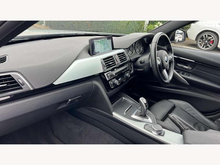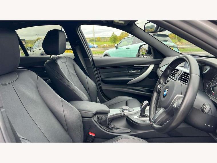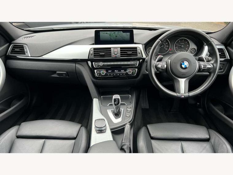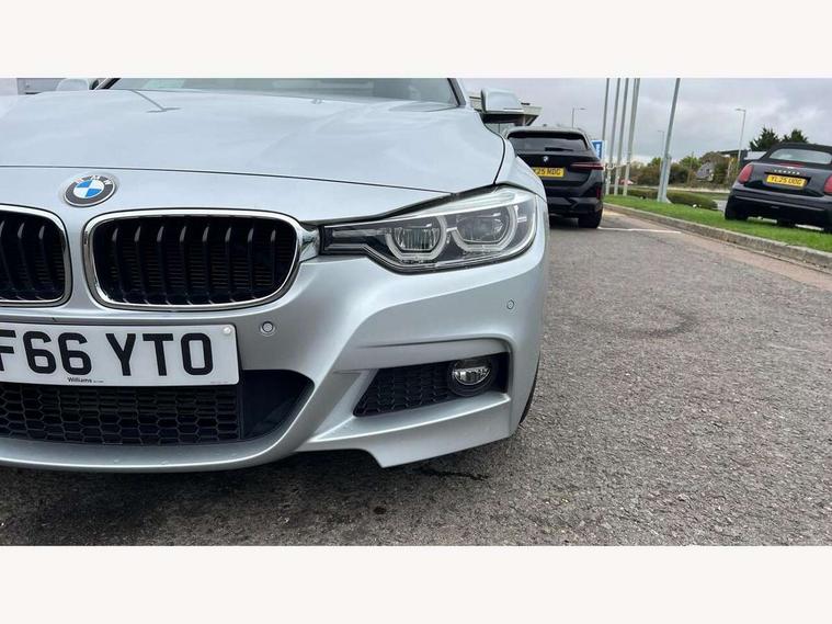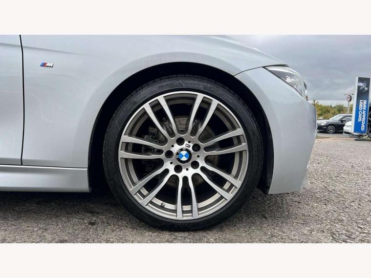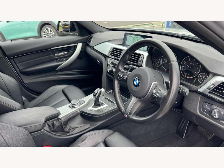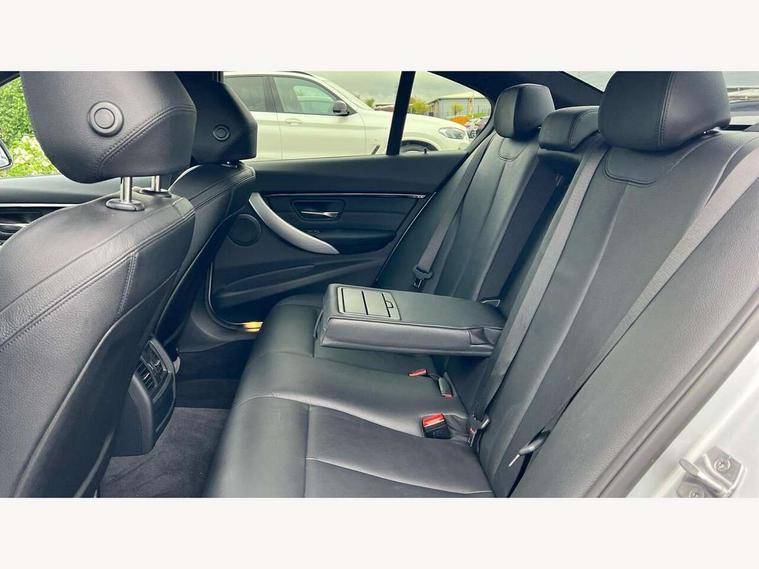 BMW Online services, BMW Teleservices, Brake force display, Brake pad wear indicator warning light, Check control system, Digital clock, Door/boot open warning light, Front/rear park distance control, Lights on warning, Oil temperature gauge, On board computer, On board diagnostics, Operation warning of all exterior lights, Outside temperature display, Push button starter, Run flat tyre indicator, Service interval indicator, Traffic message channel (TMC), Diesel particulate filter, Drive Performance Control, Electronic differential lock, Sports function on gearbox with steering wheel mounted gearshift paddles, Auxiliary point for auxiliary devices, BMW professional radio/CD/MP3, CD Changer preparation, DAB Digital radio, 'Guide me home' headlamps, 2 speed adjustable intermittent wipers with wash/wipe function, Auto dimming rear view mirror, Automatic headlight beam throw control, Body colour bumpers, Body colour door handles, Body colour electric adjustable door mirrors, Body colour roof mouldings, Chromed finished twin exhaust, Clear indicator lenses, Door sill finishers, Dynamic brake lights, Electric front and rear windows with one touch/convenient open/close function, Front ornamental grille with chrome plated kidney bars and chrome bezel, Green tinted heat insulating glass, Heated rear window with automatic switch off, Heated windscreen washer jets, High gloss shadow line, LED daytime running lights, LED fog lights, Rain sensor + automatic driving lights control, Shark fin roof aerial, 12V sockets in front centre console and passenger footwell, 2 x folding cupholders in instrument panel above glovebox, 3 rear seat head restraints, 4 foldable grab handles - rear with clothes hook, 4 lashing points to secure luggage, Automatic interior light soft on/soft off system, Driver and passenger sunvisors with vanity mirrors + slide cover, Dual zone automatic air conditioning, Folding front centre armrest + storage, Front and rear door armrests, Front and rear velour floor mats, Front door storage bins with bottle holder, Front sports seats with electric side bolster adjustment, Glovebox light, Height adjustable front headrests, Indirect front interior illumination - soft-light function, Individual anthracite headlining, Isofix system on outer rear seats, Leather gear knob, Leather gear selector lever handle, Leather handbrake grip, Lockable glovebox, Luggage compartment lighting, M sports leather steering wheel, Multi-function controls for steering wheel, Reach + rake adjustable steering column, Rear centre armrest with 2 cupholders, Rear storage compartment in multifunction centre console with sliding cover, Storage compartment in rear doors, Toolkit located in luggage compartment, Extended lighting package - 3 Series, 3 point inertia reel seatbelts + pre-tensioners on outer rear seats, ABS, Automatic Stability Control (ASC), BMW emergency call, Cornering brake control (CBC), Crash sensor, Driver and passenger airbags, DSC+, Dynamic brake control, Dynamic Traction Control - DTC, Front and rear head airbags, Front passenger airbag deactivation, Front seat side impact airbags, Front seatbelt pretensioners + load limiters, Hill start assist, Rear child proof door locks, Seatbelt warning, Three 3 point rear seatbelts, Twin horns, Tyre pressure monitor, Warning triangle and first aid kit, Automatic drive away locking facility, Central locking fuel filler cap, Centre lock switch, Electronic immobiliser, Key integrated remote control central locking, Remote control alarm, Low rolling resistance tyres, Run-flat tyres,