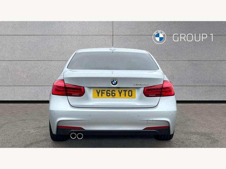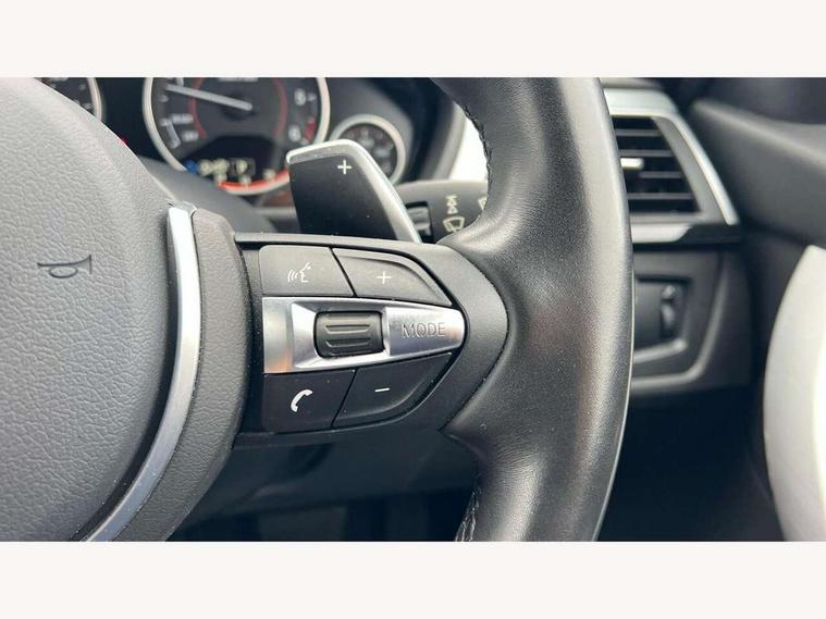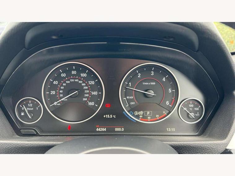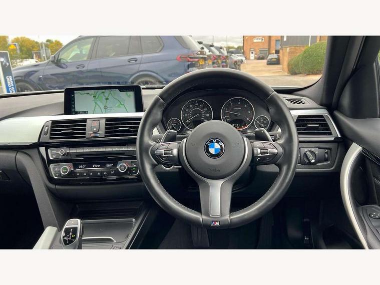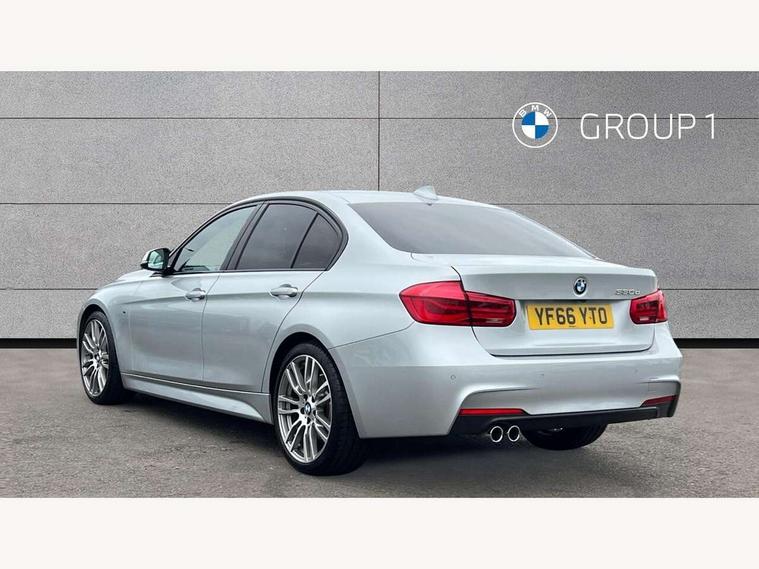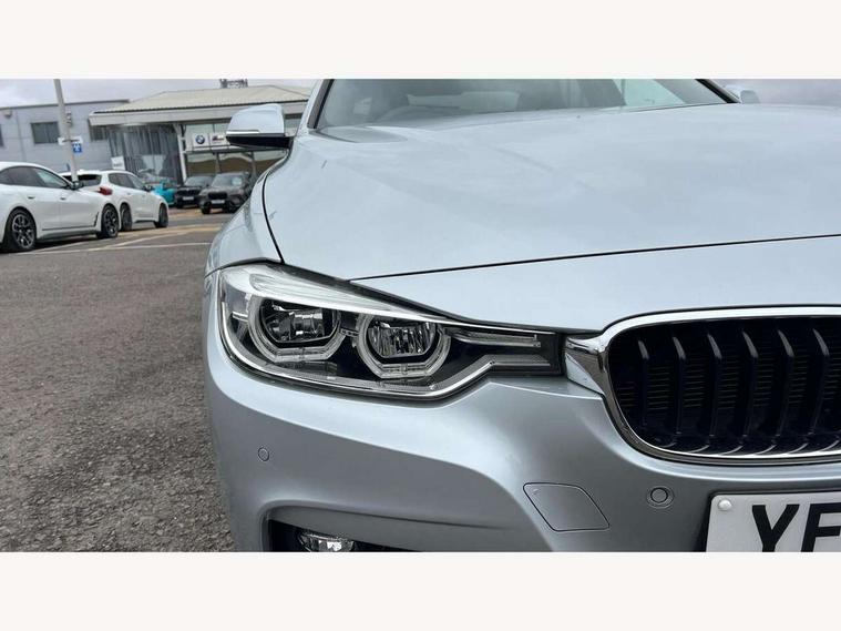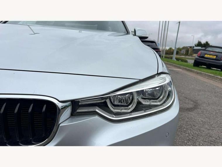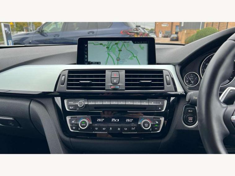 BMW Online services, BMW Teleservices, Brake force display, Brake pad wear indicator warning light, Check control system, Digital clock, Door/boot open warning light, Front/rear park distance control, Lights on warning, Oil temperature gauge, On board computer, On board diagnostics, Operation warning of all exterior lights, Outside temperature display, Push button starter, Run flat tyre indicator, Service interval indicator, Traffic message channel (TMC), Diesel particulate filter, Drive Performance Control, Electronic differential lock, Sports function on gearbox with steering wheel mounted gearshift paddles, Auxiliary point for auxiliary devices, BMW professional radio/CD/MP3, CD Changer preparation, DAB Digital radio, 'Guide me home' headlamps, 2 speed adjustable intermittent wipers with wash/wipe function, Auto dimming rear view mirror, Automatic headlight beam throw control, Body colour bumpers, Body colour door handles, Body colour electric adjustable door mirrors, Body colour roof mouldings, Chromed finished twin exhaust, Clear indicator lenses, Door sill finishers, Dynamic brake lights, Electric front and rear windows with one touch/convenient open/close function, Front ornamental grille with chrome plated kidney bars and chrome bezel, Green tinted heat insulating glass, Heated rear window with automatic switch off, Heated windscreen washer jets, High gloss shadow line, LED daytime running lights, LED fog lights, Rain sensor + automatic driving lights control, Shark fin roof aerial, 12V sockets in front centre console and passenger footwell, 2 x folding cupholders in instrument panel above glovebox, 3 rear seat head restraints, 4 foldable grab handles - rear with clothes hook, 4 lashing points to secure luggage, Automatic interior light soft on/soft off system, Driver and passenger sunvisors with vanity mirrors + slide cover, Dual zone automatic air conditioning, Folding front centre armrest + storage, Front and rear door armrests, Front and rear velour floor mats, Front door storage bins with bottle holder, Front sports seats with electric side bolster adjustment, Glovebox light, Height adjustable front headrests, Indirect front interior illumination - soft-light function, Individual anthracite headlining, Isofix system on outer rear seats, Leather gear knob, Leather gear selector lever handle, Leather handbrake grip, Lockable glovebox, Luggage compartment lighting, M sports leather steering wheel, Multi-function controls for steering wheel, Reach + rake adjustable steering column, Rear centre armrest with 2 cupholders, Rear storage compartment in multifunction centre console with sliding cover, Storage compartment in rear doors, Toolkit located in luggage compartment, Extended lighting package - 3 Series, 3 point inertia reel seatbelts + pre-tensioners on outer rear seats, ABS, Automatic Stability Control (ASC), BMW emergency call, Cornering brake control (CBC), Crash sensor, Driver and passenger airbags, DSC+, Dynamic brake control, Dynamic Traction Control - DTC, Front and rear head airbags, Front passenger airbag deactivation, Front seat side impact airbags, Front seatbelt pretensioners + load limiters, Hill start assist, Rear child proof door locks, Seatbelt warning, Three 3 point rear seatbelts, Twin horns, Tyre pressure monitor, Warning triangle and first aid kit, Automatic drive away locking facility, Central locking fuel filler cap, Centre lock switch, Electronic immobiliser, Key integrated remote control central locking, Remote control alarm, Low rolling resistance tyres, Run-flat tyres,