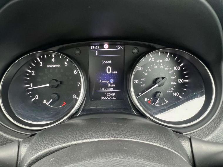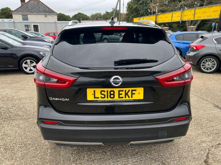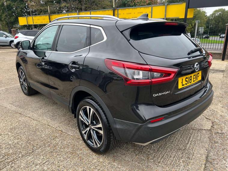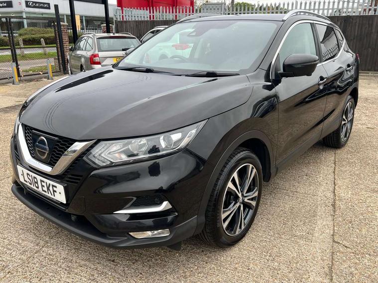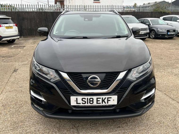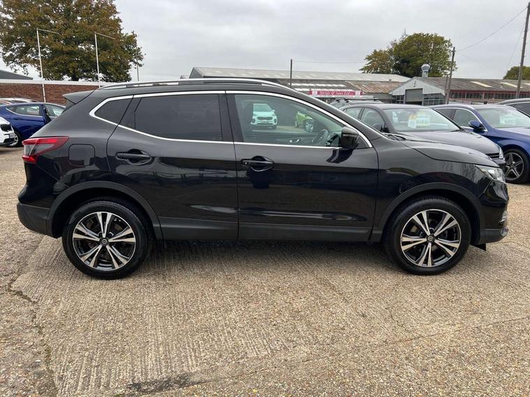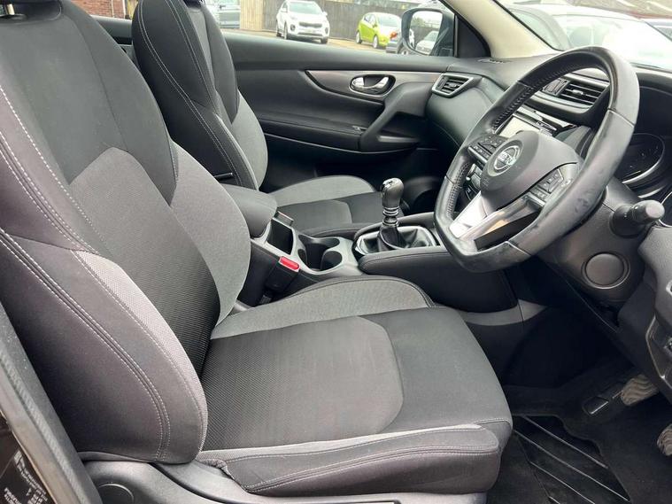 5" TFT driver information centre, Around View Monitor, Bluetooth phone integration system, Cruise control, Electric speed sensitive power steering, Front and rear parking sensors, Lane departure warning system, Nissan connect sat nav system, Outside temperature display, Push button starter, Rear view camera, Service interval indicator, Speed limiter, Traffic sign recognition, Trip computer, 'Shark fin' mobile antenna, 6 speakers, DAB Digital radio, Radio/CD, Smartphone apps, Steering wheel mounted audio controls, USB/aux input socket, Automatic headlamp activation, Body colour bumpers, Body colour door handles, Body colour door mirrors, Chrome window surround, Electric folding and heated door mirrors, High beam assist, Interior mirror with auto anti dazzle, LED indicators in door mirrors, Matt silver roof rails, One touch electric front/rear windows, Privacy glass, Rain sensor windscreen wipers, Rear roof spoiler, Rear wiper, 2 X front 12v power sockets, 60/40 split folding rear seat, Ambient interior lighting, Centre console with armrest, Chrome interior door handles, Cloth upholstery, Configurable luggage board system, Driver + front passenger lumbar support, Dual zone climate control, Front and rear door pockets with bottle holders, Front headrests, Front seat belt pre-tensioners with load limiters, Height adjustable driver's seat, Height adjustable passenger seat, Illuminated electric window switch, Isofix child seat preparation, Leather gearknob, Leather interior door handles, Leather knee rest, Leather steering wheel, Luggage compartment lighting, Parcel shelf, Pollen filter, Rake/reach adjustable steering wheel, Rear headrests, ABS, brake assist and EBD, Child locks on rear doors, Curtain airbags, Driver/front passenger airbag, Electronic parking brake, ESP + traction control, Forward emergency braking, Front passenger airbag deactivation, Height adjustable front seatbelts, Hill start assist, Seatbelt warning, Side airbags, Three 3 point rear seatbelts, Tyre pressure monitoring system, Alarm, Immobiliser, Intelligent Key, Remote central locking, Piano black interior trim, 18" Bi-colour alloy wheels, Tyre puncture repair kit,