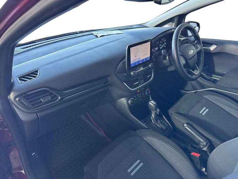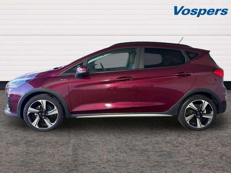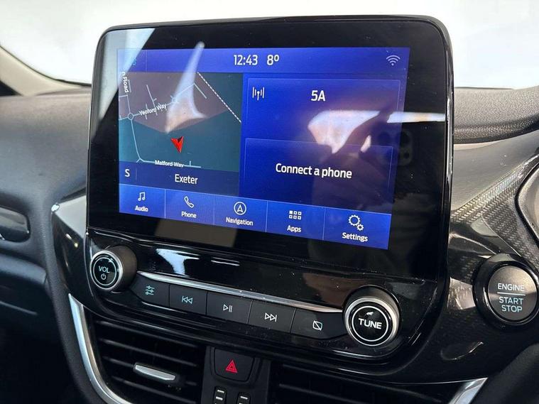 4.2" Colour TFT Ice blue illumination analogue cluster, Driver alert system, Electric power steering, Extra selectable drive modes ( Trail, Slippery), Ford easy fuel, Ford SYNC 3 Nav with DAB radio, 8" touch screen, voice control, emergency assist, Apple CarPlay/Android auto, 2x USB, 6 speaker, Ford pass connect, Rear parking distance sensors, Speed sign recognition, Trip computer, Rough road suspension with increased ride height adjust, 3rd brake light, Auto high beam, Body colour bumpers, Body coloured electrically operated with side indicators, Electric front windows/one touch facility, Electric rear windows, Quickclear heated windscreen, Rain sensing wipers and auto dimming rear view mirror, Rear privacy glass, Rear side wing doors, Rear wiper, Red air vent inserts, Rugged bodystyling kit with active front wing badges, 3 seat bench in 2nd row, Adjustable head restraints, Centre console with opening armrest, 2x cupholders, 12v and USB, Cloth upholstery with dark blue stitching, Drivers and Passenger lumbar support, Front floor mats in velour, Leather gear knob, Manual 2 way passenger seat adjust, Manual 4-way driver seat adjust, Manual air conditioning, Sensico wrapped steering wheel, Single front passenger seat, NCAP Pack - Fiesta, 3 point seatbelts on all rear seats, Electronic stability control with hill start assist, Tyre pressure monitoring system, Keyless start with 'Ford Power' starter button, MyKey system, Remote central locking, Thatcham alarm with power door dead locks, 17" 5 spoke alloys with rough metal machined finish,