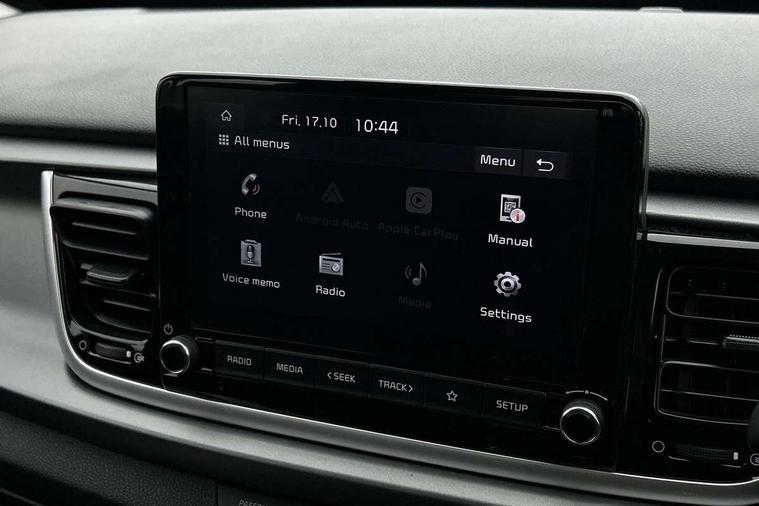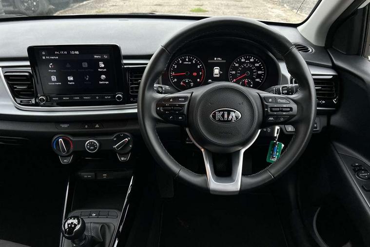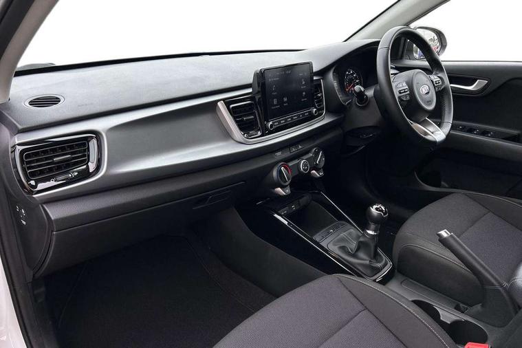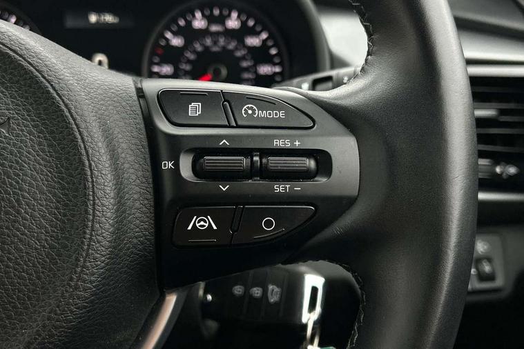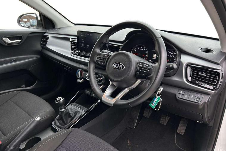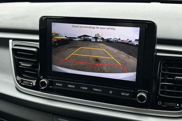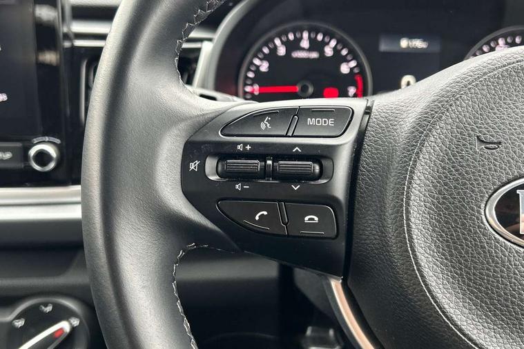 8" touch screen, Apple car play/Android Auto, Cruise control + speed limiter, Digital clock, Electric power steering, Emergency stop signalling system, Gear selection indicator, Manual speed limit assist (MLSA), Outside temperature display, Rear parking sensor, Reversing camera system with dynamic guidelines (Integrated into centre fascia screen), Tachometer, Trip computer, Voice control system, Windscreen washer level indicator, Intelligent Stop and Go, 6 speakers, Bluetooth connectivity including audio streaming, DAB Digital radio, Front USB port for media connection, Rear USB port, Steering wheel mounted audio controls, Aeroblade-type front wipers, Automatic lighting control, Bi-function projection headlights, Black grille with chrome surround, Body colour bumpers, Body colour door handles, Body coloured door mirrors, Cornering light, Electric adjustable/heated/folding door mirrors, Front electric windows with driver's auto up/down function, Headlamp levelling, Heated rear window, LED daytime running lights, LED indicators in door mirrors, Projection front fog lights, Projection headlights, Rear electric windows, Rear fog lamp, Rear wash/wipe, Speed variable front wipers, Tinted glass, Welcome home function, 3 passenger assist grips, 60/40 split/folding 2nd row of seats, Air conditioning, All round height adjustable headrests, Centre Console with Storage Box and Sliding Armrest, Dash illumination dimmer switch, Driver's seat height adjuster, Driver/passenger sunvisors and illuminated vanity mirrors, Front and rear door map pockets with bottle holder, Front passenger seatback pockets, Front USB charger port and 12V socket, ISOFIX top tethers and lower anchor points, Leather trimmed gearshift, Leather trimmed steering wheel, Load area light, Luggage area parcel shelf, Luggage hooks, Overhead console with sunglasses holder, Premium cloth upholstery, Silver interior door handles, Tilt/telescopic adjustable steering wheel, Advanced driving assistance pack - Rio, 3-point front seatbelts, 3x3 point rear seatbelts, ABS with Electronic Brakeforce Distribution (EBD) and Brake Assist System (BAS), Automatic unlocking of doors in case of impact, Cornering brake control (CBC) and Straight line stability (SLS), Electronic stability control (ESC) and vehicle stability management (VSM), Front seatbelt pretensioners + load limiters, Height adjustable front seatbelt anchors, Hill start assist control (HAC), Passenger airbag deactivate switch, Rear child proof door locks, Seatbelt warning, Traction control, Twin curtain airbags, Twin front airbags, Twin front side airbags, Tyre pressure monitoring system, Anti theft alarm, Deadlocking system, Engine immobiliser, Locking wheel nuts, Remote central door and tailgate locking with fold-away key, Speed sensitive auto door locking, Visible vehicle identification number, Silver fascia trim, 15" Alloy wheels, Tyre mobility system,