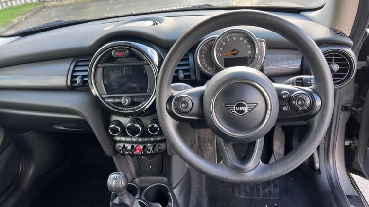 Automatic start/stop function with brake energy recuperation, Compatible mobile phone bluetooth with audio streaming, Electro-mechanical speed dependant steering assistance, Instrument cluster, Mini E-call, MINI TeleServices, On board computer, Service interval indicator, Double Vanos system, Fully variable valve control, High precision injection, 6.5" touchscreen with LED ring, FM tuner and DAB digital radio, Automatic headlight activation switch, Body colour fuel filler cap, Chrome border high gloss black slats radiator grille, Dynamic brake lights, Electric front+rear windows, Heated rear window, Heated windscreen washer jets, LED headlight with closed ring and daytime driving lights, Left exhaust tailpipe with chrome finisher, Metal door sill strips with MINI imprint, Model logo Cooper on right of tailgate, Rain sensor window wipers, Rear fog lights, Rear LED lights with union jack design, Rear window wiper, Side scuttle panel with integrated indicator, Sun/heat protection glass, White indicator lenses, 12V Accessory socket in centre console, 4 lashing eyes in luggage compartment, 60/40 split folding rear seat, Chrome interior highlights, Colour line - Carbon black, Cupholders, Front and rear head restraints, Front and rear isofix with front passenger airbag deactivation, Glove compartment, Height and length steering column adjustment, Interior lighting with 12 basic colours selectable via toggle switch in roof, Leather gearshift lever and handbrake gaiters, LED reading lights, vanity mirror lights, front foot well light and spotlight on front seats, Manual air conditioning, Mechanical seat adjustment, driver seat height adjust, forward/back and front seats backrest, Mini logo projection on floor from drivers exterior mirror, Multifunction steering wheel, Satellite grey headlining, Storage compartments in doors, Sunvisors with vanity mirrors, 3 point seatbelts on all four seats, 6 Airbags - front, side, head and seat belt tensioners, Anti-lock braking system (ABS), DSC - Dynamic Stability Control, Front and rear disc brakes, Hill start assist, Single tone fanfare horn, Tyre pressure monitoring system, Alarm system with tilt sensor, monitoring doors, bonnet interior and tailgate, Electronic vehicle immobiliser, Start/stop toggle with keyless go, Tool kit,
