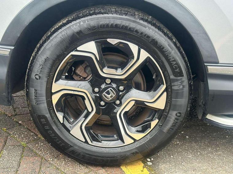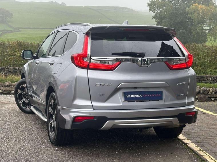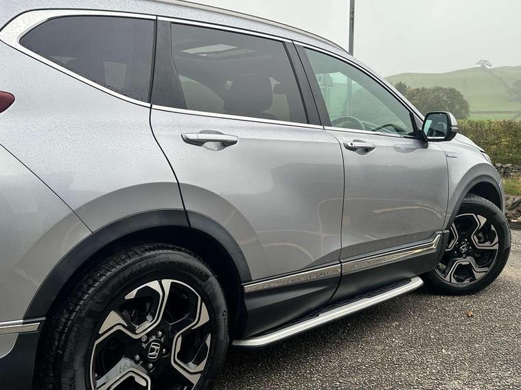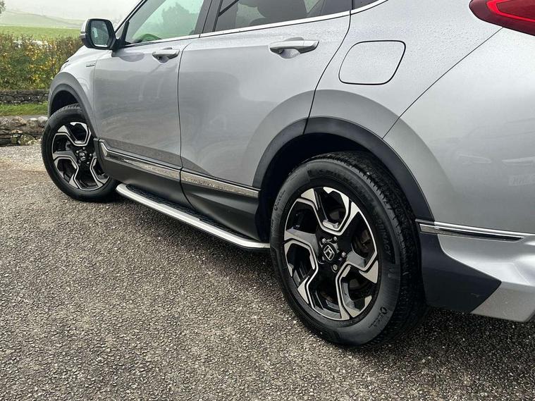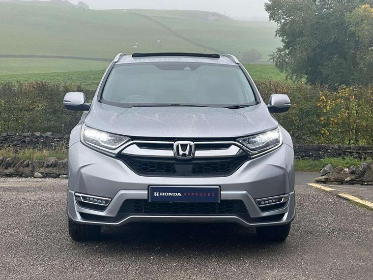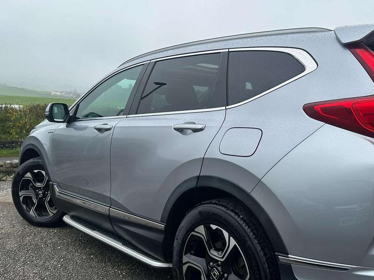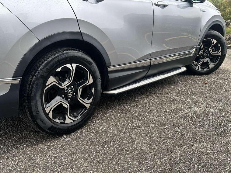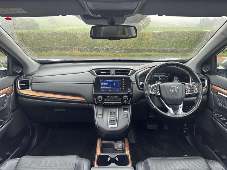 Adaptive cruise control, Agile handling assist, BLIS (Blind Spot Information System) with dual power heated blind spot mirrors, Bluetooth hands free telephone connection, Economy mode, Electric power steering, Emergency stop signalling system, Forward collision warning, Front and rear parking sensors, Hands free tailgate, Head up Display, Honda CONNECT with GARMIN Navigation + 7" touchscreen, DAB radio, Apple CarPlay, Android Auto, Aha app integration and internet browsing, Intelligent multi info display, Lane departure warning system, Lane keep assist system, Low speed following, Rear view camera, Road departure mitigation, Speed limiter, Traffic sign recognition, Vehicle stability assist, 2 USB sockets in rear, 2x USB sockets in front, 8 Speakers, DAB Digital radio, Steering wheel mounted controls, Subwoofer, Aspheric door mirrors, Auto dimming rear view mirror, Automatic headlights with dusk sensor, Body colour bumpers, Body colour door handles, Cornering light, Door mirrors tilt when reversing, Electric front windows/one touch facility, Electric rear windows + one touch facility, Electrically adjustable and heated door mirrors, Electrically retractable door mirrors, Front windscreen de-icer, High beam assist, LED daytime running lights, LED front fog lights, LED Headlights, LED rear lights, Panoramic opening glass sunroof, Rain sensor, Rear privacy glass, Rear wiper, Roof rails, Shark fin roof aerial, Welcome home function, 60/40 split folding rear seat, 8 way electrically adjustable drivers seat + mirror memory, Accessory sockets, Ambient interior lighting, Ambient light in roof, AWD emblem rear, Cargo hooks, Courtesy lights, Driver's electric adjustable lumbar support, Driver/passenger front seatback pockets, Driver/passenger sunvisors with illuminated vanity mirrors, Dual zone automatic climate control, Electric lumbar adjustment on passenger's seat, Footwell ambient lighting, Front centre armrest, Front map lights, Front passenger seat height adjust, Heated front seats, Heated rear seats, Heated steering wheel, Hybrid emblem, Illuminated glovebox, Instrument panel with garnish wood film, Isofix child seat preparation, Leather steering wheel, Leather upholstery, Paddle shift controls, Rear air vents, Rear centre armrest, Rear headrests, Rear reading lights, Silver interior door handles, Sunglasses holder with mirror, Tilt/telescopic adjustable steering wheel, Tonneau cover, Trunk light, 5 x 3 point seatbelts, ABS/EBD, Anti-whiplash front headrests, Brake assist function, Collision mitigation braking system, Deflation detection system, Driver airbag, Electronic parking brake with auto hold, Front and rear curtain airbags, Front side airbags, Hill start assist, Passenger airbag deactivate switch, Honda super locks, Immobiliser, Remote keyless entry, Security alarm, Ultrasonic sensor and tilt sensor, Tyre repair kit,
