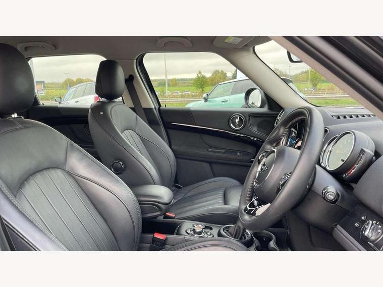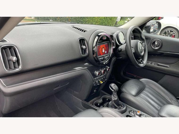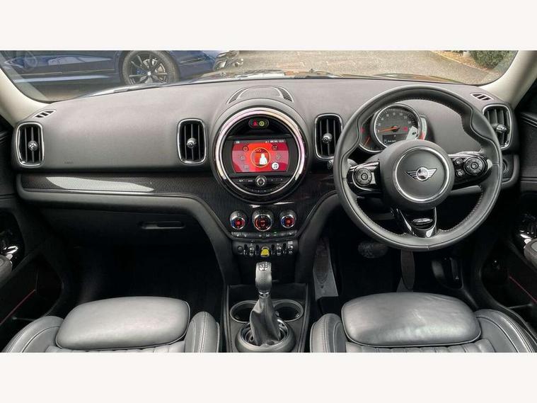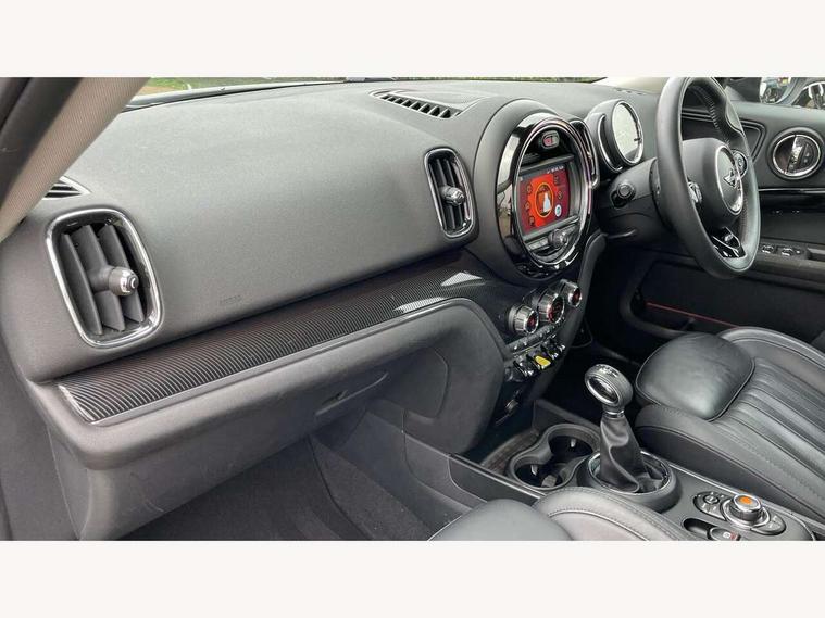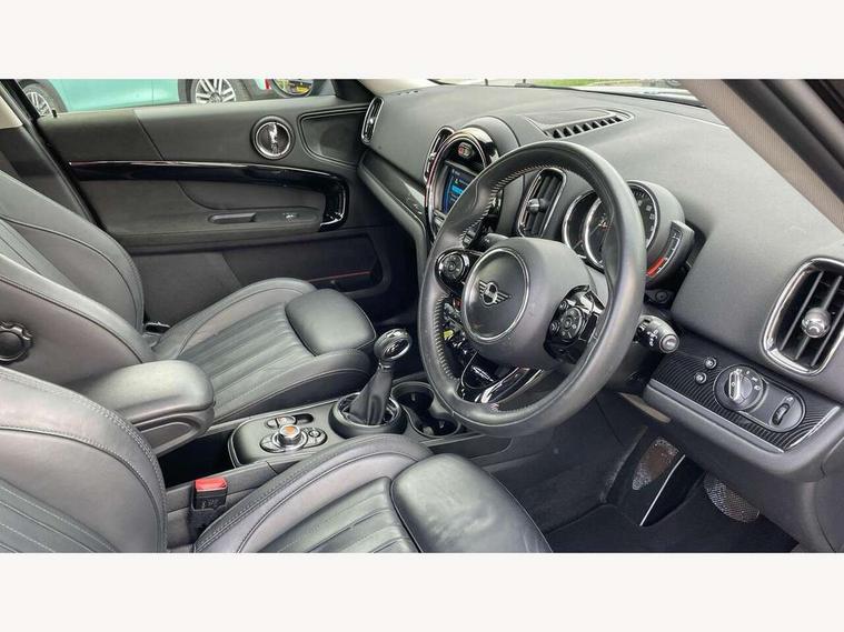 Active Guard incl speed limiting and lane departure functions with auto steering, and front collision warning with brake intervention, Automatic start/stop function with brake energy recuperation, eDrive button, Electro-mechanical speed dependant steering assistance, Instrument cluster, Mini E-call, MINI TeleServices, On board computer, Rear parking distance control, Automatic transmission, Charging flap on front left lower A-panel, Double Vanos system, Fully variable valve control, High precision injection, Performance Control, FM tuner and DAB digital radio, Bonnet scoop, Chrome border honeycomb structure radiator grille with S badge, Chrome fuel filler cap, Chrome line exterior, Day time driving lights, Dynamic brake lights, Electric windows, Heated rear window, Heated windscreen washer jets, Metal door sill strips with Cooper S imprint, Model logo, Model logo on Tailgate, Rain sensor with auto headlights, Rear fog lights, Rear window wiper, Side scuttle panel with integrated indicator, Split rear doors, Sun/heat protection glass, Twin exhaust tailpipe, White indicator lenses, 12V Accessory socket in centre console, 360L luggage compartment capacity, 4 lashing eyes in luggage compartment, 40:20:40 split folding rear seats, Charging cable, Chrome interior highlights, Cupholders, English handbook, Front headrests, Glove compartment, Height and length steering column adjustment, Isofix rear child seat preparation, Leather gearshift lever and handbrake gaiters, LED reading lights, vanity mirror lights, front foot well light and spotlight on front seats, Manual air conditioning, Mechanical seat adjustment, driver seat height adjust, forward/back and front seats backrest, MINI Yours fine walk nappa leather steering wheel with contrast stitching in silver and MINI Yours badge, Multifunction steering wheel, Passenger seat height adjuster, Rear headrests, Storage compartments in doors, Sunvisors with vanity mirrors, Excitement pack - Countryman, Navigation pack - Countryman, 2 tone horn, 3 point seatbelts on all seats, 6 Airbags - front, side, head and seat belt tensioners, Anti-lock braking system (ABS), DSC - Dynamic Stability Control, Electronic handbrake, Front and rear disc brakes, Hill start assist, Tyre pressure monitoring system, Alarm system with tilt sensor, monitoring doors, bonnet interior and tailgate, Auto drive away locking, Deadlocking function, Electronic vehicle immobiliser, Locking wheel bolts, Start/stop toggle with keyless go, Chrome line interior, Tool kit,