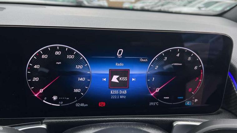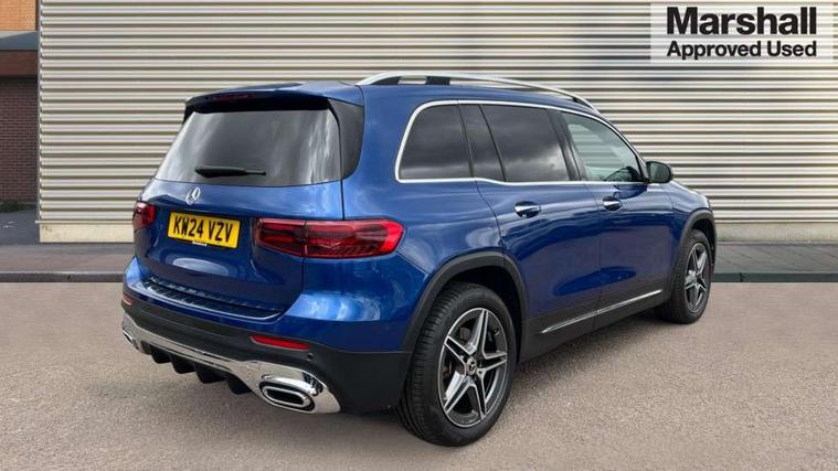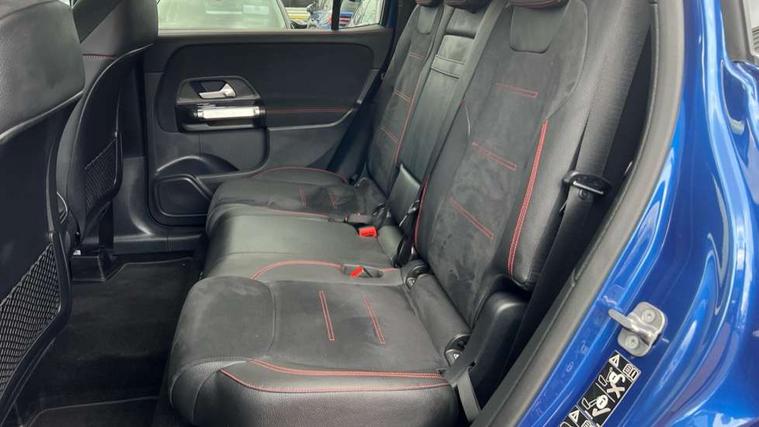 10.25 inch touchscreen central media display, 10.25" Digital instrument cluster display screen, 12 ultrasonic sensors in front and rear bumpers, 180 degree reversing camera with parking guidelines, Assisted parking: reversing backwards into perpendicular and parallel parking spaces, Attention assist - Monitors steering behaviour and long journey fatigue, Bluetooth connection, Brake pad wear indicator warning light, Car wash mode, Convenience opening and closing, Direct steering, DYNAMIC SELECT with a choice of driving modes (ECO, Comfort, Sport and Individual), ECO start/stop function, Engine start/stop button, Fluid level warning indicator for fuel, oil, coolant and washer fluid, Hard disk navigation, Hey Mercedes Voice activation, Lamp failure indicator, Lane keep assist, MBUX navigation premium, Mercedes me connect including emergency call system, accident recovery, breakdown and maintenance management, Mercedes me remote services, Outside temperature gauge, Owners manual and service booklet in English, Pre-installation of private car share, Preinstallation for parking damage notification, Radio aerial integrated into front and rear windshields, Remote boot closing, Service indicator (ASSYST), Smartphone integration with Apple CarPlay and Android auto, Speed limit assist, Tailgate, Trip computer in multifunction display with current consumption indicator, Ultrasound sensors - positioned in the handle of the tailgate, Wireless charging, Comfort suspension with ride height lowering, Rear axle multi-link, 1 USB-C port in the oddments compartment (Charge + Data transfer), 2 USB-C ports for the rear on the centre armrest (Charge only), 2 USB-C ports under the front centre armrest (Charge + Data transfer), DAB digital radio tuner, MBUX multimedia system, Mercedes Benz sound system (100 W) with 6 speakers, Pre installation for Mercedes Benz Link, Adaptive brake lights, Adaptive high beam assist, AMG front apron with front splitter in the colour of the vehicle with chrome trim element, AMG rear apron with visible tailpipe trim and chrome trim element, AMG specific/dual flow exhaust pipes in chrome (non-functional), Auto dimming rear view mirror, Beltline trim and window line trim strip in high gloss aluminium, Black grained side sill trim with chrome inlay, Body coloured door handles, Electric adjustable and heated door mirrors with integrated LED side indicators, Electric folding door mirrors, Front and rear electric windows, Headlamp assist automatic headlamp activation, Heat insulating dark-tinted glass starting from B-pillar, Heated glass rear windscreen + timer control, High level LED third brake light, Interior mirror with black reading lamps and frameless, LED high performance headlamps with integrated LED daytime running lights, LED tail lamp, Polished aluminium roof rails, Radiator grille as a diamond grille with chrome pins and central Mercedes star, Rain sensor windscreen wipers, Rear fog lamp, Rear side wing doors, Rear wiper, Single louvre in matt grey with chrome inserts and black highlights, Two visible tailpipe trim elements exhaust, Ultrasonic sensors - positioned in the front and rear bumpers, Wheel arch liners in the colour of the vehicle, 12V socket in the oddments compartment, 3 seat bench in 2nd row, 3 twin spoke flattened multifunction steering wheel in nappa leather - horizontal twin spoke in high gloss black, vertical twin spoke in silver chrome, 4 way adjustable lumbar support, 40:20:40 split folding rear seats, Air vents with silver chrome surrounds, AMG floor mats, AMG sports pedals with brushed stainless steel surfaces and black rubber studs, Automatic child seat recognition sensor, Black roof lining, Door handles with chrome inserts, Fluorescent jacket, Front and rear headrests, Front centre armrest with stowage, Galvanised steering wheel gearshift paddles in silver chrome, Handle recess lighting, Heated front seats, Height adjustable head restraints, Height/reach adjustable steering column, Interior lighting - 64 colour Ambient lighting, Luggage net on driver/front passenger seat backrest, Single front passenger seat, Sports seats, Stowage compartment with retractable cover, Sun visors with illuminated vanity mirrors, THERMATIC automatic climate control, Third row of seats for two people on rear seat, Twin front cup holders, Two outer rear seat isofix and top tether child seat fixing points, Easy pack tailgate, Interior lighting with light and sight pack - GLB, Seat comfort package - GLB, 3 rear 3 point seatbelts, Active bonnet pedestrain safety measure which detects an impact and raises bonnet by 65mm, Active brake assist includes forward collision warning system with autonomous braking, Adaptive brake assist with hold function and hill start assist, Airbags - kneebag for driver, Anti-lock braking system (ABS) with brake assist, Black seatbelts, Bonnet with power domes, Childproof locks manually operated for rear doors and electrically operated for rear power windows, Crash responsive emergency lighting, Curve dynamic assist, Driver and front passenger head and sidebags, Driver and front passenger windowbags, Dual stage driver and front passenger airbags, Electric parking brake, Electronic stability programme with acceleration skid control, Front and rear seatbelt reminder, Front brake callipers with Mercedes Benz lettering, Front passenger seat occupancy sensor, Perforated front brake discs, Tyre pressure monitoring system, Warning triangle and first aid kit, Guard 360 degree vehicle protection - Anti theft alarm system, tow away protection with visual, acoustic warning and alarm, Interior monitoring system, Keyless Go Access and drive authorisation system, KEYLESS-GO starting function, Remote central locking and crash sensor with emergency opening function, Thatcham category 1 alarm system with immobiliser and interior protection, Vehicle key with KEYLESS GO functionality, Carbon structure trim, 19" AMG 5 twin spoke light alloy wheels aerodynamically optimise