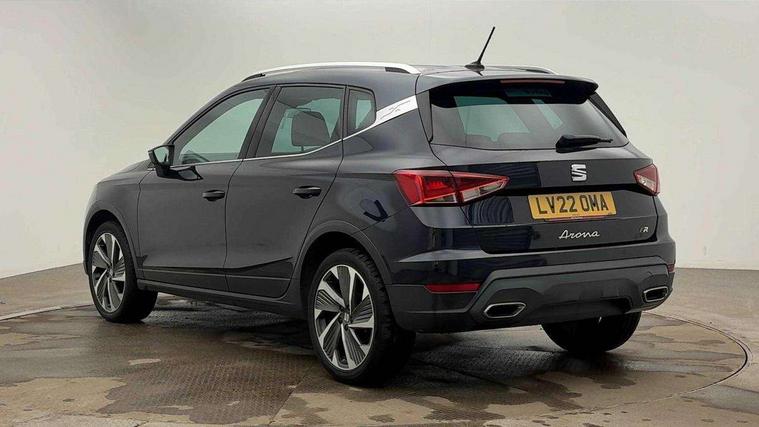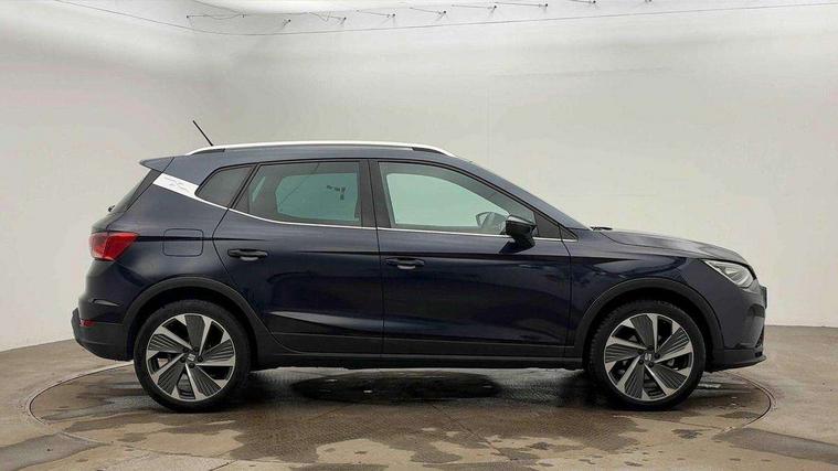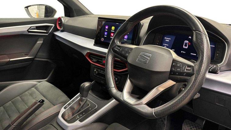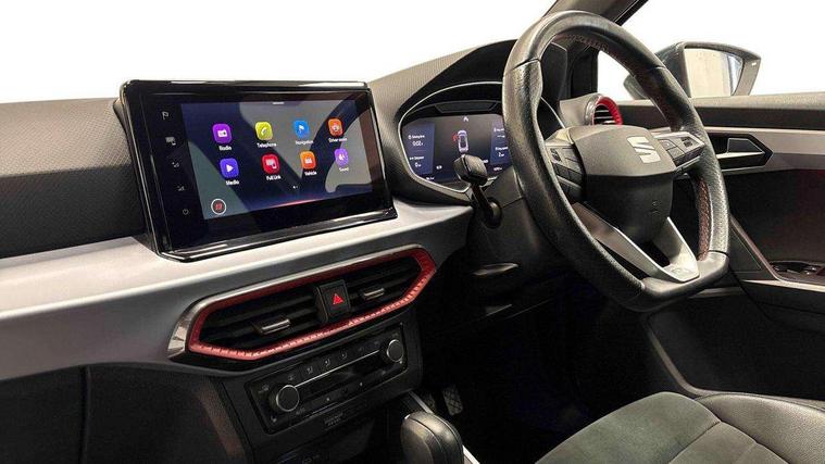 Digital cockpit, E-call, Electric speed sensitive power steering, Full Link Smartphone Integration with Mirror Link, Apple Car Play, Google Android Auto with USB Type C cable for Apple and Android compatibility, Lane keeping system, Rear parking sensor, Seat connect with safety, service, remote and online, SEAT Drive profile - Four different models normal-sport-eco-individual, steering response, throttle response and gear shifts mode, Bluetooth interface for hands free and audio streaming, DAB digital radio and AM/FM radio, Steering wheel mounted audio controls, Anti theft roof antenna, Auto dimming interior rear view mirror, Automatic activation of hazard warning lights, Body coloured bumpers, Body coloured door handle inserts, Chrome roof rails and window surrounds, Chrome window trim, Dark tinted rear windows, Electric front/rear windows, Electrically adjustable, heated and folding door mirrors, FULL LED automatic headlights with dynamic headlight range control, coming and leaving home, LED daytime running lights, LED rear tail lights and licence plate lights, Protective side mouldings, Rain sensing wipers, Rear side wing doors, Rear spoiler, Rear window wash/wipe, Roof colour door mirrors, Third brake light, Twin exhaust pipe styling hidden exhaust pipe, Visible VIN plate, Windshield wiper with intermittent control and potentiometer, 2 cupholders, 3 seat bench in 2nd row, 60/40 split folding rear seat, Aircare filter, Black interior roof, Double boot floor, Driver sunvisor with covered mirror + card holder, Dual zone climate control, Front courtesy light with 2x front and 2x rear reading lights, Front seat back storage pockets, Front sport seats, Heated front seats, Height adjustable front seats, Height/reach adjustable steering column, Illuminated boot, Interior ambient lighting, Interior light in footwell, central console and door panel, ISOFIX points in outer rear seats with top tether anchorage points, Microsuede cloth upholstery, Passenger sunvisor with vanity mirror, Perforated flat bottomed leather steering wheel/gear knob/handbrake with red stitching and FR logo, Single front passenger seat, Steering wheel mounted gearshift paddles, Two front and three rear height adjustable headrests, Connectivity pack plus - Arona, Interior chrome pack - Arona, 3 point seatbelts on all rear seats, ABS, Active front headrests, Child locks on rear doors, Driver and front passenger airbags with front passenger airbag de activation, front side and curtain airbags, Electronic stability control, Emergency Brake Assist (EBA) and front assist, Front and rear seatbelt reminder, Hill hold control, Multi-Collision braking, Tiredness recognition system, Traction control, Tyre pressure monitoring system, Alarm with back-up horn, Electronic engine immobiliser, Locking wheel bolts, Remote central locking + deadlocks, Tow away protection, Titan black dashboard, 18" Performance Cosmo grey matt alloy wheels,