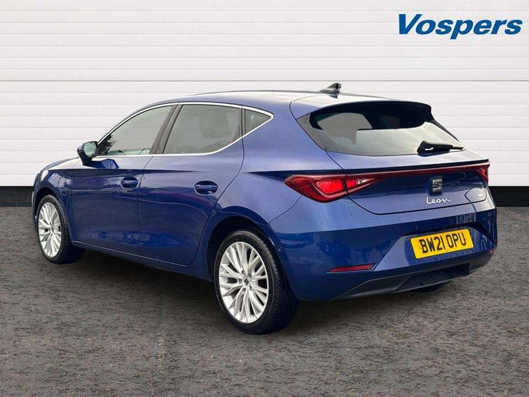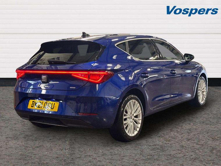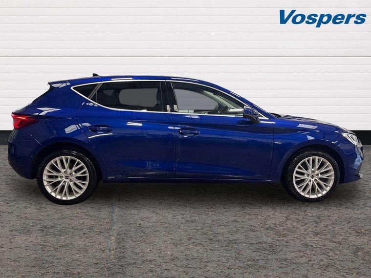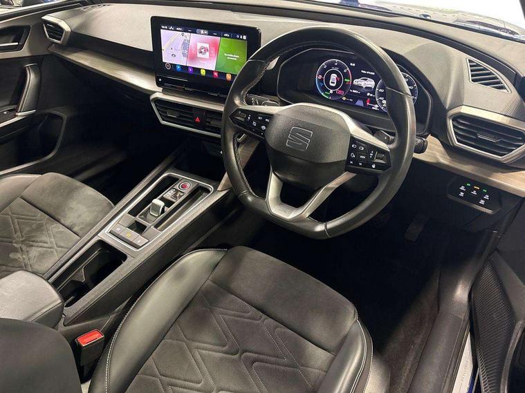 Digital cockpit, Four x USB Type C ports, Front assist with forward collision warning braking reaction to vehicles, pedestrians and cyclists, Full link smartphone integration with Mirror Link, wireless Apple CarPlay and wired Google Android Auto, Lane assist, Lockable tailgate, Park assist (inc front/rear parking sensors), Power assisted speed sensitive electro-mechanical steering, Rear view camera, RPM, trip computer, outside temp gauge, instrument light brightness, low fuel warning light, lights on reminder, gearshift indicator, Service interval indicator, Start/stop system with regenerative braking, 10 amp mode 2 charging cable, 16 amp mode 3 charging cable, XDS electronic differential lock and dynamic traction support, 7 speakers, Auxiliary input socket, Auto dimming rear view mirror, Body colour door handles, Body coloured bumpers, Dark tinted rear windows, Door mirror LED indicator lights, Electric adjustable/heated/folding door mirrors with memory, Electric front/rear windows, Illuminated front door sill, LED front fog lamps with cornering function, LED headlights and tail lights with dynamic turn signals, welcome light silhouette from exterior mirrors and dynamic headlight range control, LED rear fog lamp, Rain sensing wipers, Rear wash/wipe, Separate daytime running light with automatic headlight control and coming home feature, 12v power point in centre console, 60/40 split rear bench seat with armrest, Ambient lighting with glovebox, footwell and single monocolour, Dust/pollen filter, Electric driver lumbar support + passenger manual lumbar support, Folding boot cover, Front and rear height adjustable headrests, Front and rear reading lights X 4, Front centre armrest, Front seatback storage pockets, Grey headlining, Heated front seats, Height/reach adjust steering wheel, ISOFIX points in outer rear seats with top tether anchorage points, Luggage tie-down hooks, Microsuede cloth upholstery, Power driver seat with memory and manual height adjustable passenger seat, Sunvisors with covered illuminated mirror, Three zone climate control, Media system plus with navigation - Leon, 3 point seatbelts on all rear seats, ABS, Brake control system - ESC and brake booster, Child proof door locks, Driver and front passenger airbags with front passenger airbag de-activation, front side and curtain airbags, Electronic parking brake, Extended safety system - seat belt tensioner, window closure and hazard lights, Hill hold control, Rear disc brakes, Seat belt reminder for front and rear seats, Tiredness recognition system, driver alert system, Tyre pressure monitoring system, Anti theft alarm system with interior monitoring in cab, backup horn and towing protection, KESSY Advanced - Keyless start, keyless entry with SAFELOCK, Locking wheel bolts, Wireless phone charging, Chrome interior detailing, 17" Dynamic alloy wheels with 91W tyres, Emergency tyre repair kit, Tool kit,
