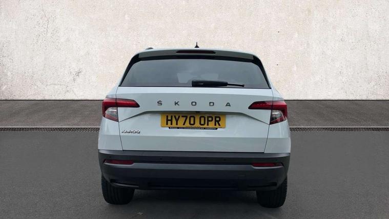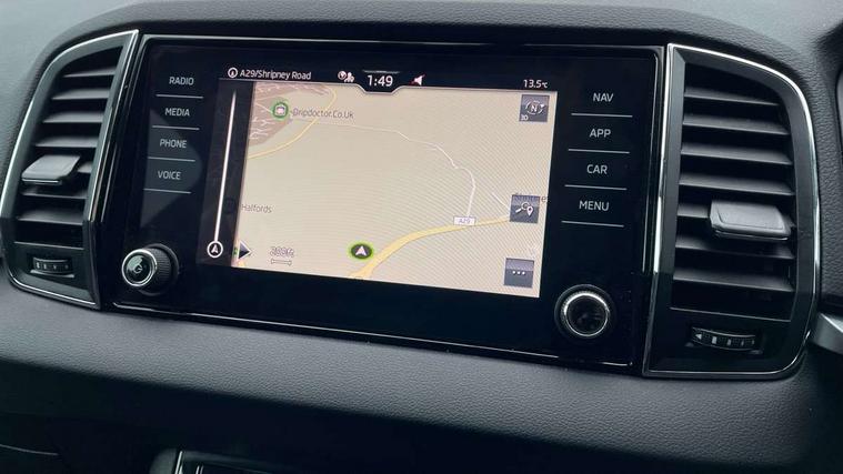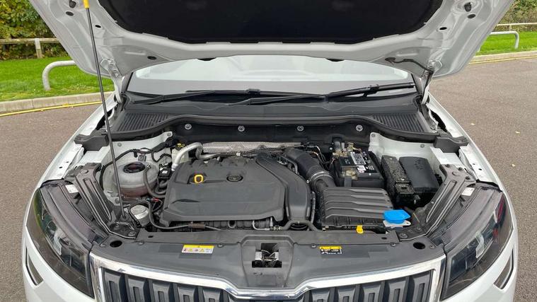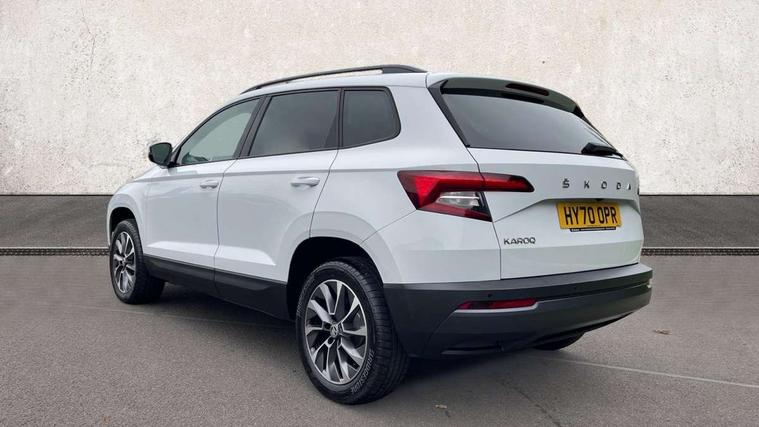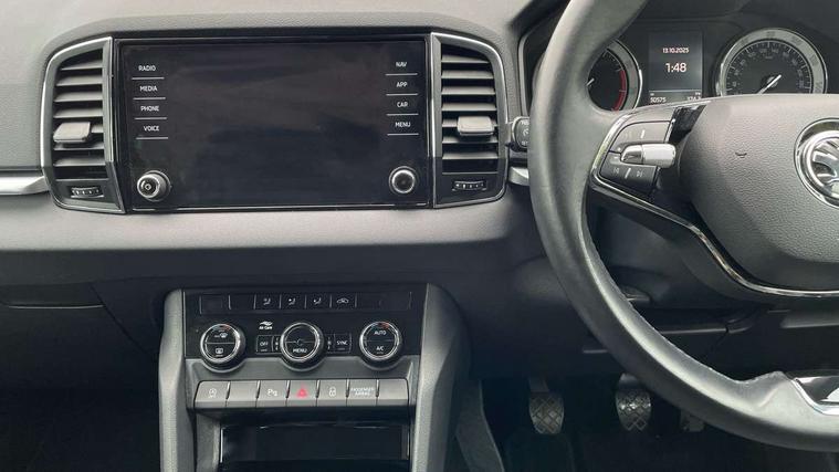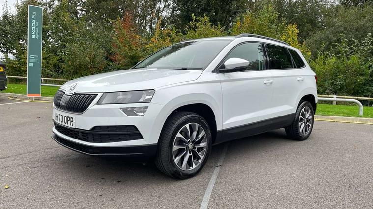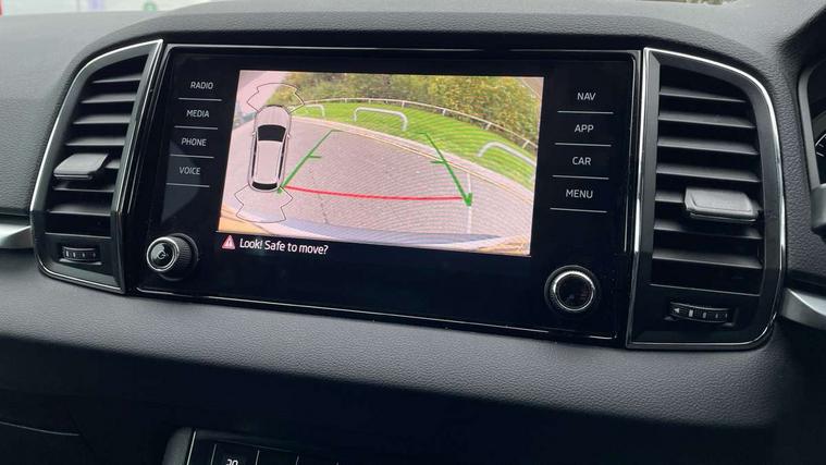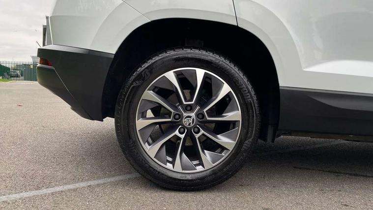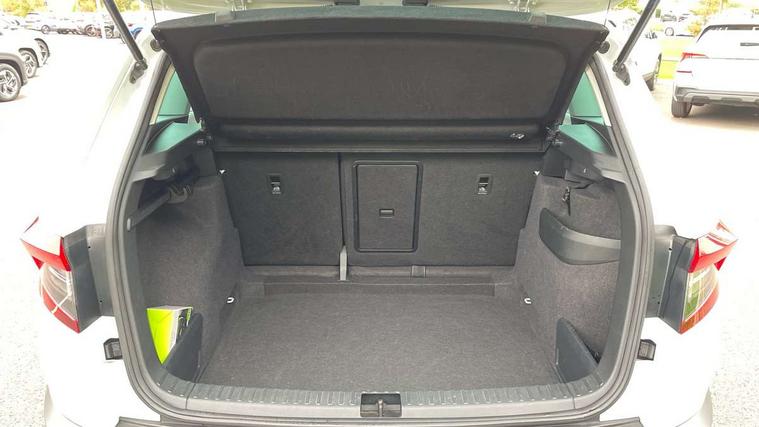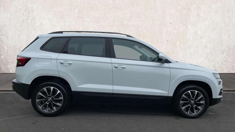 Amundsen satellite navigation with 8" touchscreen display with maps Europe, WLAN and web radio, Care connect, Driver alert system, Driver fatigue sensor, Driver profile selection, Electro-mechanical PAS, Multifunction colour trip computer, Outside temperature gauge, Rear view camera, Service interval indicator, SmartLink + wireless for Apple and wired for Android, Start/stop system with regenerative braking, USB C Port x 2 in front centre console, DAB radio with Bluetooth, SD card slot, USB connection, Acoustic glass, Aero front windscreen wipers with intermittent function, Automatic headlight control system, Black electric window control buttons, Body colour door mirrors and handles, Body coloured bumpers, Doors steps in front with Karoq badging, Electric front and rear windows with child proof lock, Electrically adjustable heated folding and auto dimming door mirrors, Heated rear windscreen, LED rear lights with high functionality, Light assistant (coming/leaving home/tunnel light), Privacy glass, Safety reflectors on front doors, Third brake light, 1.5 litre bottle holders in driver and front passenger door panels, 12V socket in boot, 12v socket in front centre armrest with storage compartment and rear air vents, 2 Folding hooks and nets in boot, 2 Front readings lights for driver and passenger, 3 rear height adjustable headrests, 4 foldable roof handles with rear coat hooks, 4 lashing points on luggage floor, Backrest release, Cargo elements in boot, Chrome inner door handles, Door sill scuff plates, Driver and passenger seats height adjust, Fabric upholstery, Folding tables on the front seat backrests, Front head restraints, Front seat and rear pockets, Height adjustable front three point seats belts with tensioners, Height/reach adjust steering wheel, Ice scraper, Illuminated and cooled glovebox, Illuminated luggage compartment, Isofix child seat preparation outer rear, Manual lumbar support for front seats, Net programme in boot, Pen holder, Pollen filter, Rear boot cover, Rear reading lights, Rear seats fixed folding and divided 60:40, Safety vest holder, Storage box in upper central dashboard closed, Sunvisors with illuminated vanity mirrors, Textile floor mats, Umbrella under passenger seat, LED Interior lighting pack with Skoda welcome logo - Karoq, Airbags - Front side, head, knee and curtain, Automatic door unlocking in case of crash, Automatic fuel cut off in case of crash, Driver airbag, Electronic parking brake with auto hold function, Emergency rear braking signal, ESC including ABS, MSR, ASR, EDS, HBA, DSR, RBS, MKB and traction control, Front assist radar scanning of the space in front of the car with automatic braking, Hill hold control, Passenger airbag with switch-off function, Pedestrian monitor, Seatbelt reminder signalisation and pretensioner for all seats, Three point seatbelts rear, Two tone horn, Tyre pressure display, Tyre pressure monitor, Alarm with interior monitoring, back up horn and tilt sensor with safe function, Electronic engine immobiliser, Remote central locking with 2 remote folding keys, Chrome framed air vents, 17" Aero alloy wheels with anti theft wheel bolts, Storage on wheel cover,