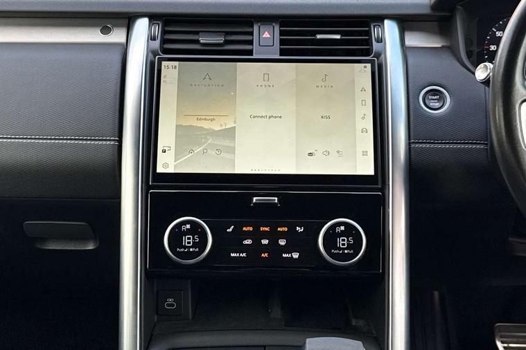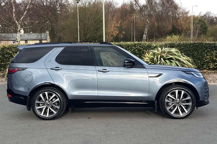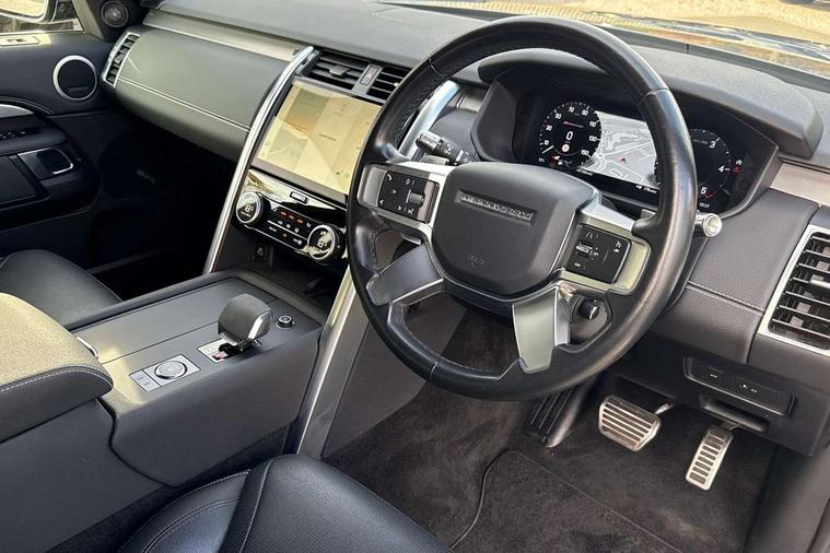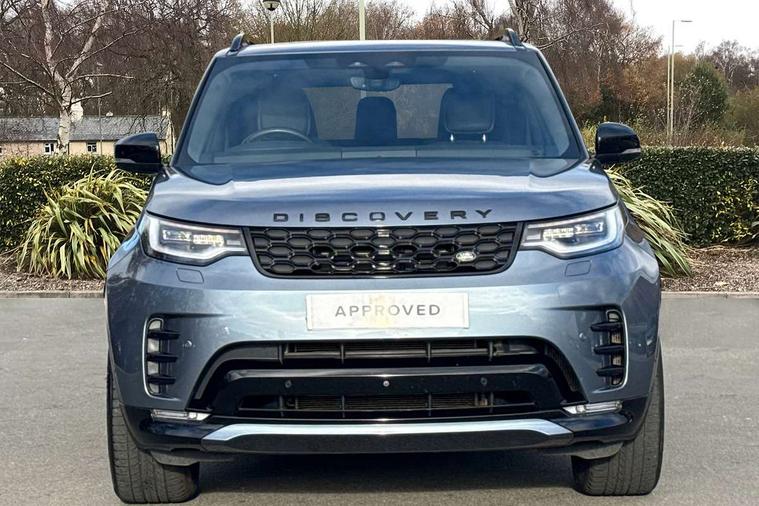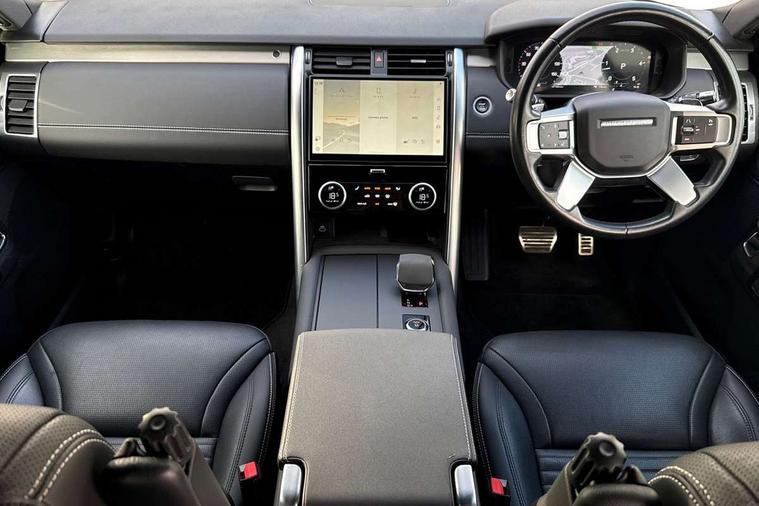 11.4" touchscreen, 3D surround camera, Android Auto, Apple car play, Blind spot assist, Clear exit monitor, Click and go integrated base unit, Driver condition monitor, Electric power assisted steering (EPAS), Front and rear parking aid, Interactive driver display, Lane keep assist, Power inner tailgate, Push button start, Rear traffic monitor, Remote, Remote boot release, Service interval indicator, Speed proportional steering, Sportshift selector, Stop/start system, Traffic sign recognition with adaptive speed limiter, Trip computer, Wade Sensing, Adaptive dynamics, Dynamic stability control, Electronic air suspension, Front axle open differential, Digital Audio Broadcast radio-DAB, Dynamic volume control, Pivi pro connected, USB/aux input socket, Acoustic laminated windscreen, Animated directional indicators, Auto dimming interior rear view mirror, Automatic headlight levelling, Automatic headlights, Body colour bumpers, Body colour door handles, Centre high mounted stop light, Electric windows with one touch open/close and anti-trap, Front fog lights, Headlight power wash, Heated rear window, Heated windscreen, LED desaturated signature tail lights, Metal treadplates with R-Dynamic branding, Narvik black Discovery script, Power fold, auto-dimming, heated door mirrors with memory and approach lights, Puddle lights, Rain sensing windscreen wipers, Rear fog lights, Rear wash/wipe, Trailer stability assist, Variable intermittent wiper, 12V power sockets, 12V USB charging socket in loadspace, Central hinged twin lidded storage, Ebony morzine headlining, Electric adjustable steering column, First and second row door bins, Footwell lights, Front and rear 12V with front USB, Front passenger seat isofix location point, In-facia storage, Loadspace cover, Loadspace Hook, Loadspace light, Lockable glovebox, Lower centre console storage, Luggage tie downs in loadspace, Multi function steering wheel, Overhead lighting console, Premium carpet mats, Rear ISOFIX, Shopping bag hook, Storage glovebox, Sunvisors with illuminated vanity mirrors, Third row storage, Twin front cupholders with cover, USB with 12V socket in centre console, Online pack with data plan - Discovery, R-Dynamic black exterior pack - Discovery, 3x3 point rear seatbelts, Anti-lock braking system (ABS), Brake pre-fill technology, Cornering brake control, Curtain airbags, Customer configurable autolock, Driver and passenger airbags, EBD - Electronic brakeforce distribution, Electronic traction control, Emergency brake assist, Emergency braking, ESP, Front side airbags, Gradient acceleration control, Hill descent control, Hill launch assist, Power operated child locks, Rear airbags, Roll stability control, Seat belt reminder, Torque vectoring brake, Tyre pressure monitoring system, Immobiliser, Intrusion sensor, Keyless entry, Locking wheel nuts, Remote central locking, All terrain tyres,