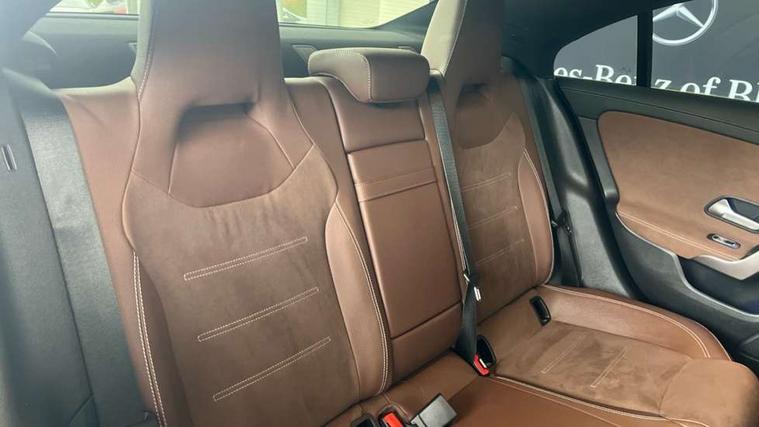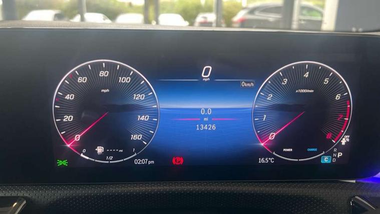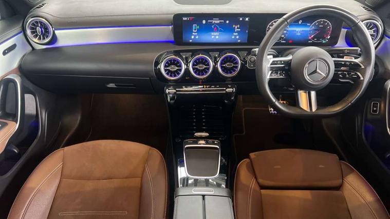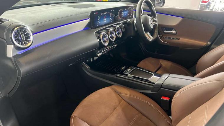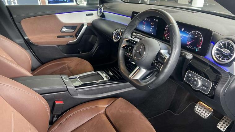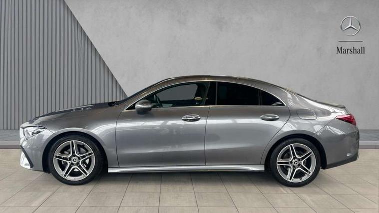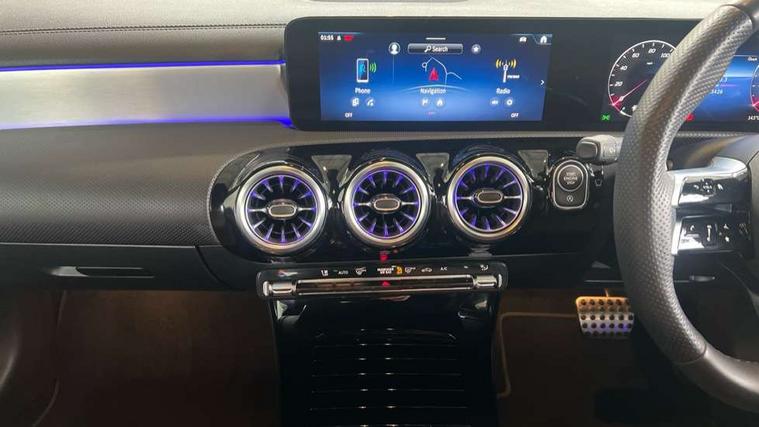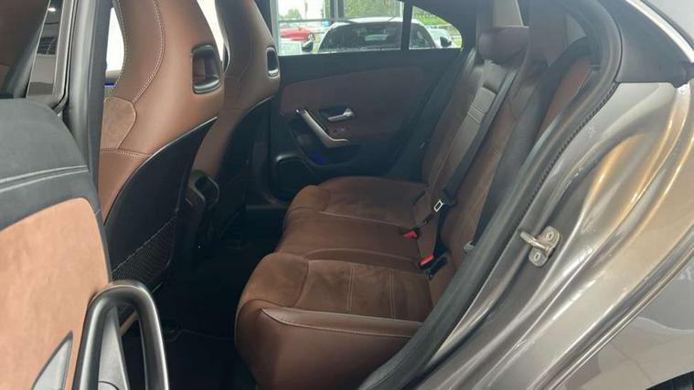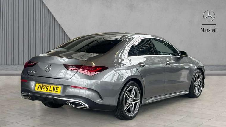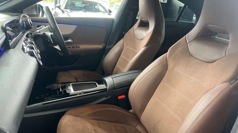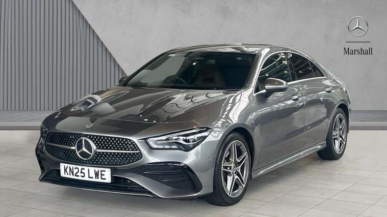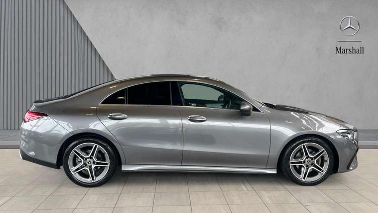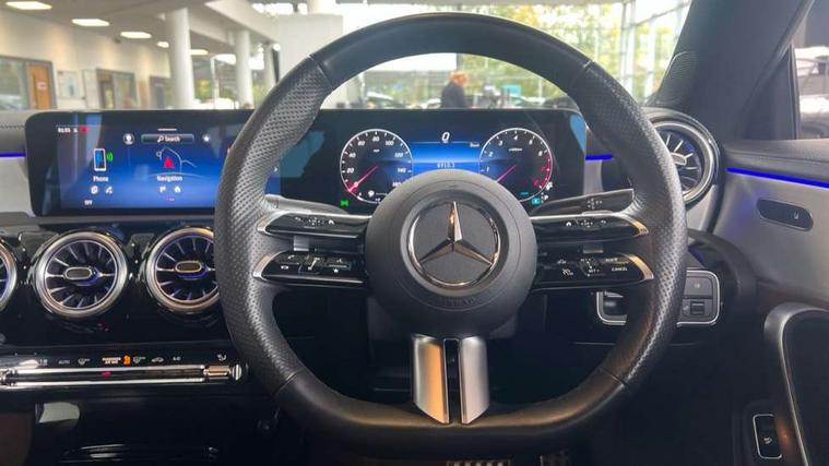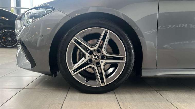 10.25 inch Instrument display with digital cockpit, 10.25 inch touchscreen central media display, Active lane keeping assist, Attention assist - Monitors steering behaviour and long journey fatigue, Blind spot assist, Bluetooth connection, Car wash mode, Cruise control with limiter, Direct steer system, DYNAMIC SELECT with a choice of driving modes (ECO, Comfort, Sport and Individual), ECO start/stop function, Fingerprint sensor, Fluid level warning indicator for fuel, oil, coolant and washer fluid, Hard-disk navigation, Hey Mercedes Voice activation, Lamp failure indicator, Mercedes me connect including emergency call system, accident recovery, breakdown and maintenance management, Mercedes me remote services, Outside temperature gauge, Owners manual in English, Pre-installation of private car share, Radio aerial integrated into front and rear windshields, Service indicator (ASSYST), Smartphone integration with Apple CarPlay and Android auto, Speed limit assist, Trip computer in multifunction display with current consumption indicator, Wireless charging in the front centre console, Comfort suspension with ride height lowering, Rear axle multi-link, DAB digital radio tuner, MBUX multimedia system, Mercedes Benz sound system (100 W) with 6 speakers, Pre installation for Mercedes Benz Link, Adaptive brake lights, AMG body styling with AMG front apron and rear apron and visible exhaust tailpipe in chrome trim elements, Body colour door handles, Electric windows, Electrically adjustable and heated door mirrors with integrated LED indicators, Exhaust system with 2 Visible tailpipe trim elements and rear apron with trim in chrome, Hand free access, Headlamp assist automatic headlamp activation, Heated glass rear windscreen + timer control, High gloss aluminium beltline strips, High level LED third brake light, Interior mirror with black reading lamps and frameless, LED high performance headlamps with integrated LED daytime running lights and adaptive highbeam assist, LED tail lamp, Privacy glass with dark tinting on rear side windows and rear window, Radiator grille with Mercedes-Benz pattern in chrome and central Mercedes star, single louvre in high-gloss black with chrome inserts, Rain sensing windscreen wipers with two sensitivity settings, Rear boot, Rear fog lamp, Rear side wing doors, Variable front intermittent wipers, Window line trim strip in high gloss aluminium, 3 seat bench in 2nd row, 3 twin spoke flattened multifunction steering wheel in nappa leather - horizontal twin spoke in high gloss black, vertical twin spoke in silver chrome, 4 way lumbar support, 40:20:40 split folding rear seat backrests, Air conditioning - One zone THERMATIC automatic climate control with automatically controlled air distribution, Air vents with surround in silver chrome, Artico man-made leather/Microcut microfibre upholstery, Automatic child seat recognition sensor, Black roof lining, Brushed stainless steel sports pedals with rubber studs, Floor mats with stitched AMG lettering, Fluorescent jacket, Front centre armrest with stowage, Galvanished gear shift paddles in silver chrome, Heated front seats, Interior lighting - 64 colour Ambient lighting, Luggage net on driver/front passenger seat backrest, Manually height and reach adjustable steering column, Rear head restraints, Single front passenger seat, Sport seats with fixed head restraints, Stowage compartment in centre console with retractable cover, Sunvisors with illuminated vanity mirrors, Twin front cupholders, Two outer rear seat isofix and top tether child seat fixing points, Keyless go comfort pack - CLA, Light and sight pack - CLA, Mirror pack - CLA, Parking pack with reversing camera - CLA, Seat comfort pack - CLA, USB package plus - CLA, Active bonnet pedestrain safety measure which detects an impact and raises bonnet by 65mm, Active brake assist includes forward collision warning system with autonomous braking, Adaptive brake assist with hold function and hill start assist, Anti lock braking system (ABS) with brake assist, Black seat belts, Bonnet with power domes, Brake calipers with Mercedes-Benz lettering, Brake pad wear warning indicator, Childproof locks manually operated for rear doors and electrically operated for rear power windows, Crash responsive emergency lighting, Driver and front passenger head and sidebags, Driver and front passenger windowbags, Drivers knee airbag, Dual stage driver and front passenger airbags, Electric parking brake, Electronic stability programme with acceleration skid control, ESP curve dynamic assist, Front and rear seatbelt reminder, Front passenger seat occupancy sensor, Perforated front brake discs, Sports braking system, Three point rear seat belts, Tyre pressure monitoring system, Warning triangle and first aid kit, Alarm system with immobiliser and interior protection -Thatcham category 1, Guard 360 deg vehicle protection - tow away protection with visual, acoustic warning, interior monitoring, preinstallation for parking damage, Remote central locking and crash sensor with emergency opening function, Light aluminium with longitudinal grain interior trim, 18" AMG 5 twin spoke light alloy wheels painted in termolite grey with high sheen finish, Summer tyres, Tirefit tyre sealant kit,