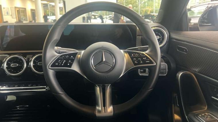 10.25 inch Instrument display with digital cockpit, 10.25 inch touchscreen central media display, Active lane keeping assist, Attention assist - Monitors steering behaviour and long journey fatigue, Blind spot assist, Bluetooth connection, Car wash mode, Cruise control with limiter, Direct steer system, DYNAMIC SELECT with a choice of driving modes (ECO, Comfort, Sport and Individual), ECO start/stop function, Fluid level warning indicator for fuel, oil, coolant and washer fluid, Hard-disk navigation, Hey Mercedes Voice activation, Lamp failure indicator, Mercedes me connect including emergency call system, accident recovery, breakdown and maintenance management, Mercedes me remote services, Outside temperature gauge, Owners manual in English, Pre-installation of private car share, Radio aerial integrated into front and rear windshields, Service indicator (ASSYST), Smartphone integration with Apple CarPlay and Android auto, Speed limit assist, Trip computer in multifunction display with current consumption indicator, Comfort suspension, Rear axle multi-link, DAB digital radio tuner, MBUX multimedia system, Mercedes Benz sound system (100 W) with 6 speakers, Pre installation for Mercedes Benz Link, Adaptive brake lights, Body colour door handles (Chrome insert with Keyless entry), Chrome beltline strips, Electric windows, Electrically adjustable and heated door mirrors with integrated LED indicators, Exhaust system with 2 Visible tailpipe trim elements and rear apron with trim in chrome, Headlamp assist automatic headlamp activation, Heated glass rear windscreen + timer control, High level LED third brake light, Interior mirror with black reading lamps and frameless, LED high performance headlamps with integrated LED daytime running lights and adaptive highbeam assist, LED tail lamp, Privacy glass with dark tinting on rear side windows and rear window, Progressive body-styling - Front apron with trim strip in chrome, visible tailpipe trim elements and rear apron with trim strip in chrome, Radiator grille with Mercedes-Benz pattern in high-gloss black and central Mercedes star, single louvre in matt grey with chrome inserts, Rain sensing windscreen wipers with two sensitivity settings, Rear boot, Rear fog lamp, Rear side wing doors, Variable front intermittent wipers, Window line trim strip in chrome, 3 seat bench in 2nd row, 3 spoke ARTICO man made leather multi function sports steering wheel with black grained gearshift paddles, oeration via touch control panels, 4 way lumbar support, 40:20:40 split folding rear seat backrests, Air conditioning - One zone THERMATIC automatic climate control with automatically controlled air distribution, Air vents with surround in silver chrome, Artico man-made leather upholstery, Automatic child seat recognition sensor, Black roof lining, Brushed stainless steel sports pedals with rubber studs, Comfort seats, Fluorescent jacket, Front centre armrest with stowage, Front head restraints, Heated front seats, Luggage net on driver/front passenger seat backrest, Manually height and reach adjustable steering column, Rear head restraints, Single front passenger seat, Stowage compartment in centre console with retractable cover, Sunvisors with illuminated vanity mirrors, Twin front cupholders, Two outer rear seat isofix and top tether child seat fixing points, Velour floor mats, Light and sight pack - CLA, Mirror pack - CLA, Parking pack with reversing camera - CLA, Seat comfort pack - CLA, USB package plus - CLA, Active bonnet pedestrain safety measure which detects an impact and raises bonnet by 65mm, Active brake assist includes forward collision warning system with autonomous braking, Adaptive brake assist with hold function and hill start assist, Anti lock braking system (ABS) with brake assist, Black seat belts, Bonnet with power domes, Brake pad wear warning indicator, Childproof locks manually operated for rear doors and electrically operated for rear power windows, Crash responsive emergency lighting, Driver and front passenger head and sidebags, Driver and front passenger windowbags, Drivers knee airbag, Dual stage driver and front passenger airbags, Electric parking brake, Electronic stability programme with acceleration skid control, ESP curve dynamic assist, Front and rear seatbelt reminder, Front passenger seat occupancy sensor, Three point rear seat belts, Tyre pressure monitoring system, Warning triangle and first aid kit, Alarm system with immobiliser and interior protection -Thatcham category 1, Guard 360 deg vehicle protection - tow away protection with visual, acoustic warning, interior monitoring, preinstallation for parking damage, Remote central locking and crash sensor with emergency opening function, Dark carbon fibre look trim, 18" multi-spoke himalayas grey painted light alloy wheels with high sheen rim finish, Summer tyres, Tirefit tyre sealant kit,