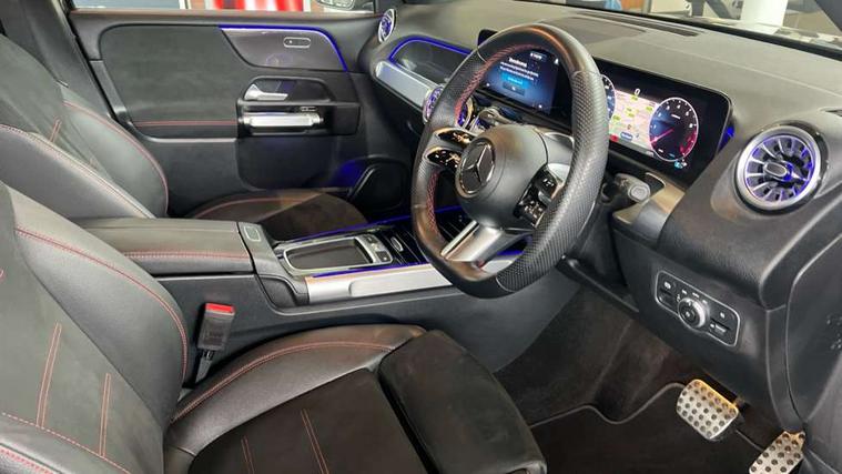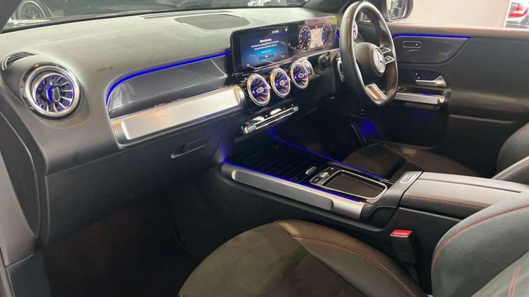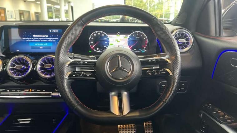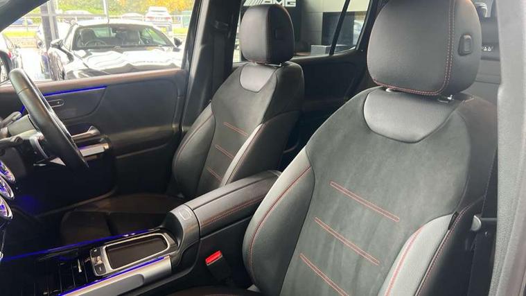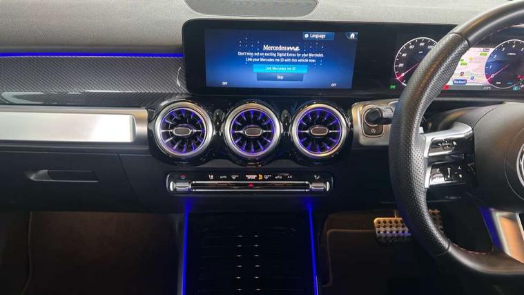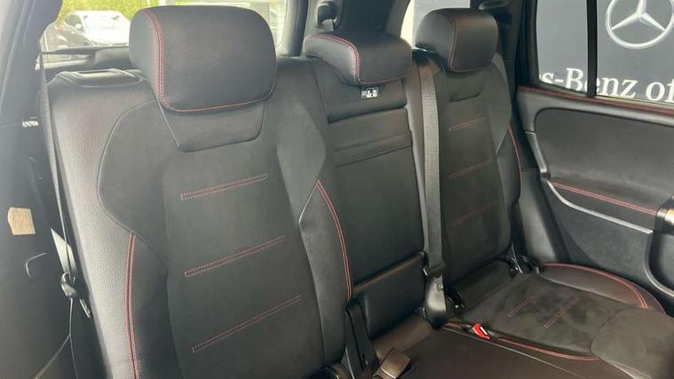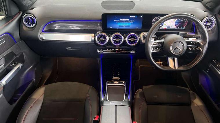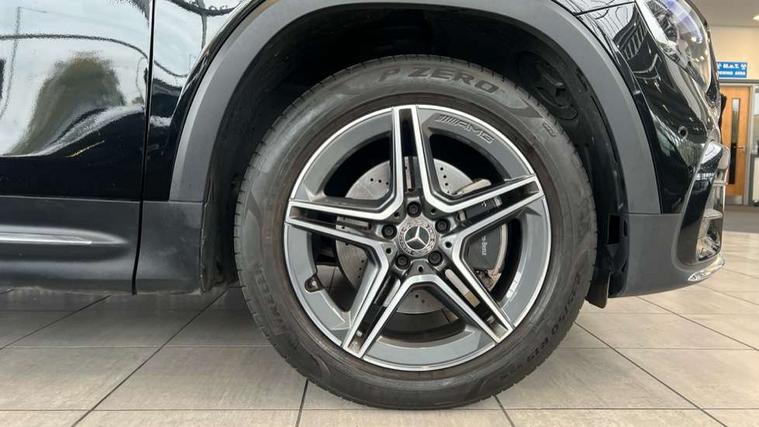 10.25 inch touchscreen central media display, 10.25" Digital instrument cluster display screen, Attention assist - Monitors steering behaviour and long journey fatigue, Blind spot assist, Bluetooth connection, Brake pad wear indicator warning light, Car wash mode, Direct steering, DYNAMIC SELECT with a choice of driving modes (ECO, Comfort, Sport and Individual), ECO start/stop function, Exit warning function, Fingerprint scanner, Fluid level warning indicator for fuel, oil, coolant and washer fluid, Hard disk navigation, Hey Mercedes Voice activation, Lamp failure indicator, Lane keep assist, MBUX navigation premium, Mercedes me connect including emergency call system, accident recovery, breakdown and maintenance management, Mercedes me remote services, Outside temperature gauge, Owners manual and service booklet in English, Pre-installation of private car share, Preinstallation for parking damage notification, Radio aerial integrated into front and rear windshields, Service indicator (ASSYST), Smartphone integration with Apple CarPlay and Android auto, Speed limit assist, Tailgate, Trip computer in multifunction display with current consumption indicator, Wireless charging, Comfort suspension with ride height lowering, Rear axle multi-link, DAB digital radio tuner, MBUX multimedia system, Mercedes Benz sound system (100 W) with 6 speakers, Pre installation for Mercedes Benz Link, Adaptive brake lights, Adaptive high beam assist, AMG front apron with front splitter in the colour of the vehicle with chrome trim element, AMG rear apron with visible tailpipe trim and chrome trim element, AMG specific/dual flow exhaust pipes in chrome (non-functional), Beltline trim and window line trim strip in high gloss aluminium, Black grained side sill trim with chrome inlay, Body coloured door handles, Electric adjustable and heated door mirrors with integrated LED side indicators, Front and rear electric windows, Headlamp assist automatic headlamp activation, Heat insulating dark tinted glass for rear side windows and rear window, Heated glass rear windscreen + timer control, High level LED third brake light, Interior mirror with black reading lamps and frameless, LED high performance headlamps with integrated LED daytime running lights, LED tail lamp, Polished aluminium roof rails, Radiator grille as a diamond grille with chrome pins and central Mercedes star, Rain sensor windscreen wipers with two sensitivity stages, Rear fog lamp, Rear side wing doors, Rear wiper, Single louvre in matt grey with chrome inserts and black highlights, Two visible tailpipe trim elements exhaust, Wheel arch liners in the colour of the vehicle, 3 seat bench in 2nd row, 3 twin spoke flattened multifunction steering wheel in nappa leather - horizontal twin spoke in high gloss black, vertical twin spoke in silver chrome, 4 way adjustable lumbar support, 40:20:40 split folding rear seats, Air vents with silver chrome surrounds, AMG floor mats, AMG sports pedals with brushed stainless steel surfaces and black rubber studs, Artico man-made leather/Microcut microfibre upholstery, Automatic child seat recognition sensor, Black roof lining, Fluorescent jacket, Front and rear headrests, Front centre armrest with stowage, Galvanised steering wheel gearshift paddles in silver chrome, Heated front seats, Height adjustable head restraints, Height/reach adjustable steering column, Interior lighting - 64 colour Ambient lighting, Luggage net on driver/front passenger seat backrest, Single front passenger seat, Sports seats, Stowage compartment in centre console with retractable cover and double cupholder and 12 V socket, Sun visors with illuminated vanity mirrors, THERMATIC automatic climate control, Third row of seats for two people on rear seat, Twin front cup holders, Two outer rear seat isofix and top tether child seat fixing points, Easy pack tailgate, Interior lighting with light and sight pack - GLB, KEYLESS-GO Comfort package - GLB, Mirror package - GLB, Parking Package with reversing camera - GLB, Seat comfort package - GLB, USB package plus - GLB, 3 rear 3 point seatbelts, Active bonnet pedestrain safety measure which detects an impact and raises bonnet by 65mm, Active brake assist includes forward collision warning system with autonomous braking, Adaptive brake assist with hold function and hill start assist, Airbags - kneebag for driver, Anti-lock braking system (ABS) with brake assist, Black seatbelts, Bonnet with power domes, Childproof locks manually operated for rear doors and electrically operated for rear power windows, Crash responsive emergency lighting, Curve dynamic assist, Driver and front passenger head and sidebags, Driver and front passenger windowbags, Dual stage driver and front passenger airbags, Electric parking brake, Electronic stability programme with acceleration skid control, Front and rear seatbelt reminder, Front brake callipers with Mercedes Benz lettering, Front passenger seat occupancy sensor, Perforated front brake discs, Tyre pressure monitoring system, Warning triangle and first aid kit, Guard 360 degree vehicle protection - Anti theft alarm system, tow away protection with visual, acoustic warning and alarm, Interior monitoring system, KEYLESS-GO starting function, Remote central locking and crash sensor with emergency opening function, Thatcham category 1 alarm system with immobiliser and interior protection, Carbon structure trim, 19" AMG 5 twin spoke light alloy wheels aerodynamically optimised, painted in high-gloss black and with a high-sheen finish RTG, Summer tyres, Tirefit tyre sealant kit,