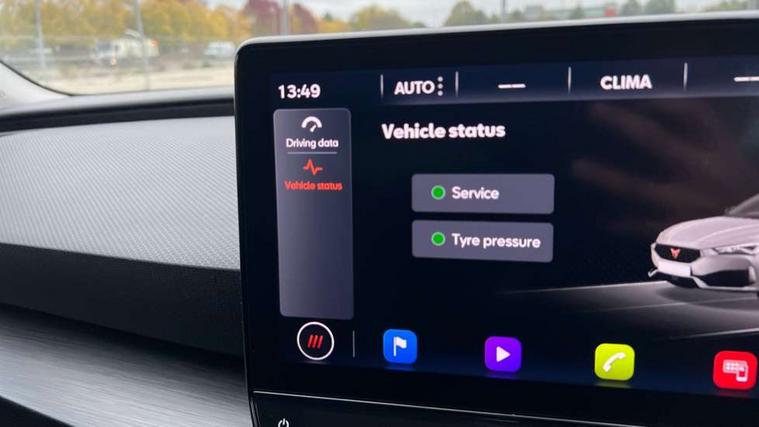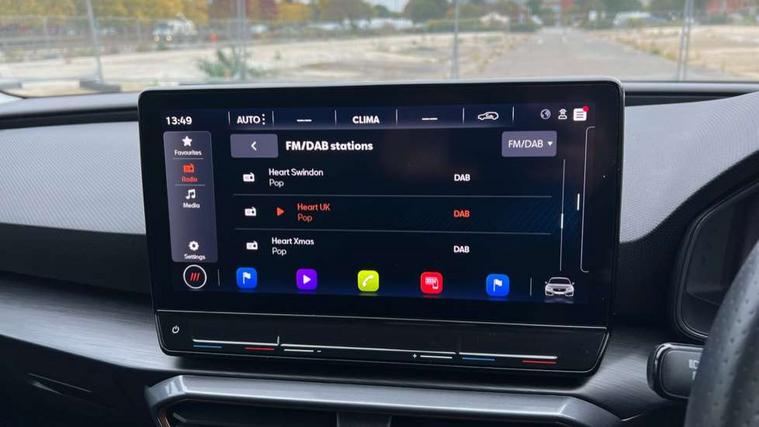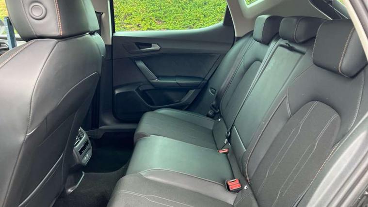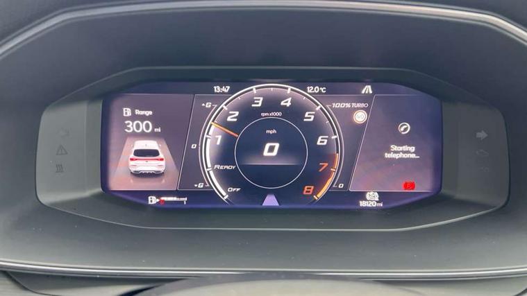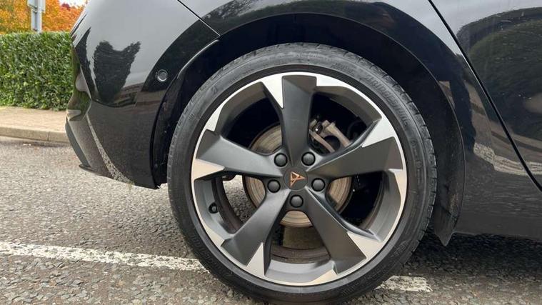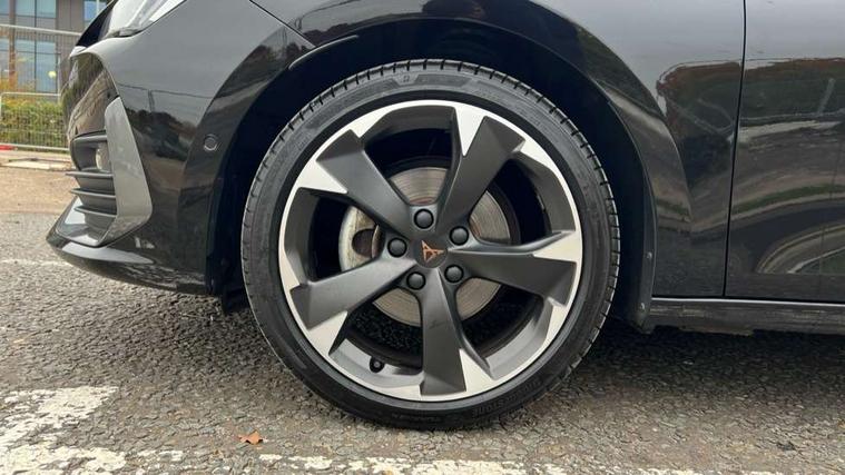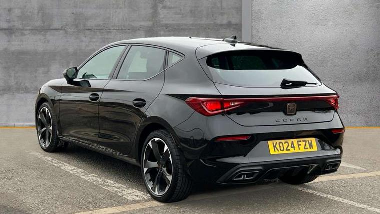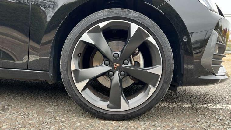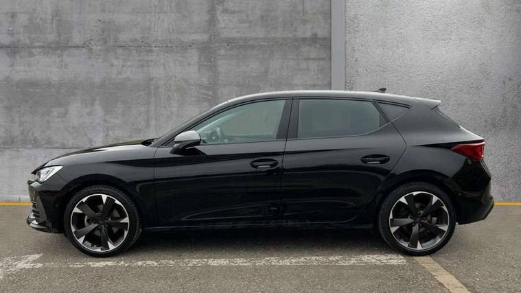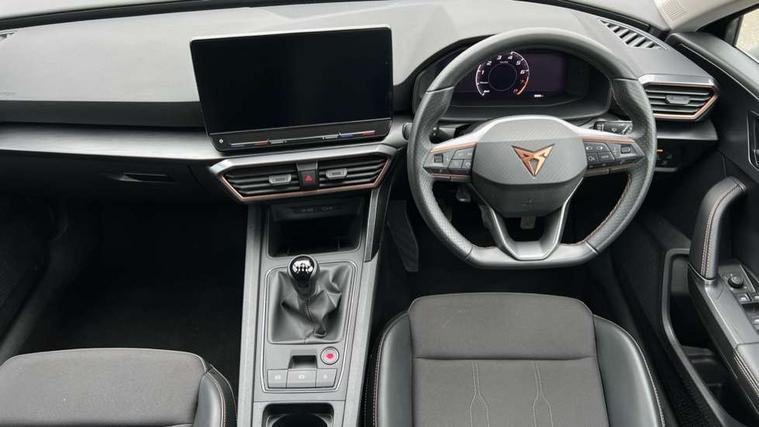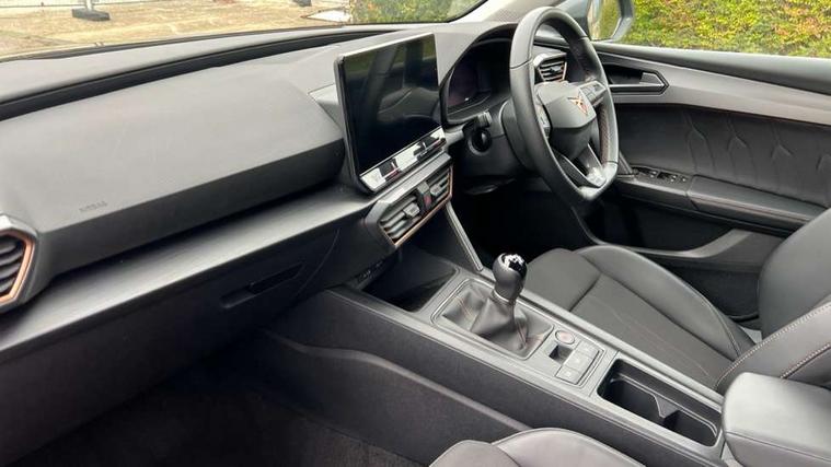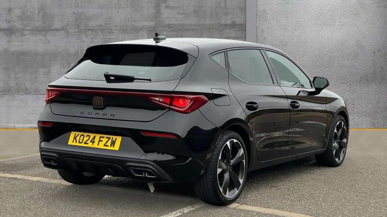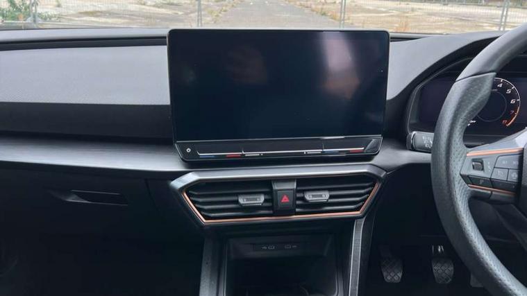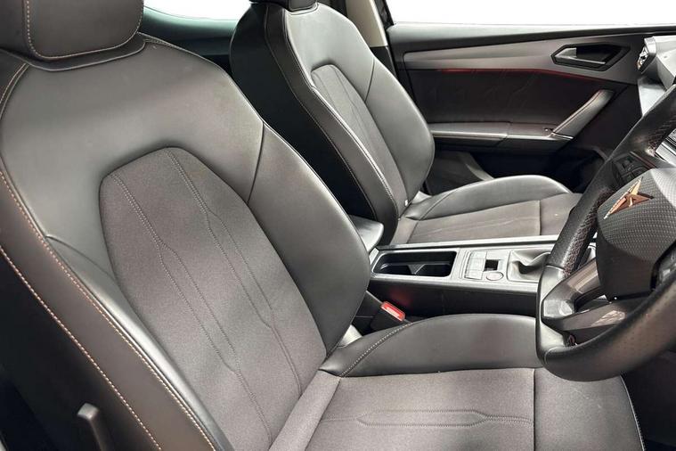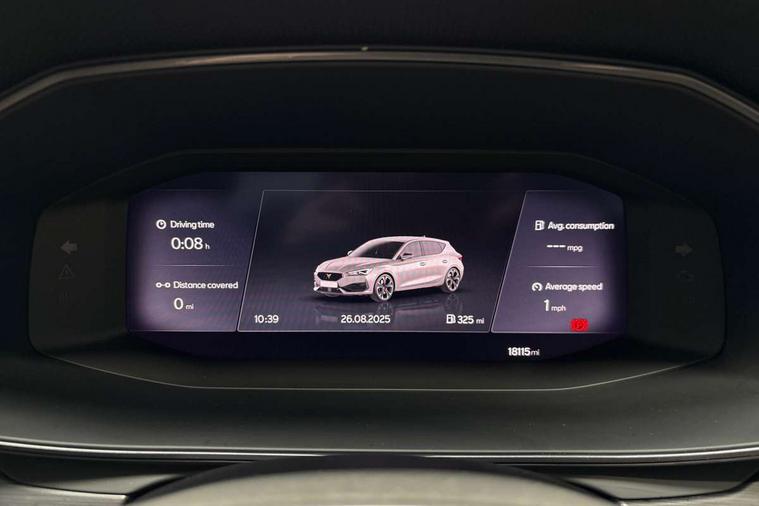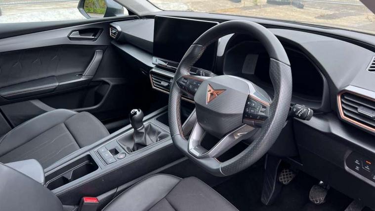 CUPRA drive profile selection with (Comfort/Sport/Individual), throttle response and gearshift mode, Digital cockpit, E-call, Electro mechanical speed sensitive power steering, Four x USB Type C ports (2 in front and 2 in rear), Front assist with forward collision warning braking reaction to vehicles, pedestrians and cyclists, Full link smartphone integration with Mirror Link, wireless Apple CarPlay and wired Google Android Auto, Lane assist, Lockable tailgate, Park assist (inc front/rear parking sensors), Rear view camera, RPM, trip computer, outside temp gauge, instrument light brightness, low fuel warning light, lights on reminder, gearshift indicator, Service interval indicator, Start/stop system with regenerative braking, Wireless phone charger, Sports suspension, Auxiliary input socket, Auto dimming rear view mirror, Body colour door handles, Body coloured bumpers, Cupra sports bumpers, Dark tinted rear windows, Electric front/rear windows, Electrically adjustable, heated and folding door mirrors, LED front fog lamps with cornering function, LED headlights with dynamic turn signals, tail lights, rear fog lights with rear coast to coast lighting, Rain sensing wipers, Rear diffuser with twin exhaust pipe on each side, Rear side wing doors, Rear wash/wipe, Separate daytime running light with automatic headlight control and coming home feature, Third brake light, 12v power supply in centre console, 3 seat bench in 2nd row, 5 headrests, 60/40 split rear bench seat with armrest, Ambient lighting with glovebox, footwell and single monocolour, Cupra Leather flat bottomed, perforated steering wheel, Driver/passenger manual seat height adjustment, Folding boot cover, Front and rear reading lights X 4, Front centre armrest, Front seats manual lumbar adjustment, Grey headlining, Height/reach adjust steering wheel, Illuminated interior front door sills, ISOFIX points in outer rear seats with top tether anchorage points, Jack and tool kit, PVC/Cloth upholstery with copper stitching, Single front passenger seat, Sports seats, Sunvisors with illuminated mirror, Three zone climate control, Media system plus with navigation pack - Leon Cupra, Safety and driving pack (M) - Cupra leon, 3 point seatbelts on all rear seats, ABS, Brake control system - ESC and brake booster, Child proof door locks, Cupra black brake calipers, Driver and front passenger airbags with front passenger airbag de-activation, front side and curtain airbags, Electronic parking brake, Extended safety system - seat belt tensioner, window closure and hazard lights, Hill hold control, Rear disc brakes, Seat belt reminder for front and rear seats, Tiredness recognition system, Tyre pressure monitoring system, Anti theft alarm system with interior monitoring in cab, backup horn and towing protection, KESSY Advanced - Keyless start, keyless entry, Locking wheel bolts, Chrome and copper interior detailing, 18" Machined sport black and silver alloy wheels with 92Y tyres,