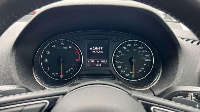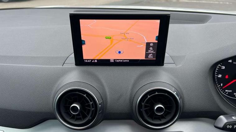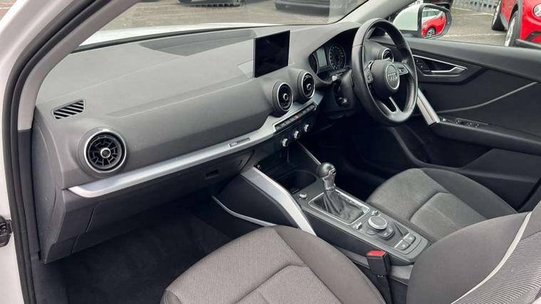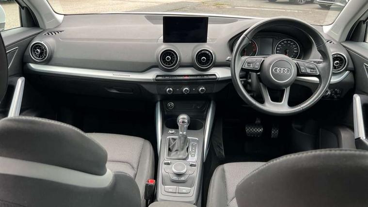 Audi drive select, Audi smartphone interface, Bluetooth hands free telephone connection, MMI - Multi Media Interface control system, MMI SD card Navigation, PAS, Service interval indicator, Voice control system, Dynamic suspension, Audi music interface, Aux input, CD player, DAB digital radio module, MMI radio plus with 7" colour MMI screen and MMI controller, USB port, Body colour door mirrors, Chrome exhaust tailpipe, Door mirror integrated indicators, Electrically adjustable and heated door mirrors, Front and rear electric windows, Rear wiper, Sunband for windscreen, Aluminium door sill trims, Centre console with storage/cupholders, Front and rear door pockets, Front and rear headrests, Front and rear velour floor mats, Front centre armrest, Front sports seats, Glovebox, Height adjustable front seats, Height/reach adjust steering wheel, ISOFIX on front passenger and rear outer seats, Storage compartment in rear centre console, Titanium grey cloth headlining, Non smoking pack - Q2, 3x3 point rear seatbelts, ABS+Electronic Brake force Distribution, Curtain airbags, Driver and passenger airbags, Driver and passenger side airbags, EDL + ASR, Electrically operated child locks on rear doors, Electromechanical parking brake, ESP, Multi-Collision braking, Pre-sense front with pedestrian recognition, Seatbelt warning light, Tyre pressure monitoring system, Warning triangle and first aid kit, Locking wheel bolts, Remote central locking, Thatcham category 1 alarm + immobiliser, Aluminium interior trim,