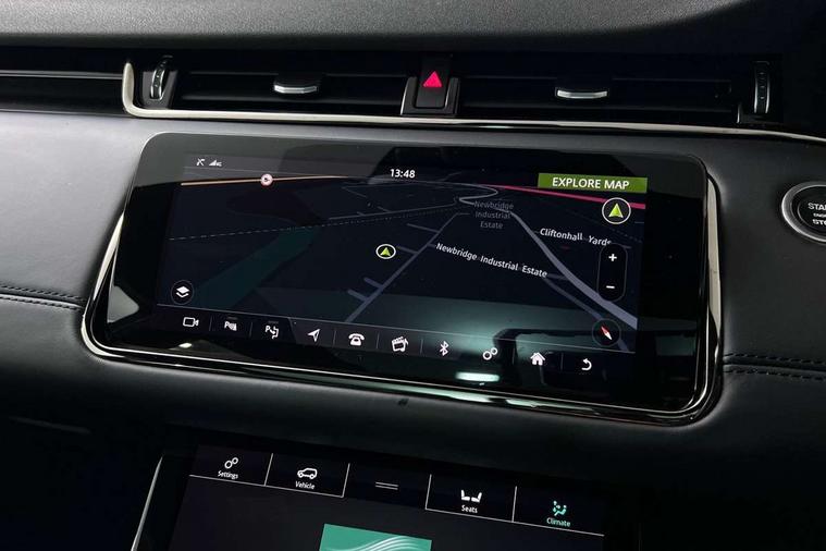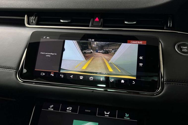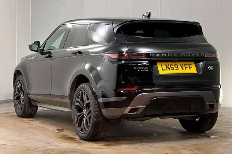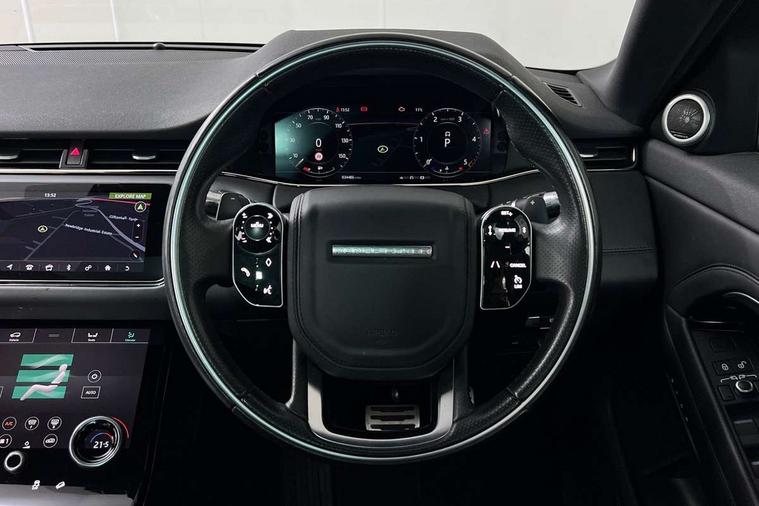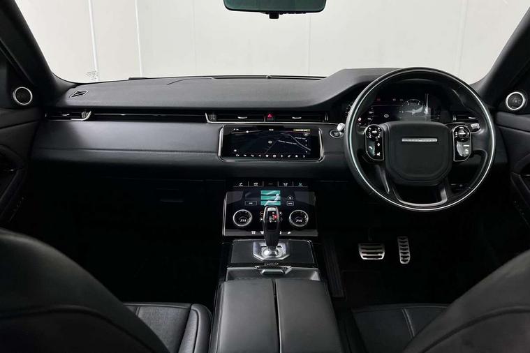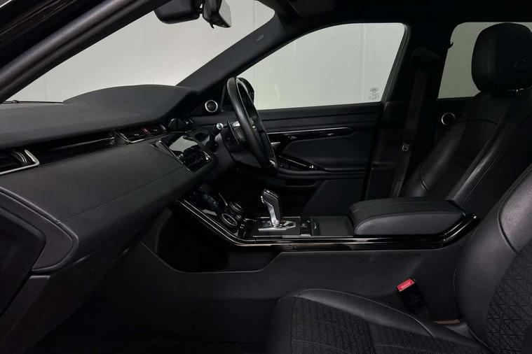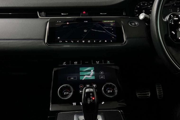 360 degree parking aid, Adaptive cruise control, Android Auto, Apple car play, Blind spot assist, Bluetooth connectivity, Brake pad wear indicator warning light, Clear exit monitor, Driver condition monitor, Duo touch pro, Electronic power assisted steering (EPAS), InControl remote, Interactive Driver display instrument cluster, Land Rover InControl apps, Lane keep assist, Navigation pro system, Park assist - Parallel, perpendicular and parking exit, Powered gesture tailgate/boot lid, Pro services and wifi hotspot, Push button starter, Rear traffic monitor, Smart settings, Traffic sign recognition with adaptive speed limiter, Voice control system, All terrain progress control, Efficient Driveline, Passive suspension, Terrain Response 2 Auto, Digital Audio Broadcast radio-DAB, Steering wheel mounted controls, Automatic headlight levelling, ClearSight interior rear view mirror, Electric windows with one touch open/close and anti trap, Evoque and R-Dynamic badge, Flush deployable exterior door handles, Heated rear window with timer, Heated washer jets, Heated windscreen, Power fold, auto-dimming, heated door mirrors with memory and approach lights, Rain sensing windscreen wipers, Rear fog lights, Shadow atlas bonnet and tailgate script, Tailgate spoiler, 40:20:40 split folding rear seats, Black gearshift paddles, Bright metal pedals, Isofix system on outer rear seats, Overhead lighting console, Overhead stowage for sunglasses, Passive front head restraints, Rear air vents, Rear centre headrest, Sunvisors with illuminated vanity mirrors, Twin front cupholders with cover, Twin sliding front centre armrest, Two zone climate control, Anti-lock braking system (ABS), Customer configurable autolock, DSC - Dynamic Stability Control, Electronic brake force distribution, Electronic parking brake, Electronic traction control, Front and rear seatbelt reminder, High speed emergency braking, Hill descent control, Hill launch assist, Low traction launch, Power operated child locks, Roll stability control, Six airbags - Driver and passenger airbags/driver knee airbag/front side airbag and curtain airbags, Torque vectoring brake, Tyre pressure monitoring system, Alarm, Immobiliser, Intrusion sensor, Keyless entry, Locking wheel nuts,