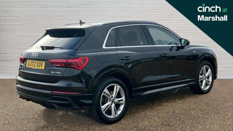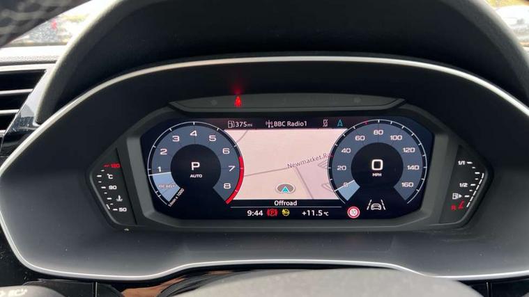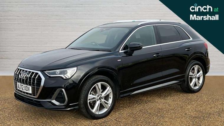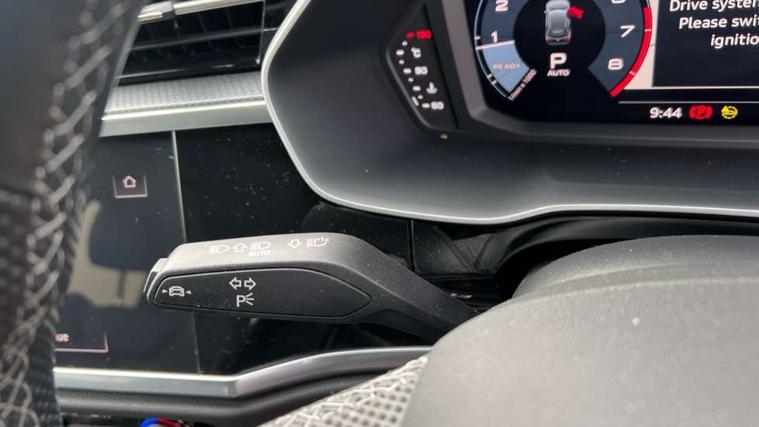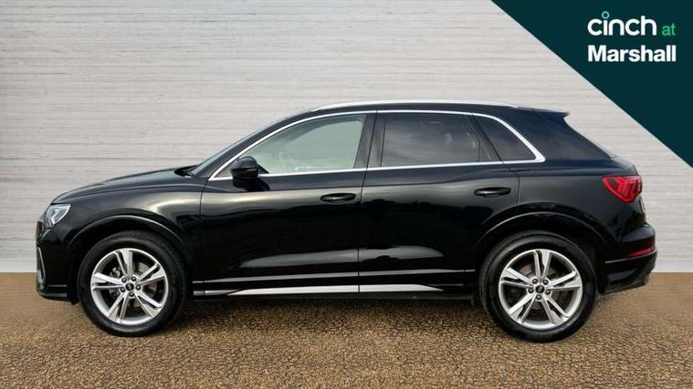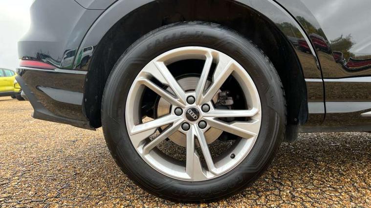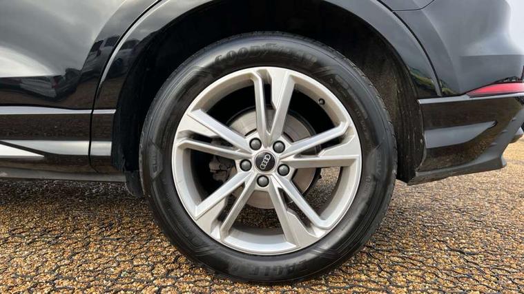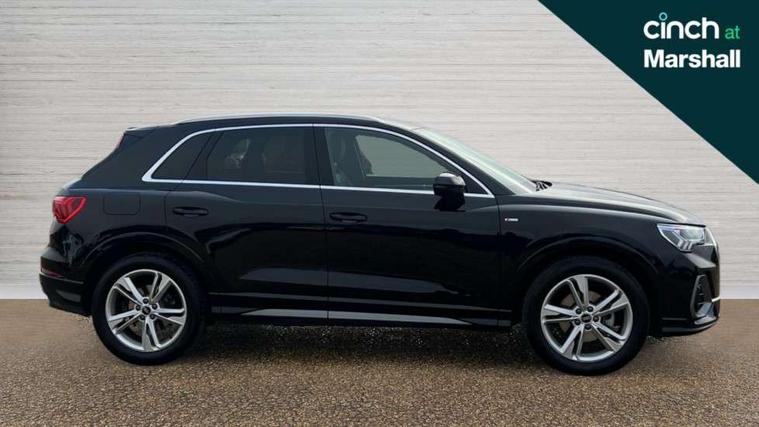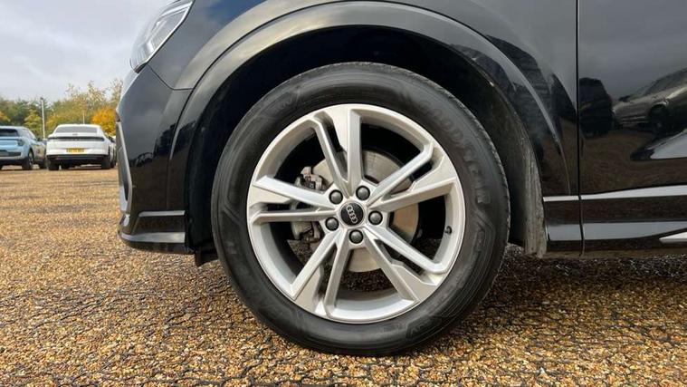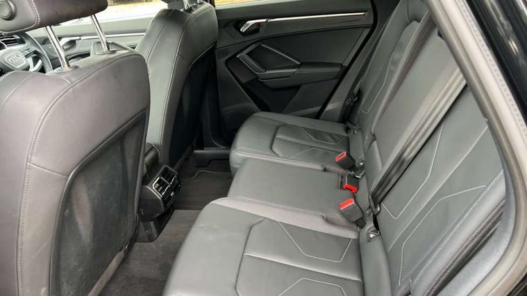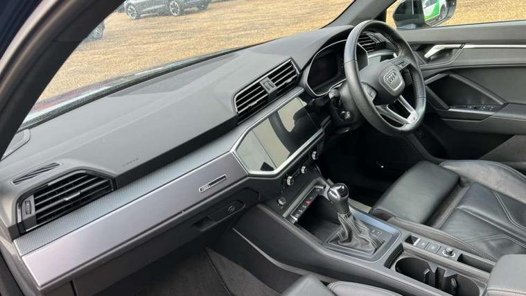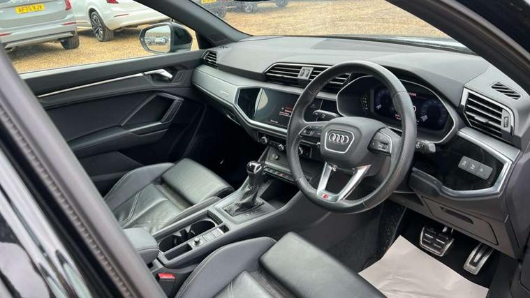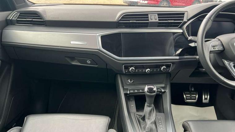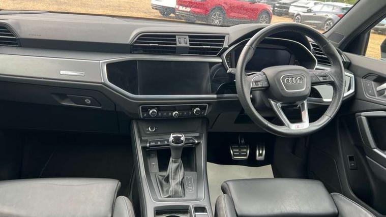 Amazon alexa Integration, Audi drive select, Audi lane departure warning, Audi Virtual Cockpit - 10.25" display, Bluetooth interface, Camera based traffic sign recognition, Legal emergency call, MMI Navigation Plus with high resolution 10.1 inch touchscreen colour display, Power operated tailgate, Progressive steering, Service interval indicator, Smartphone interface includes wireless Apple carplay/Android Auto, Start stop system with recuperation, Voice control system with natural language interaction, Sports suspension, 2 USB-C ports with charge and data functions, 6 passive loudspeakers, DAB digital radio module, Acoustic windscreen, Aluminium roof rails, Aluminium window trim, Auto dimming frameless rear view mirror, Body colour front spoiler blade, Body coloured bumpers, Electrically folding, adjustable and heated door mirrors with integrated LED side indicators and kerb view function for passenger side, Front and rear electric windows, Front fog lights, Front side air inlets in matt platinum grey, Grille vertical bars in aluminium silver/Matt, High gloss black finish B and C pillars, LED Dynamic rear indicators, LED headlights with LED daytime running lights, LED rear lights, LED third brake light, Privacy glass dark tinted rear and rear-side windows (from B-pillar backwards), Rain and light sensors, Rear diffuser grille in grained matt black, Rear diffuser strip in matt titanium black, Rear side wing doors, Rear wiper, S line badges on front wings, S Line front and rear bumpers, Side skirt insert in matt Platinium grey, Titanium black radiator grille, Variable front intermittent wipers, 12V socket in rear centre console, 3 seat bench in 2nd row, 40:20:40 folding with manual adjustment for 60:40 forwards/backwards position and backrest angle, Adjustable rear seat bench/backrest with centre armrest and cupholder, Black cloth headlining, Dual zone electronic climate control, Front and rear black floor mats with contrast stitching in rock grey, Front and rear headrests, Front and rear roof module including reading lights, Front centre armrest, Glove compartment lighting, Height and reach adjustable steering wheel, Illuminated door sill trims with S logo, ISOFIX child seat mounting for front passenger with airbag deactivation and outer rear seat including top tether attachment point for outer rear seats, Luggage compartment light, Manual front seats with height adjustment, Perforated leather gearknob, Single front passenger seat, Stainless steel luggage compartment sill finisher, Stainless steel pedals, Ambient lighting pack - Q3, Non smoking pack - Q3, 3x3 point rear seatbelts, 6 airbags - Driver, front passenger, curtain and side windows, Audi pre-sense front with pedestrain and cyclist recognition, Electrically operated child locks on rear doors, Electromechanical parking brake, Electronic stabilisation control including ABS, ASR and EDL, Front seatbelt reminder, Hill descent control, Hill hold assist, Pre sense basic, Seatbelt monitoring, Tyre pressure warning, Warning triangle and first aid kit, Anti theft alarm, Anti theft wheel bolts, Immobiliser, Remote central locking, Dark matt brushed aluminium inlay, Detail dashboard around MMI touch colour display in glass look, black with surround in aluminium look, Leatherette door armrest,