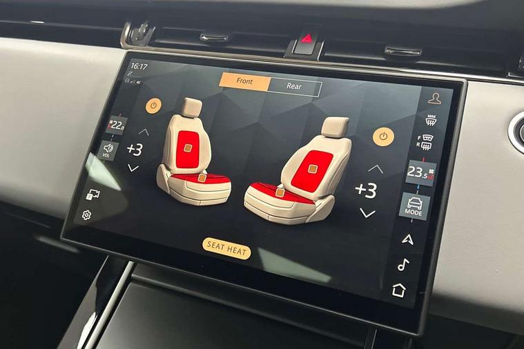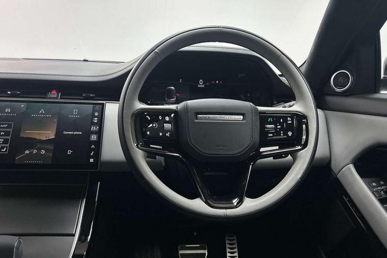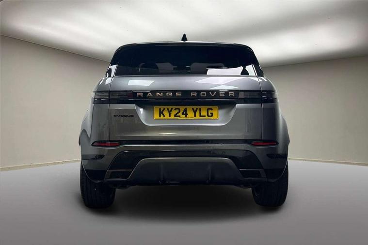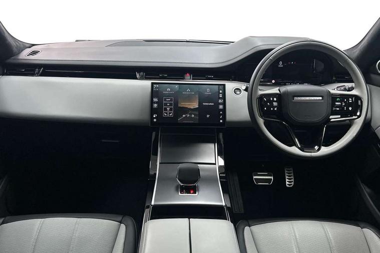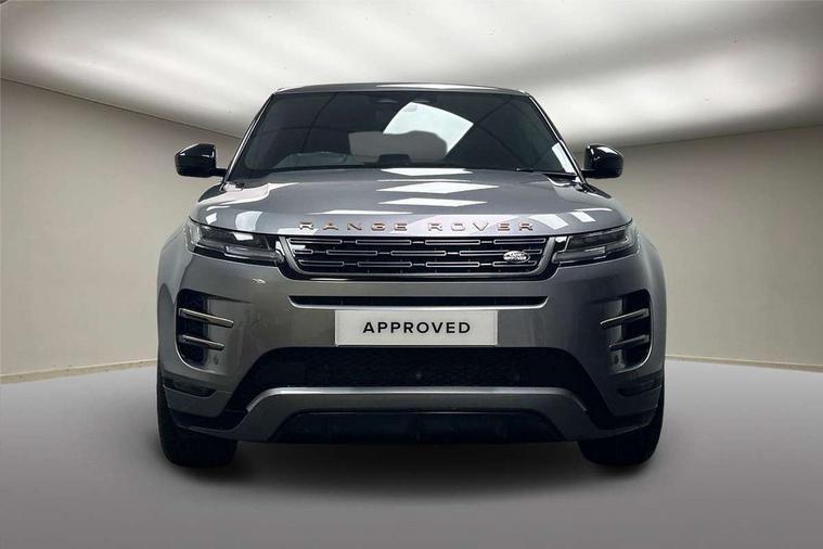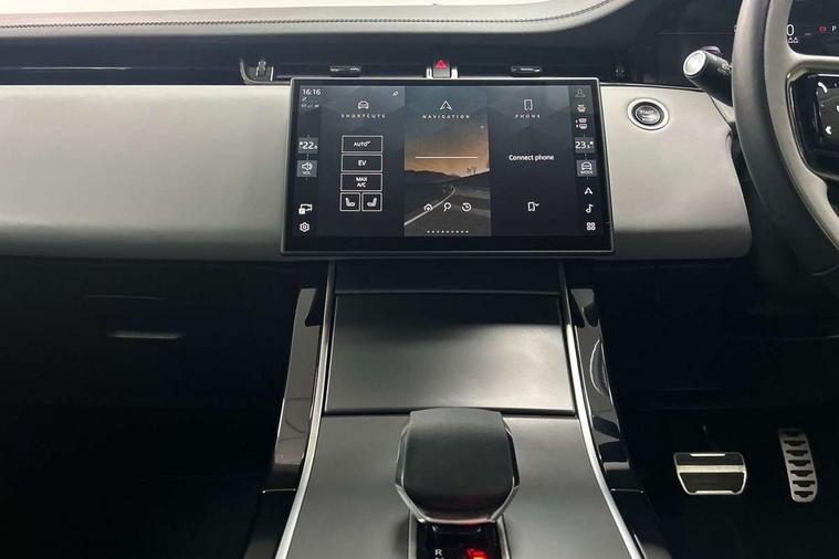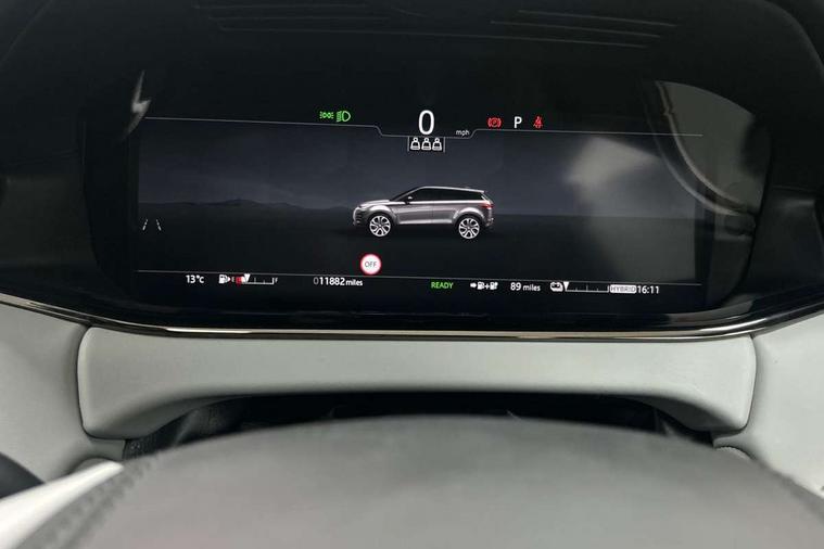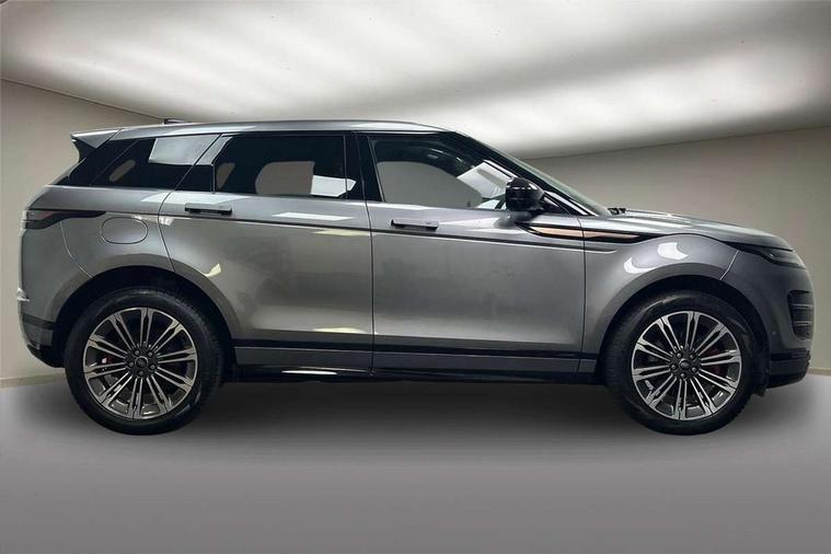 11.4" touch screen, 3D 360 degree surround camera with wade sensing, Adaptive cruise control, Android Auto, Apple car play, Blind spot assist, Bluetooth connectivity, Brake pad wear indicator warning light, Driver condition monitor, eCall emergency system, Eco mode, Electronic power assisted steering (EPAS), Front and rear parking aid, Head up Display, InControl remote, Interactive driver display, Land Rover InControl apps, Lane keep assist, Pivi pro connected includes diamond pivi variant, smart settings, connected navigation pro, nuance speech licence, Powered tailgate/boot lid, Rear collision monitor, Rear traffic monitor, Traffic sign recognition with adaptive speed limiter, Voice control system, Wireless device charging, All terrain progress control, Configurable dynamics, Electric rear axle drive, Home charging cable, Large fuel tank, Passive suspension, Public charging cable, Terrain Response 2, Digital Audio Broadcast radio-DAB, Steering wheel mounted controls, Acoustic laminated windscreen, Auto headlights, Automatic headlight levelling, ClearSight interior rear view mirror, Electric windows with one touch open/close and anti trap, Flush deployable exterior door handles, Front and rear recovery eyes, Front fog lights, Heated rear window with timer, Heated washer jets, Heated windscreen, Pixel LED headlights with signature DRL and LED tail Lights, Power fold, auto-dimming, heated door mirrors with approach lights and auto dimming driver side, Rain sensing windscreen wipers, Range rover branding illuminated metal tread plates in loadspace and row 1 with brand name script and metal in row 2, Rear animated directional indicators, Rear fog lights, Rear side wing doors, Rear wiper, Side repeater indicators in mirror, Sliding panoramic roof with powered sunblind, Tailgate spoiler, Third brake light, Winter wiper park position, 14 way driver memory electric front seats with 2 way manual headrests + 4 way lumbar support, bolsters, 40:20:40 split folding rear seats with centre headrest and armrest, Ambient interior lighting, Bright metal pedals, Cabin Air Purification plus, Configurable cabin lighting, Customer configurable single point entry, Electrically adjustable steering column with memory function and easy entry/exit, Front and rear cupholders, Heated and cooled front seats, Heated rear seats, Heated steering wheel, Isofix system on outer rear seats, Overhead lighting console, Overhead stowage for sunglasses, Passive front head restraints, Premium carpet mats, Rear air vents, Rear head restraints, Satin chrome gearshift paddles, Single passenger seat, Sunvisors with illuminated vanity mirrors, Twin sliding front centre armrest, Online pack with data plan - Evoque, Power socket pack 2 - Evoque, 3 rear 3 point seatbelts, Anti-lock braking system (ABS), Brake hold function, Customer configurable autolock, DSC - Dynamic Stability Control, Electronic brake force distribution, Electronic parking brake, Electronic traction control, Emergency braking, Front and rear seatbelt reminder, Hill descent control, Hill launch assist, Low traction launch, Occupant protection assist, Passenger seat occupant detector, Power operated child locks, Roll stability control, Six airbags - Driver and passenger airbags/driver knee airbag/front side airbag and curtain airbags, Torque vectoring brake, Tyre pressure monitoring system, Alarm, Immobiliser, Intrusion sensor, Keyless entry, Locking wheel nuts, All season tyres,