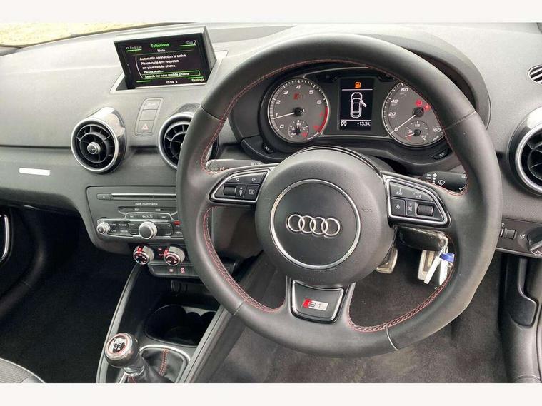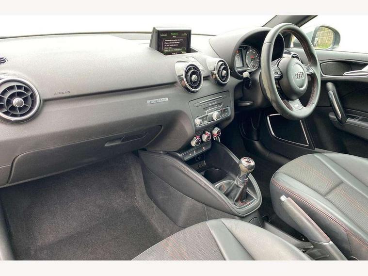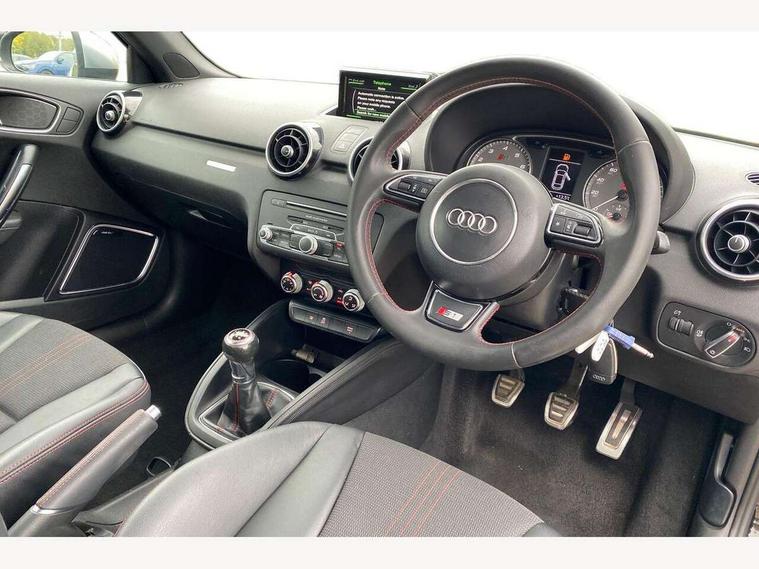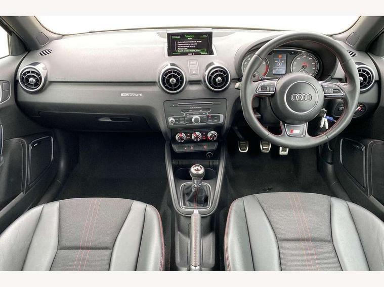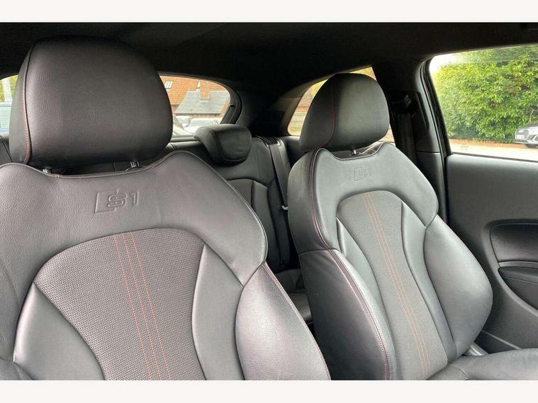 Audi drive select, Driver's information system, Low washer fluid indicator, Service interval indicator, Speed sensitive power steering, Voice control system, S sports suspension, Additional SD card reader, Audi music interface, Bluetooth audio streaming, DAB Digital radio, Adaptive brake lights, Adaptive Xenon headlights plus with LED daytime running lights, dynamic range control and headlight washers, Aluminium door mirror housings, Body coloured bumpers, Dual branch oval twin exhaust tailpipes, Electric adjustable door mirrors, Electric front windows, Front fog lights, Heat insulating glass, Heated door mirrors, Heated rear windscreen, LED rear lights, Rain and light sensors, Rear diffuser, Rear wiper, S body styling, Sunband for windscreen, 12V Accessory socket in centre console, Adjustable rear head restraints, Black cloth headlining, Cupholders in centre console, Door sills trims with aluminium inlays, Electronic climate control (ECC), Front floor mats, Front head restraints, Front seats - 'Easy Entry', Height adjustable front seats, Illuminated glovebox, Isofix attachments on outer rear seats, Jack and tool kit, Leather handbrake, Lumbar adjustment for front seats, Rake/reach adjustable steering wheel, Split folding rear seats, Stainless steel pedals, LED interior lighting pack - A1, ABS/EBD, Brake assist function, Driver and passenger side airbags, Driver/Front Passenger airbags, EDL, ESP with ASR, First aid kit, Front and rear seatbelt reminder, Front passenger airbag deactivation, Head airbags, Height adjustable front seatbelts, Rear three point seatbelts x 2, Tyre pressure monitor, Warning triangle, Locking wheel bolts, Remote control central locking, Thatcham category 1 alarm + immobiliser, Tyre repair kit,