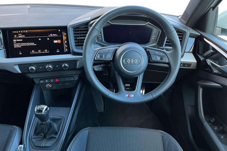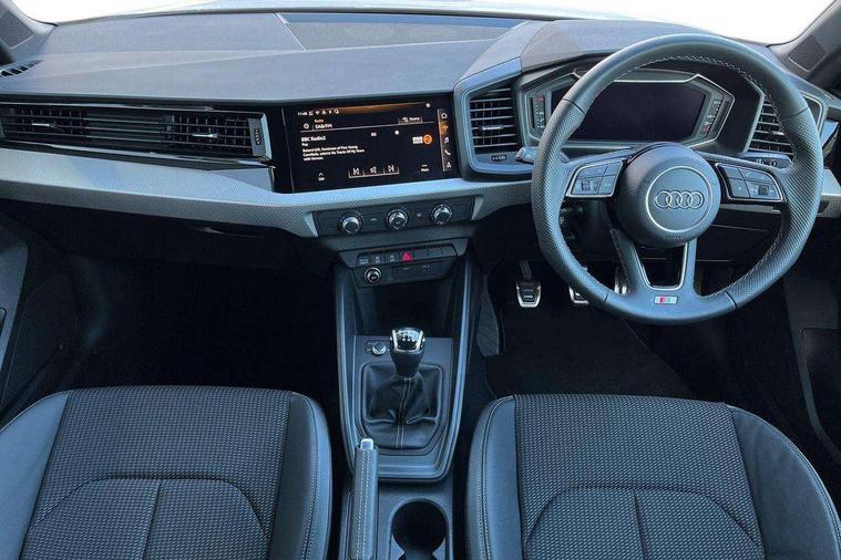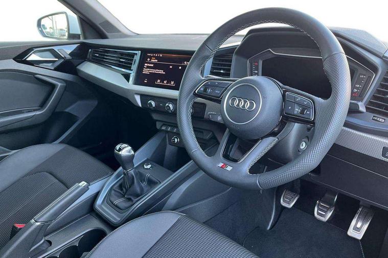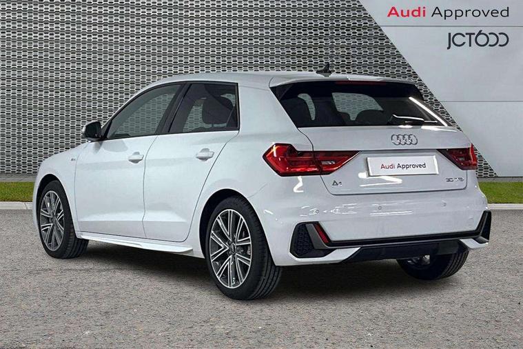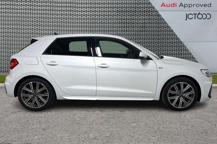 10.25" Digital instrument cluster display classis style instrument dials + speed, odometer, time, outside temperature, telephone menu + fuel level warning, Advanced driver attention and drowsiness monitor, Audi connect emergency call and service, Audi drive select, Audi remote connect and control, Audi smartphone interface, Bluetooth interface, Camera based traffic sign recognition, Cruise control, Driver's information system, Electromechanical power steering, Lane departure warning system, Rear parking sensor, Service interval indicator, Speed limiter, Start stop system with recuperation, Voice control system, Washer fluid level indicator, Sports suspension, 2 x USB type C connection points, 6 loudspeakers, DAB Digital radio, MMI radio plus with 10.1" colour MMI display screen and MMI touch, Auto dimming rear view mirror, Body coloured door mirrors, Door sill trims with aluminium inlays and S line logo in front, Electric front and rear windows, Electrically adjustable, heated, folding door mirrors with integrated LED side indicator, Front side air inlets in grained matt black and C frame in anthracite black, Headlight cleaning system, Heat insulating glass windscreen and side windows, Heated rear windscreen, High level LED brake light, LED daytime running lights, LED headlights with range control LED rear lights + dynamic rear indicators, Light and rain sensors, Privacy glass, Radiator grille and rear diffuser in matt anthracite black, Radiator protective grille frame in matt aluminium silver, Rear fog lights, Rear side wing doors, Rear wiper, S line badges on front wings, Side front spoiler lips in grained matt black, 12V socket in centre console with two cup holders, 3 rear seats with headrests, 3 seat bench in 2nd row, 3 spoke leather multi-function plus steering wheel features S badging and grips in perforated leather with contrast stitching, 40:60 Split folding rear seat or fully collapsed, Black cloth headlining, Front and rear velour black floor mats with contrast stitching in fine silver, Front head restraints, Front passenger seat, Height and reach adjustable steering wheel, Interior lighting includes roof module, front and rear reading lights and right luggage compartment lighting, ISOFIX child seat mounting for front passenger and outer rear seats including top tether attachment point of outer rear seats, Leather gear knob with aluminium trim, Leather handbrake grip, Manual air conditioning, Manual height adjustable for driver and front passenger seat, Manually adjustable lumbar support in front seats, Stainless steel pedals, Ambient lighting package - A1, Luggage compartment pack - A1, S line exterior styling pack - A1 Sportback, 3x3 point rear seatbelts, Audi pre-sense front with pedestrain and cyclist recognition, Brake assist function, Driver and front passenger airbag with front side and head airbags, Electronic Stability Control including ABS, EBD, ASR and EDL, Front passenger airbag deactivation switch, Hill hold assist, Manual rear child locks, Seatbelt height adjustment for front seats, Seatbelt monitoring, Tyre pressure loss indicator, Warning triangle and first aid kit, Anti theft alarm, Anti theft wheel bolts, Immobiliser, Remote control key with safelock, Aluminium trim for control switches, air vents and digital instrument cluster, Black dashboard, Silver grey inlays polygon structure in diamond paint finish, Structured grey accent surfaces insert of air vents, interior door handle recesses and centre console in quartz paint finish,