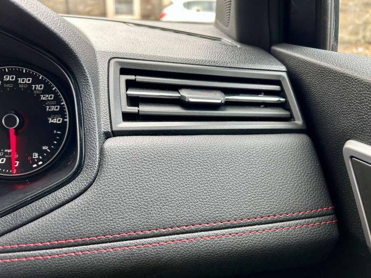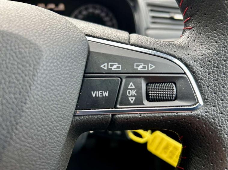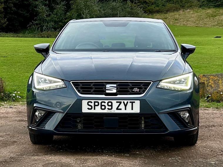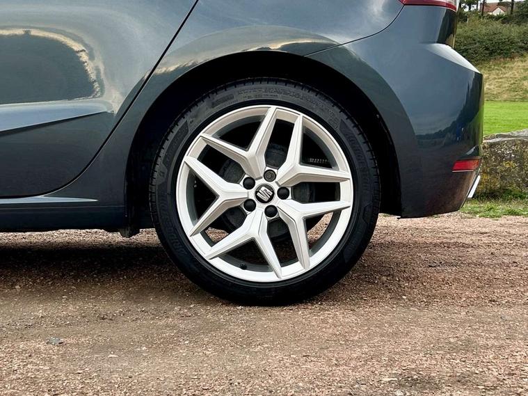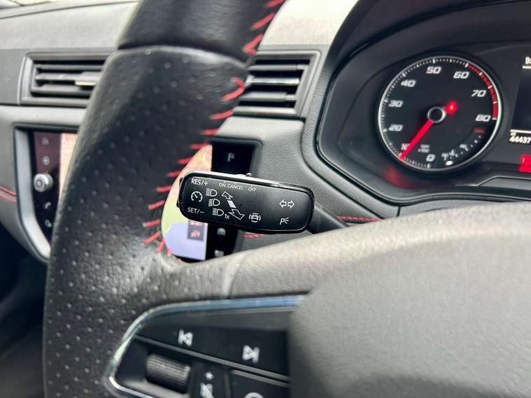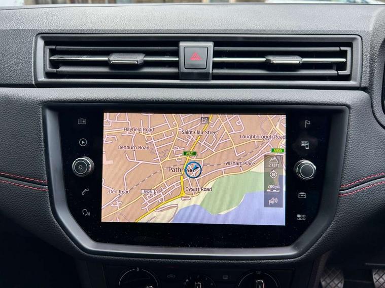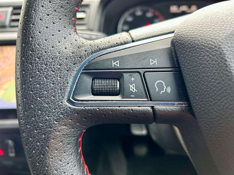 'Lights On' Reminder warning buzzer, Bluetooth Handsfree Phone Connection, Cruise control, Digital clock, Full Link Smartphone Integration with Mirror Link, Apple Car Play, Google Android Auto, Low fuel warning light, Outside temperature gauge, Power Steering, Satellite navigation system with 3D mapping, 8" touch screen, voice control and additional USB port, SEAT Drive profile, SEAT logo boot release, Trip computer, Sports suspension, 6 speakers, Auxiliary input socket, CD player, Digital Audio Broadcast (DAB) Tuner, Radio/MP3 player, SD card slot, SEAT USB media cable, Steering wheel mounted controls, USB port, Anti theft roof antenna, Auto dimming rear view mirror, Automatic headlights, Automatic rain sensing wipers, Body colour bumpers, Body colour door handles, Brilliant black door mirrors, Chrome front grille frame, Chrome grille, Coming/leaving home lighting function, Cornering front fog lights, Dark tinted rear windows, Electric folding door mirrors, Electric front windows, Electric headlight adjustment, Electrically adjustable and heated door mirrors, Exclusive FR rear bumper, Full LED headlights, LED daytime running lights, LED tail lights, Rear fog lights, Twin exhaust pipes, 3 rear headrests, 60/40 split folding rear seat, Air conditioning, Door and steering wheel ice metal decorative inserts, Driver's sunvisor with ticket holder/vanity mirror, Dust/pollen filter, Flat bottomed perforated leather steering wheel with red stitching and FR logo, Front courtesy lights, Front cupholders x 2, Front reading lights, Gear shift indicator, Glovebox, Height adjustable driver's seat, Height adjustable front/rear head restraints, Height adjustable passenger seat, Height/reach adjust steering wheel, Illuminated boot, Instrument lighting with brightness control, Leather handbrake, Multi-colour ambient interior lighting, Nora cloth upholstery, Passenger sunvisor, Rear top tether child seat ISOFIX attachment, Sports seats, Full LED headlight pack - Ibiza, 3 point seatbelts on all 3 rear seats, ABS, Active front headrests, Child locks on rear doors, Curtain airbags, Driver/Front Passenger airbags, ESP+EBA, Front assist (AEB), Front passenger airbag deactivation, Front side airbags, Hill hold control, Multi-Collision braking, Seatbelt warning, Tiredness recognition system, Tyre pressure monitoring system, Electronic engine immobiliser, Locking wheel bolts, Remote central locking + deadlocks, Volumetric alarm with back up horn, Leather dashboard, 17" Dynamic alloy wheels,
