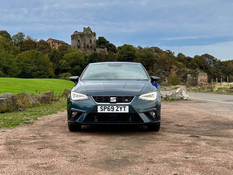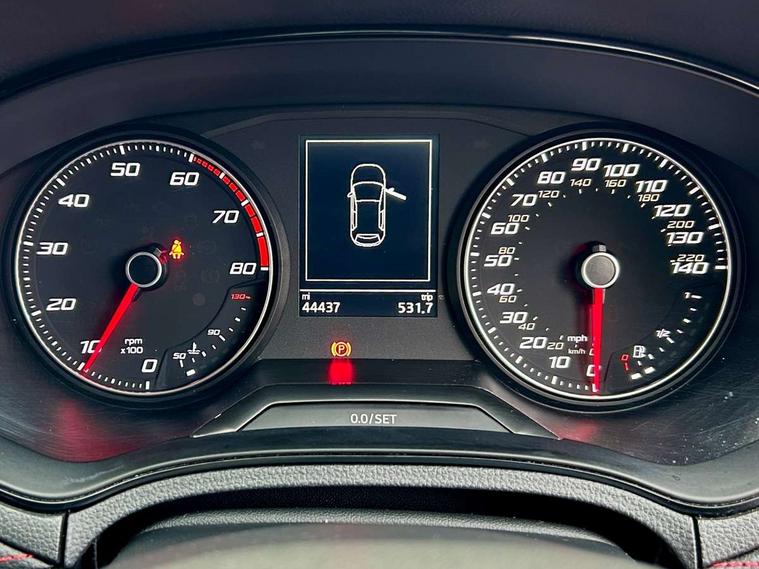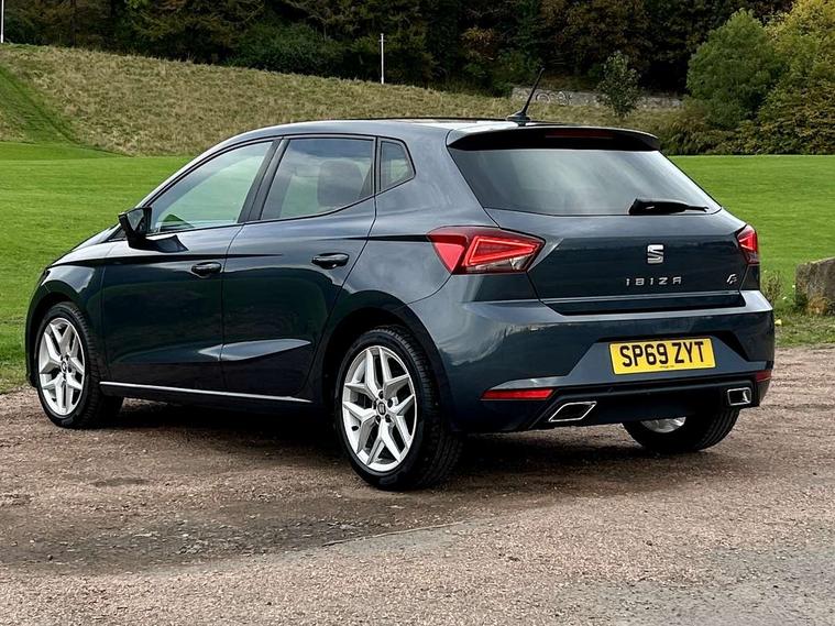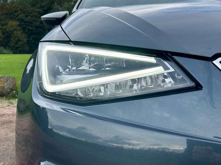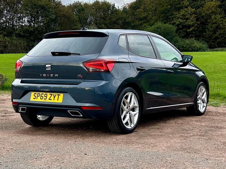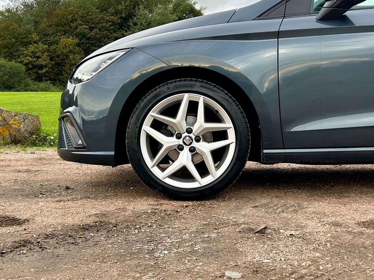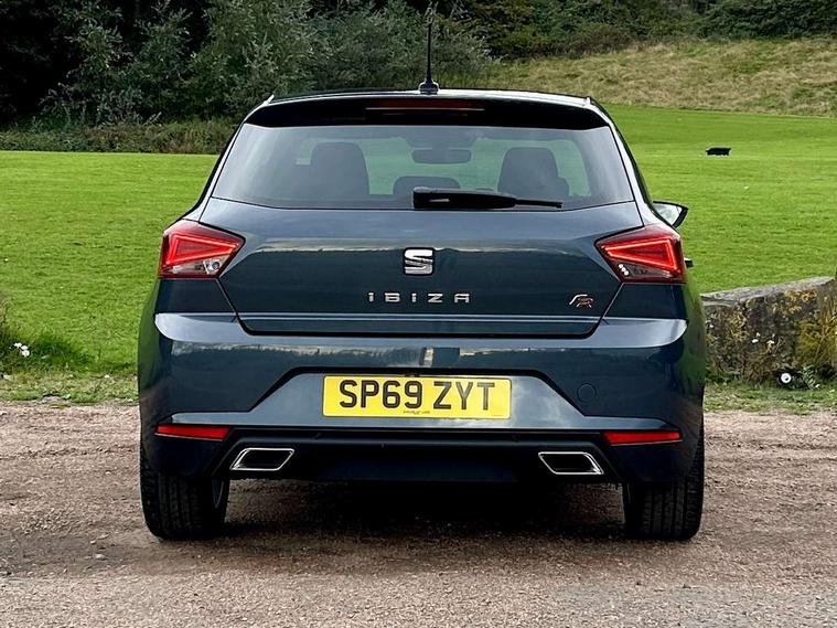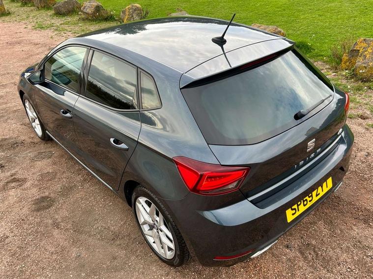 'Lights On' Reminder warning buzzer, Bluetooth Handsfree Phone Connection, Cruise control, Digital clock, Full Link Smartphone Integration with Mirror Link, Apple Car Play, Google Android Auto, Low fuel warning light, Outside temperature gauge, Power Steering, Satellite navigation system with 3D mapping, 8" touch screen, voice control and additional USB port, SEAT Drive profile, SEAT logo boot release, Trip computer, Sports suspension, 6 speakers, Auxiliary input socket, CD player, Digital Audio Broadcast (DAB) Tuner, Radio/MP3 player, SD card slot, SEAT USB media cable, Steering wheel mounted controls, USB port, Anti theft roof antenna, Auto dimming rear view mirror, Automatic headlights, Automatic rain sensing wipers, Body colour bumpers, Body colour door handles, Brilliant black door mirrors, Chrome front grille frame, Chrome grille, Coming/leaving home lighting function, Cornering front fog lights, Dark tinted rear windows, Electric folding door mirrors, Electric front windows, Electric headlight adjustment, Electrically adjustable and heated door mirrors, Exclusive FR rear bumper, Full LED headlights, LED daytime running lights, LED tail lights, Rear fog lights, Twin exhaust pipes, 3 rear headrests, 60/40 split folding rear seat, Air conditioning, Door and steering wheel ice metal decorative inserts, Driver's sunvisor with ticket holder/vanity mirror, Dust/pollen filter, Flat bottomed perforated leather steering wheel with red stitching and FR logo, Front courtesy lights, Front cupholders x 2, Front reading lights, Gear shift indicator, Glovebox, Height adjustable driver's seat, Height adjustable front/rear head restraints, Height adjustable passenger seat, Height/reach adjust steering wheel, Illuminated boot, Instrument lighting with brightness control, Leather handbrake, Multi-colour ambient interior lighting, Nora cloth upholstery, Passenger sunvisor, Rear top tether child seat ISOFIX attachment, Sports seats, Full LED headlight pack - Ibiza, 3 point seatbelts on all 3 rear seats, ABS, Active front headrests, Child locks on rear doors, Curtain airbags, Driver/Front Passenger airbags, ESP+EBA, Front assist (AEB), Front passenger airbag deactivation, Front side airbags, Hill hold control, Multi-Collision braking, Seatbelt warning, Tiredness recognition system, Tyre pressure monitoring system, Electronic engine immobiliser, Locking wheel bolts, Remote central locking + deadlocks, Volumetric alarm with back up horn, Leather dashboard, 17" Dynamic alloy wheels,