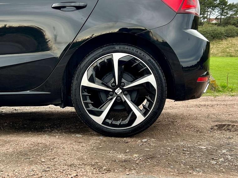 'Lights On' Reminder warning buzzer, 10" Digital cockpit, 9.2" touchscreen navigation system with type C USB socket, Voice control and DAB/AM/FM radio, Auto start and stop system, Bluetooth audio streaming with handsfree system, Digital clock, E-call, Full link smartphone integration with mirror link, wireless apple carplay, Google android auto + USB Type C cable for apple and android devices, Lane assist, Low fuel warning light, Outside temperature gauge, Power Steering, Rear parking sensor, Seat connect plus with safety, service, remote and online, SEAT logo boot release, Speed limiter, Traffic sign recognition, Trip computer, Sports suspension, 6 speakers, Auxiliary input socket, Radio/MP3 player, SD card slot, Steering wheel mounted controls, Anti theft roof antenna, Auto dimming rear view mirror, Automatic rain sensing wipers, Black door mirror caps, Body colour bumpers, Body colour door handles, Brilliant black window surrounds, Dark tinted rear windows, Electric adjustable/heated/folding door mirrors, Electric front windows, Electric headlight adjustment, Electric rear windows, Front/rear fog lights, FULL LED automatic headlights with dynamic headlight range control, coming and leaving home, LED daytime running lights, LED 3rd brake light, LED tail lights, Rear roof spoiler with FR twin exhausts, Rear side wing doors, Rear wiper, 3 seat bench in 2nd row, 60/40 split folding rear seat, Ambient interior lighting, Chrome detailing and black headlining, Comfort seats, Dual zone climate control with combination filter, Front courtesy lights, Front cupholders x 2, Front reading lights, Gear shift indicator, Glovebox, Height adjustable front and rear headrests (five), Height adjustable front seats, Height/reach adjust steering wheel, Illuminated air vent surrounds, Illuminated boot, Instrument lighting with brightness control, Isofix, Leather multifunction flat bottomed sports steering wheel, Microsuede cloth upholstery, Passenger sunvisor, Single front passenger seat, Storage pockets on back of front seats, Sunvisors with mirror and driver side card holder, Safety and driving pack (S) - Ibiza, 3 point seatbelts on all 3 rear seats, ABS, Active front headrests, Child locks on rear doors, Electronic stability control, Energy recovery system, Front driver and passenger side airbags with curtain airbag and front passenger airbag deactivation, Hill hold control, Multi-Collision braking, Seat belt reminder for front and rear seats, Tiredness recognition system, Tyre pressure monitoring system, Locking wheel bolts, Perimeter alarm and interior monitoring with backup horn and tow away protection, Remote central locking + deadlocks, 18" Performance machined alloy wheels in black and grey,