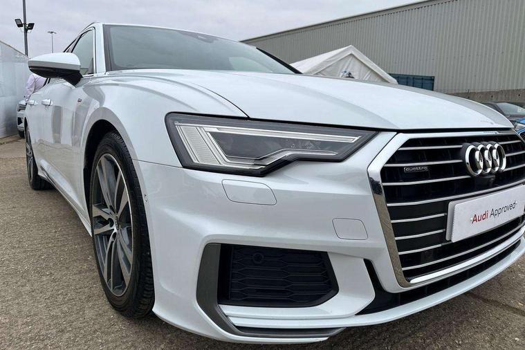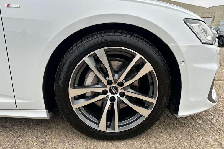 7" high resolution colour driver information display system, Audi connect safety and service (e-call), Audi drive select, Audi parking system plus - acoustic and visual park assist system for front and rear, Audi smartphone interface, Automatic start/stop system with coasting functionality, Bluetooth interface, Lane departure warning system, MMI navigation with MMI touch + twin touch screens 8.8" and 8.6" with haptic and acoustic feedback, Power operated tailgate, Progressive steering, Rear view camera, Service interval indicator, Voice control system, 12V Mild hybrid, Quattro on demand, Sports suspension, Audi music interface, Audi sound system, Auxiliary input socket, DAB Digital radio, USB connection, Aluminium roof rails, Body coloured door mirrors, Electric front/rear windows, Frameless auto dimming interior rear view mirror, Headlight washers, Heat insulating darkened glass in side and rear windows, Heat insulating glass in windshield, LED rear lights, LED signature front daytime running light, Matrix LED headlights with dynamic rear indicators, Matt black side air intake grille with inlay in matt aluminium, Privacy glass, Radiator grille in titanium black matt, single frame in chrome and horizontal struts in matt aluminium silver, Rain and light sensors, S line air inlet design with inlay in matt aluminium, S Line badge on front fender, S Line front and rear bumpers, S line rear diffuser and grille in matt black with matt aluminium tailpipes, S Line roof edge spoiler, S Line side skirts, Signature rear LED light design, 2 zone deluxe electronic climate control, 4 way electric lumbar support for driver and front passenger, 40/20/40 split folding 3 rear seat bench in 3 parts with rear centre armrest, Black cloth headlining, Electrically adjustable front seats with driver memory, Front centre armrest, Front head restraints, Heated front seats, Height/reach adjust steering wheel, Illuminated door sill trims with S logo, Illuminated sun visors with vanity mirrors, ISOFIX child seat mounting and Top Tether with front passenger airbag deactivation, Leather gear knob, Luggage compartment system, Rear headrests, S line front and rear floor mats with contrast stitching, Stainless steel pedals and foot rest, Tool kit and car jack, LED Interior Ambient Lighting Pack - A6, Non smoking pack - A6, 3 point seatbelts on all seats, Airbags - Front side, front and rear including head, Audi pre-sense front, Black seatbelts, EBD - Electronic brakeforce distribution, Electromechanical parking brake, Electronic Stability Control (ESC) including ABS, ASR and EDL, Extended pedestrian protection measures, Seatbelt monitoring, Tyre pressure warning light, Warning triangle and first aid kit, Anti theft alarm with tow away protection, Anti-theft wheel bolts and wheel loosening detection, Immobiliser, Keyless Go, Remote central locking, Matt brushed aluminium dark inlays,