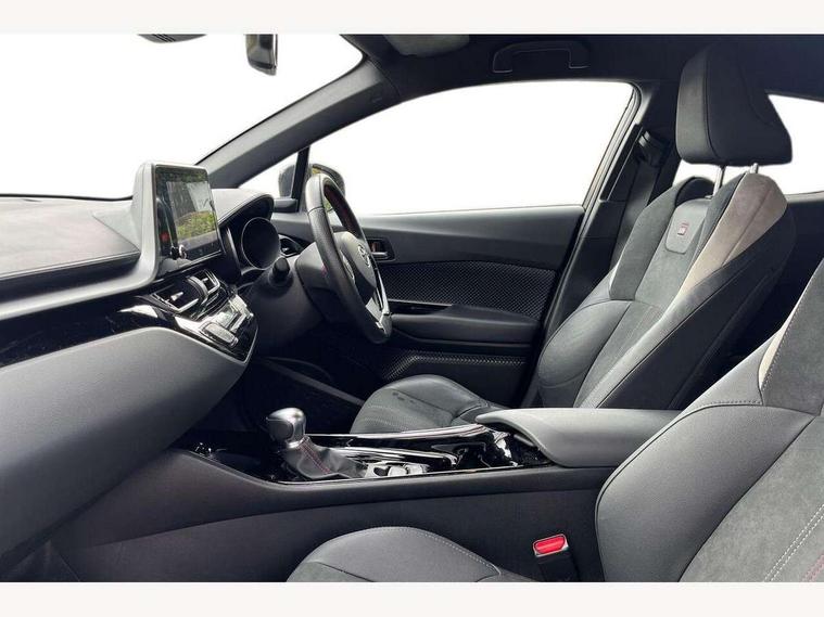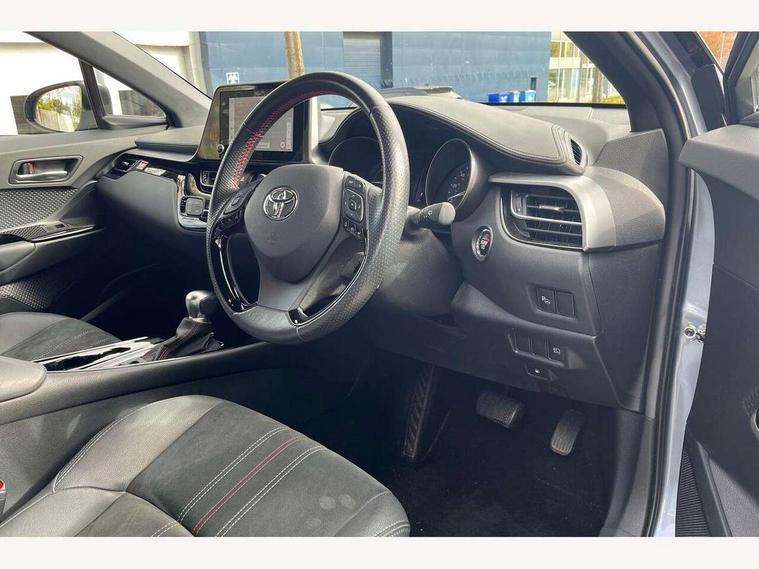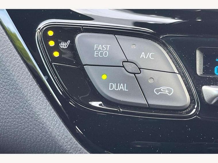4.2" coloured TFT screen for multi-information display, Adaptive cruise control, Bluetooth connectivity, E-call, Electric power steering, Hybrid system indicator, Lane departure alert with steering control, Remote boot door release in cabin, Remote boot door release in key, Reversing camera, Road sign assist - RSA, Simple Intelligent parking assist, Touch 2 Go navigation system, Trip computer, Voice recognition, Vehicle Stability Control (VSC), 6 speakers, AM/FM radio, DAB Radio (Digital Audio Broadcasting), Toyota touch 2 multimedia system with 8" display, USB connector, Wi-fi connectivity, Adaptive front light system, Adaptive LED Headlights, Anti-jam protection on power windows, Auto high beam, Auto up and down function on all power windows, Automatic headlight levelling, Automatic headlights, Automatic headlights cut-off, Black and body coloured rear bumper, Black upper front grille, Body colour door handles, Body colour door mirrors, Body coloured front bumper, Boot door release with push button, Chrome front lower bumper, Electric heated door mirrors, Follow me home headlights, Front and rear power windows, Front spoiler lip in black, Honeycomb lower front grille, LED daytime running lights, LED fog lights, LED front light guide, LED High mounted stop light, LED rear brake lights, LED rear combination lights, Noise reduction layer on front windows and windscreen, Power adjustable door mirrors, Privacy glass, Rain sensor, Rear sequential indicators, Rear side wing doors, Rear spoiler, Rear tailgate, Rear window defogger, Rear window wiper, Shark fin antenna, UV-filter on driver and passenger windows, UV-filter on rear windows, 12v power outlet - front, 3 rear headrests, 3 seat bench in 2nd row, 3 spoke perforated leather steering wheel, 60/40 split folding rear seat, Adjustable rear headrests, Adjustable speed limiter switch on steering wheel, Assist grips front and centre pillar, Audio and telephone switches on steering wheel, Black front door assist grips, Blue ambient lighting on front cup holders, Blue ambient lighting on front doors, Boot light, Chrome interior door handles, Driver and front passenger personal light, Driver and front passenger Whiplash Injury Lessening seats, Driver and passenger seatback pockets, Dual zone automatic air conditioning, Fabric upholstery, Floor mats, Front cupholders, Front head restraints, Front sports seats, Glovebox with internal light, Hard tonneau cover, Heated driver and front passenger seats, Hooks for luggage holding net, Humidifying Nanoe air purifier, Illuminated entry system, Isofix attachments on outer rear seats, Leather gearshift, Light on driver sun visor, Light on passenger sun visor, Manual telescopic steering wheel, Manual tilt steering wheel, Manually height adjustable driver seat, Manually height adjustable front passenger seat, Manually reclining driver seat, Manually reclining front passenger seat, Manually sliding driver seat, Manually sliding front passenger seat, Microphone on front personal light, Mirror on driver sun visor, Mirror on passenger sun visor, Multimedia switches on steering wheel, Pollen filter, Power adjustable lumbar support on driver seat, Shopping bag hooks, Single front passenger seat, Slow opening on lower glovebox, Voice recognition switch on steering wheel, Tech with parking sensor pack - C-HR, 16 Disk front wheel brake, 3x3 point rear seatbelts, ABS+EBD+Brake assist, Electronic parking brake, Front and rear seatbelt reminder, Front passenger airbag on/off switch, Hill start assist control (HAC), Pre collision system with pedestrian detection, Pre-tensioners and force limiters, Rear door child safety locks, SRS Airbags - Driver + Front passenger, front side, front and rear curtain and driver's knee airbags, Toyota safety sense, Tyre pressure monitoring system, Acoustic vehicle alert system (AVAS), Glass-breaking alarm sensors, Immobiliser, Intrusion alarm, Intrusion sensor, Motion sensor alarm, Power passenger window lock, Remote central locking, Black lower dashboard, Black upper dashboard, Piano black console, Silver deco line on upper dashboard, 19" Black machined alloy wheels, Tyre repair kit,