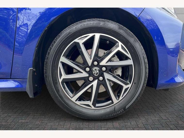 Adaptive cruise control, Adjustable speed limit with speed warning, Bluetooth connectivity, Colour binocular inspired displays with digital speedometer, E-call, Electric power steering, Hybrid energy display, Multi information display switches on steering wheel, Reversing camera, Smartphone integration with Apple CarPlay and Android auto, Tailgate, Voice recognition, Vehicle Stability Control (VSC), 4 speakers, 8" Multimedia display touch screen, USB connection, Acoustic windscreen glass, Auto windscreen wipers, Automatic headlights, Body coloured door mirrors, Electric adjustable heated door mirrors, Follow me home headlights, Front auto power windows with anti jam protection, Full LED rear lights, LED daytime running lights, LED front fog lights, LED front light guide, LED Headlights, LED High mounted stop lamp, LED Indicators, LED rear light guide, Manual headlight levelling, Painted chequered front grille, Rain sensor, Rear auto power windows with anti jam protection, Rear privacy glass, Rear side wing doors, Rear spoiler, Rear wiper, Shark fin antenna, Turning signal integrated indicators in door mirrors, Variable front intermittent wipers, 3 adjustable rear headrests, 3 spoke leather steering wheel, 60/40 split folding rear seat, Active headrests, Adjustable boot height, Auto air conditioning, Coat hooks in rear grab handles, Cup holders (2 front & door), Data Communication Module (DCM) connected services, Fabric upholstery, Front armrest, Glovebox, Grey roof lining, Height adjustable driver's seat, Isofix seat fixing, Leather gearshift, Pollen filter, Shopping bag hooks, Single front passenger seat, Tilt/telescopic steering column, 3 point seatbelts on all rear seats, ABS+EBD+Brake assist, Electronic parking brake, Emergency brake light system (EBS), Front passenger airbag on/off switch, Front seatbelt reminder, Hill start assist control (HAC), Rear child proof door locks, Rear seat belt reminder, Supplemental Restraint System (SRS) 8 airbags: Driver & passenger's airbags, dual side curtain airbags, side impact airbags, front centre airbag, Toyota Safety Sense 2, Precollison + Night time Pedestrian & Cyclist Detection, Lane Trace Assist, Auto High Beam, Intelligent ACC & Road Sign Assist, Tyre pressure warning system, 2x Master key, Alarm/immobiliser, Remote powered central double locking doors, Soft touch instrument panel, Space saver spare wheel,