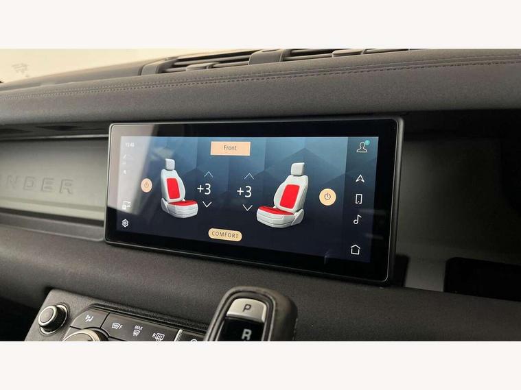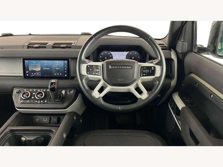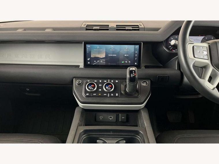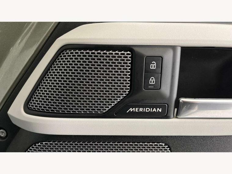 360 degree parking aid, 3D Surround Camera with 360 View, 180 Rear View, Front Traffic Detection, Forward Vehicle Guidance, Tow Hitch Assist and clear sight Ground View, Android Auto, Apple CarPlay, Assisted tailgate with soft close, Blind spot assist, Bluetooth system, Brake pad wear indicator, Clear exit monitor, Connected navigation pro, Driver condition monitor, Electric power assisted steering (EPAS), Lane keep assist, Push button start, Rear traffic monitor, Traffic sign recognition with adaptive speed limiter, Trip computer, Wade Sensing, 8 speed automatic transmission, All wheel drive system, Twin speed transfer box, DAB Radio (Digital Audio Broadcasting), Meridian 400w sound audio system with 11 speakers and subwoofer, Pivi pro connected, Automatic headlight levelling, Automatic headlights, Centre high mounted stop light, Electric heated/power fold door mirrors with approach lights and auto dimming driver side, Electric windows with one touch open/close and anti-trap, Follow me home lighting, Front fog lights, Heated rear window with timer, Heated windscreen, LED tail lights, Panoramic rear side glass, Privacy glass, Puddle lights, Rain sensing windscreen wipers, Rear fog lights, Rear wiper, Side hinged tailgate, Trailer stability assist, X-Dynamic badge, 12V power socket in loadspace, 3 seat bench in 2nd row, Alpine lights, Durable rubber cabin flooring, Durable rubber loadspace flooring, Footwell lights, Loadspace cover, Loadspace Hook, Multifunction steering wheel, Overhead stowage for sunglasses, Premium cabin lighting, Rear headrests, Rear ISOFIX, Rear reading lights, Single front passenger seat, Standard seat configuration, Storage glovebox, Sunvisors with illuminated vanity mirrors, Online pack with data plan - Defender, 5 x 3 point seatbelts, ABS, Brake hold function, Cornering brake control (CBC), Customer configurable autolock, DSC - Dynamic Stability Control, EBD - Electronic brakeforce distribution, Electric parking brake (EPB), Emergency brake assist, Emergency braking, ESP + traction control, Front airbags with passenger seat occupant detector, HDC - Hill descent control, Hill launch assist, Low traction launch, Remote for (e-Call, Optimised assistance call, InControl app, Climate, beep and flash and door), RSC - Roll stability control, Seat belt reminder, TPMS (Tyre pressure monitoring system), Alarm, Immobiliser, Intrusion sensor, Keyless entry, Locking wheel nuts,