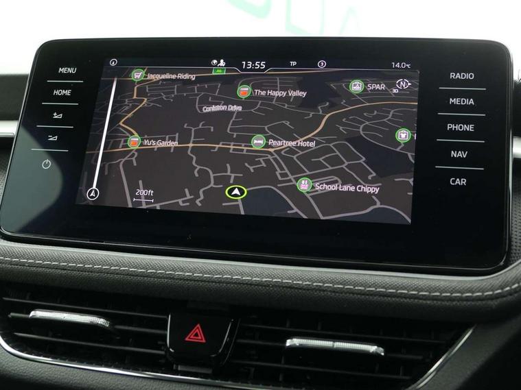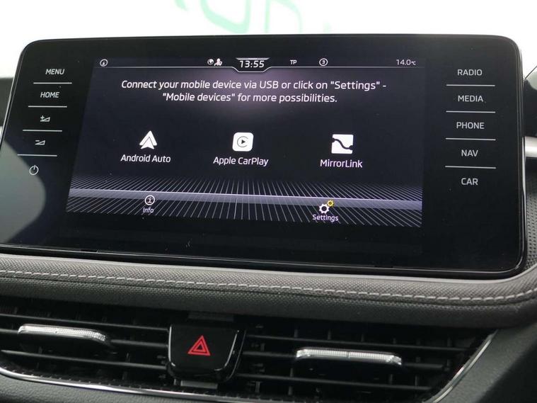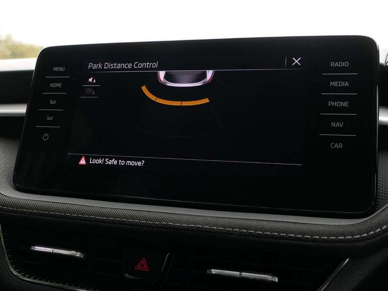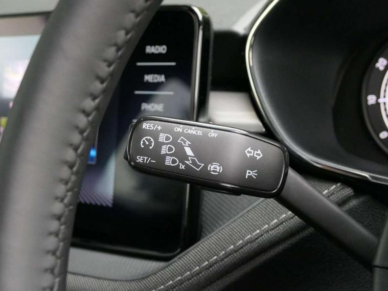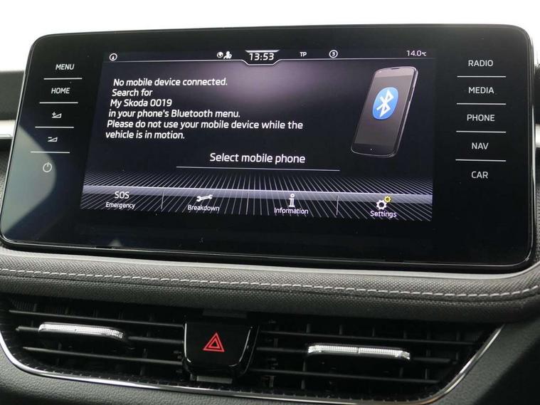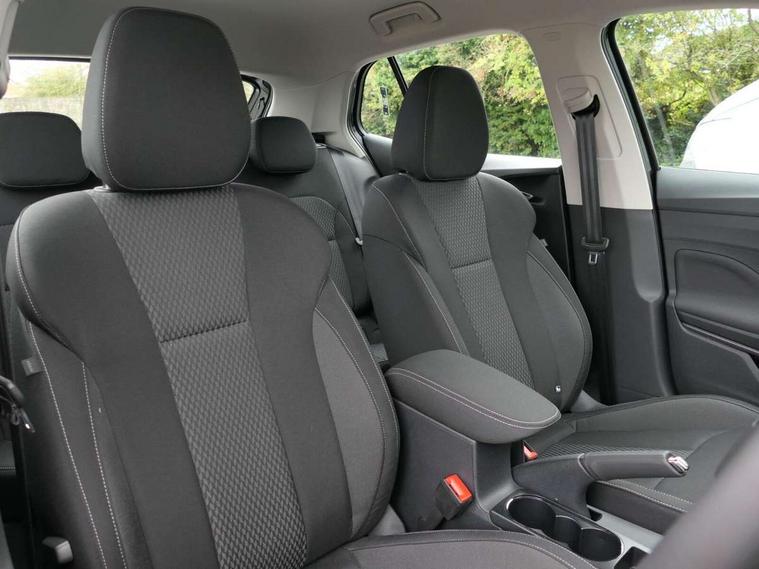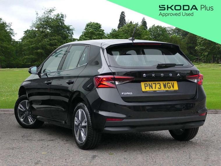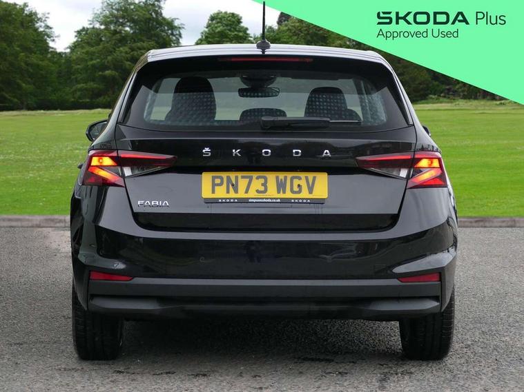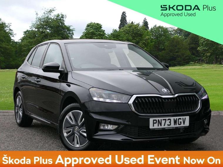 Bluetooth connection, Driver alert system - DAS, Electromechanical power steering, Exterior temperature gauge, Service interval indicator, 2x USB-C in the front (for data transmission and charging), 6 Speakers (4 in front and 2 in rear), Auxiliary socket for external MP3 player, DAB digital radio reception, Web radio, Auto dimming rear view mirror, Body colour door mirrors, Body coloured bumpers, Chrome window surround, Door mirror integrated indicators, Electrically adjustable and heated door mirrors, Front and rear electric windows, Front window wiper intermittent control, Headlight range control - Automatic, Ice scraper in fuel cap, LED daytime running lights with coming and leaving home feature, Rear LED fog light, Rear side wing doors, Rear window wiper with washing nozzles, Roof mounted spoiler, SKODA tailgate lettering in chrome, Third brake light, 3 rear headrests, Backrest split and folding, Central console with fixed cup holder and storage box, Chrome handbrake release button, Comfort seats, Fabric upholstery, Front centre armrest, Gearshift knob/handle in leather, Hand brake lever handle in leather, Height adjustable front headrests, Height adjustable front seats, Height adjustable steering wheel, ISOFIX and TopTether anchorage points to the outer rear seats, ISOFIX and TopTether on the front passenger seat, Luggage compartment lighting, Manually adjustable lumbar support in front seats, Pollen filter, Rear seat bench unsplit, Removable cup holder, Single front passenger seat, Storm grey headlining, Sun visors with mirror and airbag label on passenger side, Textile floor mats, Ticket holder, Umbrella in drivers door, Ambient lighting pack 2 - Fabia Hatchback, 3-point height adjustable front seats belts with pretensioner and force limiter, Automatic warning lights in case of crash, Driver and passengers airbag with switch off function, e-Call+, ESC including ABS, MSR, ASR, EDS, HBA and XDS, Front and rear seat belt warning, FRONT ASSIST (AEB City and AEB Inter Urban), Front side airbags, Head airbags, One tone horn, Pedestrian protection, Three rear 3-points safety seat belts with pretensioner and force limiter including stop function for outer rear seat belts, Tyre pressure monitoring system, Anti-theft alarm system including immobiliser, interior monitoring, backup horn, and towing protection, Chrome edged air vents, Satin black door and side trim panel in front, Anti-theft wheel bolts protection, Super-low rolling resistance tyres,