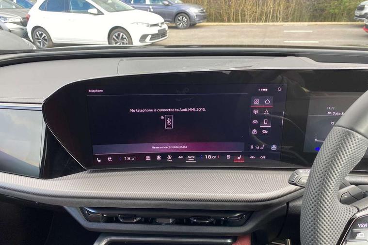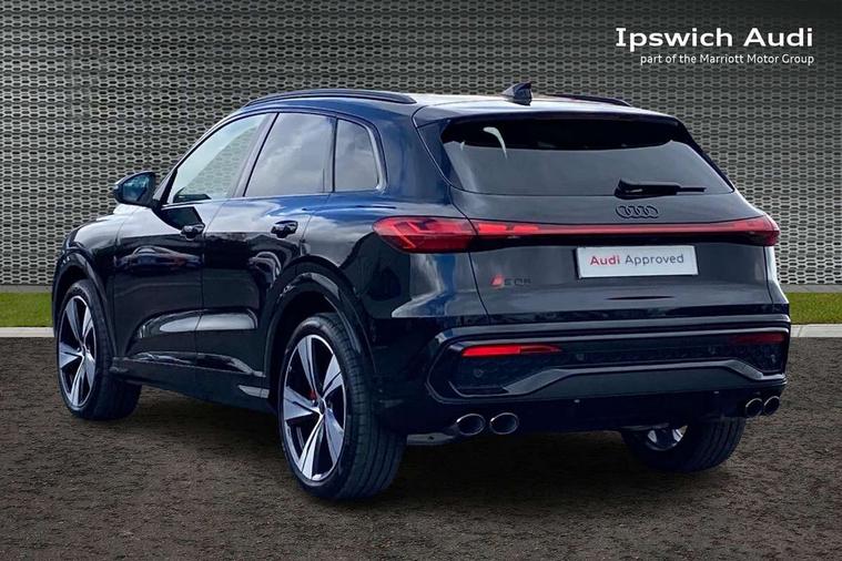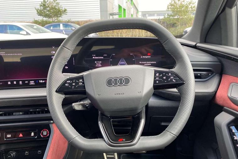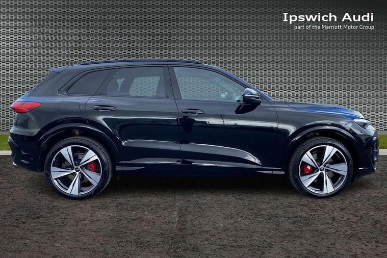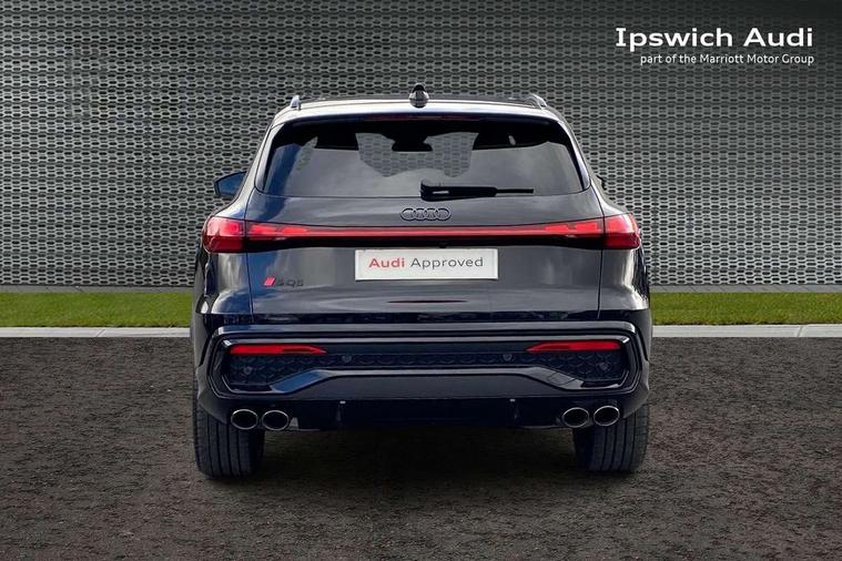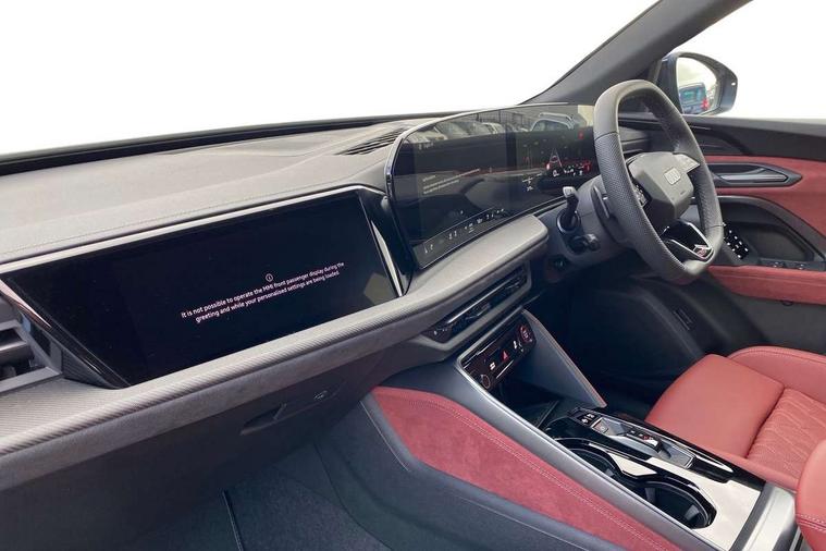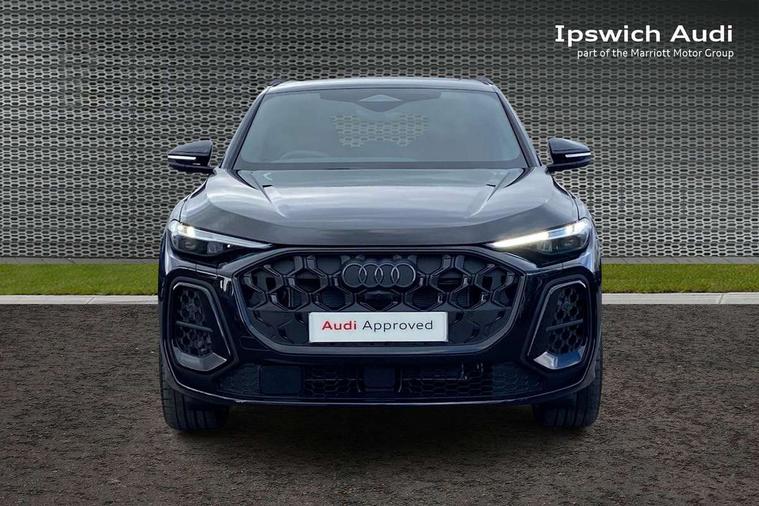Adaptive cruise assist plus with steering intervention, Advanced driver attention alert, Audi application store, Audi connect emergency call and service, Audi digital key, Audi drive select, Audi smartphone interface, Audi virtual cockpit plus with 11.9" OLED colour display, Camera based traffic sign recognition, Fatigue monitor, Front cross traffic intersection assist, Garage door opener, Lane change assistant with exit warning system, rear cross traffic alert and rear turn assist, Lane departure warning with emergency assist, MMI 10.9" front passenger touch display, MMI navigation plus with high resolution 14.5" OLED touchscreen colour display, Park assist plus, Parking system plus with 360 display, PAS, Reversing camera, Swerve assist and turn assist, Top view camera, Traffic sign based speed limiter, S adaptive air suspension, 2 USB-C ports in both the front and rear, DAB Digital radio, Smartphone compartment with wireless charging, Acoustic glass for front door windows, Active digital light signatures - Six additional combinations of active daytime running light signature, Auto dimming rear view mirror, Black door mirrors, Black roof rails, Coming/leaving home lighting function, Contrast bumpers in mythos black metallic paint finish, Digital OLED tail lights including communication light, Electrically adjustable heated and folding + automatically dimming exterior mirrors, Entry LED with red and white rhombus S logo projection, Exhaust tailpipes in dark chrome, Front and rear electric windows, Front door sill trims with aluminium inlays, illuminated with 'S' logo, Headlight cleaning system, Heated rear window, High beam assist, High gloss window surrounds, Inlay and front air inlets in matt anthracite chrome, Logo projection light in exterior mirrors, Matrix LED headlights, Memory function for door mirrors, Privacy glass, Projection light for rear window, Radiator grille in phantom black, Rear and side windows with heat insulating glass, Rear honeycombe grille in matt black with inlay in matt anthracite chrome, Rear side wing doors, Rear wash/wipe, Red S rhombus badging with 'S' lettering on rear, S exterior styling, Towbar preparation, Windscreen with acoustic glazing, 3 rear head restraints, 3 seat bench in 2nd row, 3 spoke leather steering wheel with multi-function buttons with touch control, flattened on top and bottom, with S badging and contrast stitching, 40:20:40 split folding rear seat bench with centre armrest and cup holders, Comfort centre armrest, Deluxe 3 zone electronic climate control, Electric steering wheel adjustment, Electrically adjustable front seats with memory function for driver's side, Front and rear floor mats, Front seat ventilation, Front sport seats with integrated head reastrains, Headlining in black cloth, Heated front seats, Heated outer rear seats, Heated steering wheel, i-Size child seat mounting on the front passenger side and outer rear seats, i-Size and top tether on the outer rear seats, Interior trim in aluminium look, Luggage compartment lid, electrically opening and closing, Perforated fine nappa leather with diamond stitching incl. ventilation and massage function for front seats, Pneumatically adjustable lumbar support with massage function for front seats, Single front passenger seat, Softwrap in Dinamica, Stainless steel pedals and footrest, Steering wheel grips in perforated leather and shift paddles, Ambient lighting package plus - Q5, Black styling package plus - Q5, Sound and Vision pack - Q5, Storage and luggage compartment pack - Q5, Vanadium pack - Q5, 3x3 point rear seatbelts, ABS, Acoustic vehicle alerting system, Convenience key with safelock, Driver and front passenger airbag with passenger airbag deactivation, Electric child safety locks, First aid kit with warning triangle and high visibility vests, Front emergency brake assist, Front side airbags with head airbag system and front interaction airbag, Hill hold assist, Occupant detection in rear seat area, Proactive passenger protection system for front, sides and rear, Red brake calipers, Side airbags in front and rear with head airbag system and front interaction airbag, Tyre pressure loss indicator, Anti theft alarm, Anti-theft wheel bolts, Remote control key with SAFELOCK and keyless go, Black dashboard with contrast stitching, Carbon micro twill structure inlay, Steel grey seat stitching, Upper and lower interior elements in dinamica microfiber, 21" 5 arm slit black metallic, gloss turned finish Audi Sport alloy wheels, Tyre repair kit,