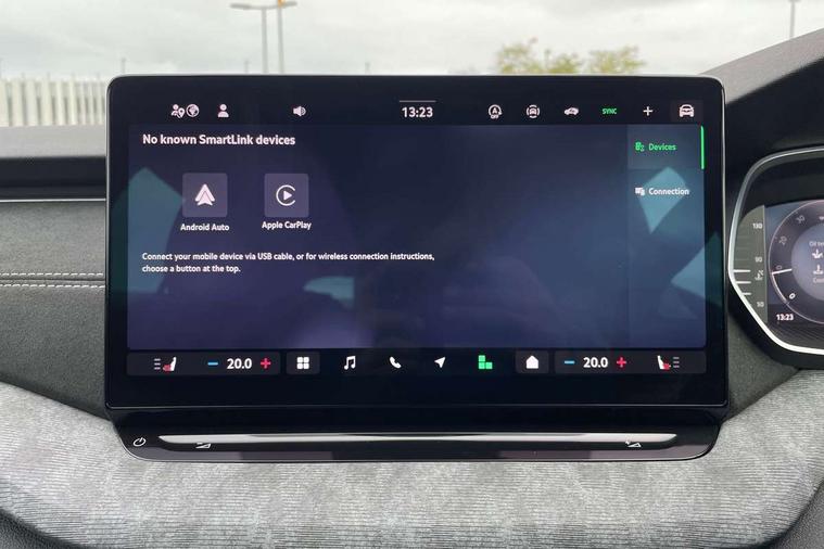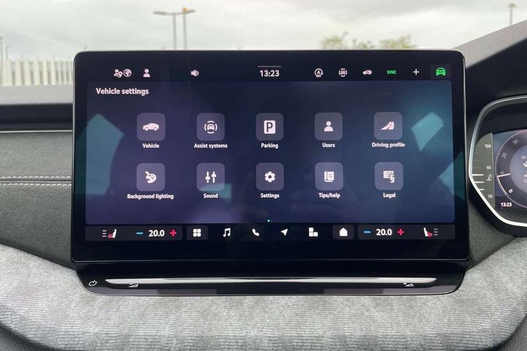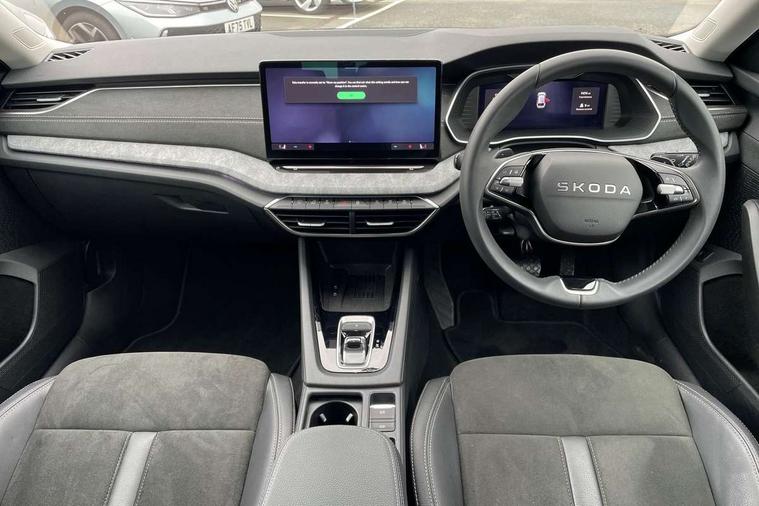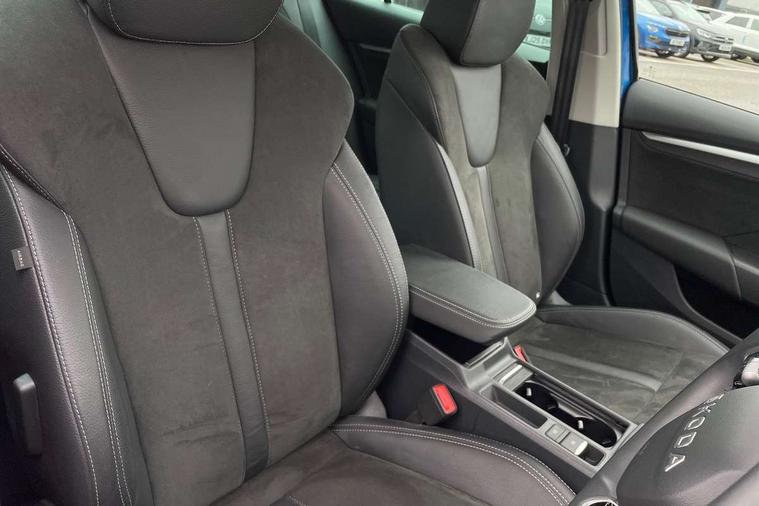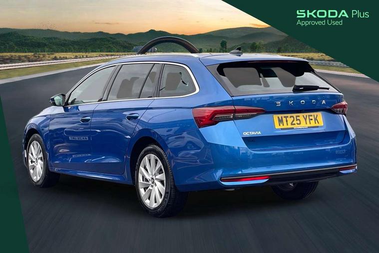 1x USB Typc C port in rear view mirror, 4x USB Type C ports - 2x in front centre console and 2x in rear (45W), Drive mode selection, Driver fatigue sensor, eCall emergency system, Electro-mechanical power steering, Front assist system, Traffic jam assist, Traffic sign recognition, Turn Assist, Virtual Cockpit - 10.25" digital display, Voice control system, Wireless charging (15W) with cooling function, Wireless SmartLink for Apple CarPlay and Android Auto, 13" touchscreen display with navigation, DAB Digital radio, Aero front windscreen wipers with intermittent function, Auto dimming rear view mirror, Body colour bumpers, Body colour door mirrors and handles, Chrome grille surround, Chrome roof rails, Chrome strip in lower front bumper, Chrome window surrounds, Electric front and rear windows, Heated rear windscreen, High level third brake light, Ice scraper in fuel cap, LED daytime running lights, LED Headlights, Logo projection in front doors, Rain and light sensors, Rear fog light on one side, Rear privacy glass, Rear side wing doors, Rear spoiler, Rear window wiper, 12 volt socket in boot, 3 rear headrests, 3 seat bench in 2nd row, 4 foldable roof handles, Front head restraints, Heated front seats, Illuminated glovebox, Interior door handles in dark chrome, Jumbo Box storage, Luggage compartment lighting x2 lights, Mechanical rear seat release from boot, Single front passenger seat, Steering wheel in black leather with black stitching, Storage compartments in left and right of boot, Sun visors with mirrors, Sunglasses storage, Ticket holder, Umbrella in door panel, Unsplit rear bench seat, split folding backrest with centre armrest with cupholder, Comfort package - Octavia Estate, Simply clever package premium - Octavia, 3x3 point rear seat belts, Alarm with interior monitoring, tilt sensor and back up horn, Curtain airbags and front side airbags, Driver and front passenger airbags, Drivers knee airbag, Electronic parking brake, ESC including ABS, EBV, MSR, ASR, EDS, HBA, DSR, Front central airbag, Hill hold assist, ISOFIX on front passenger seat and outer rear seats, Passenger airbag deactivate switch, Three point seat belts in front and rear, Two tone horn, Tyre pressure monitor, Visual and acoustic seat belt reminder, Warning reflectors in front door, Anti-theft wheel bolts, Keyless start/stop, Remote central locking, Chrome air vent surrounds,