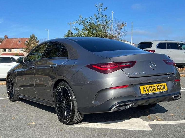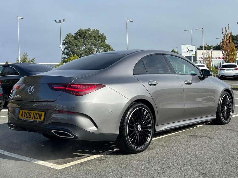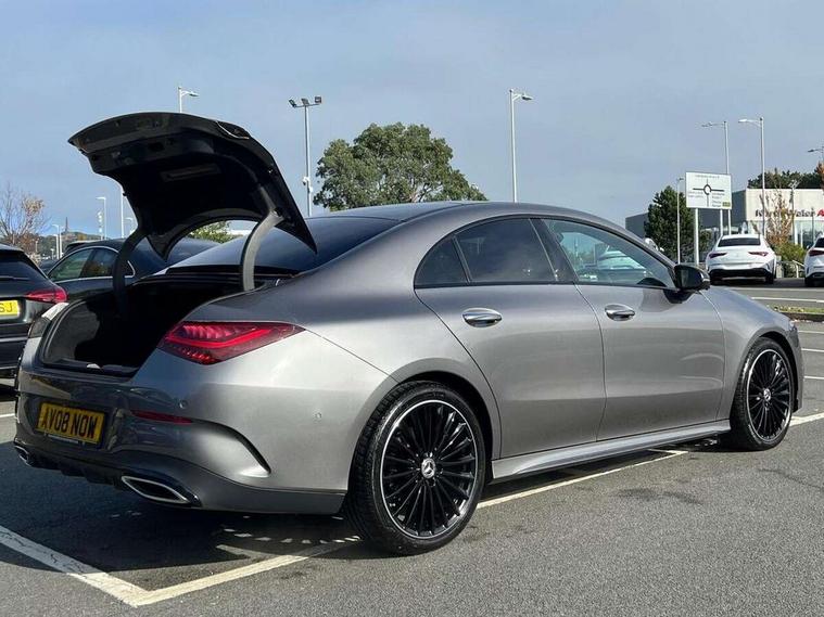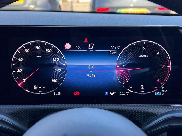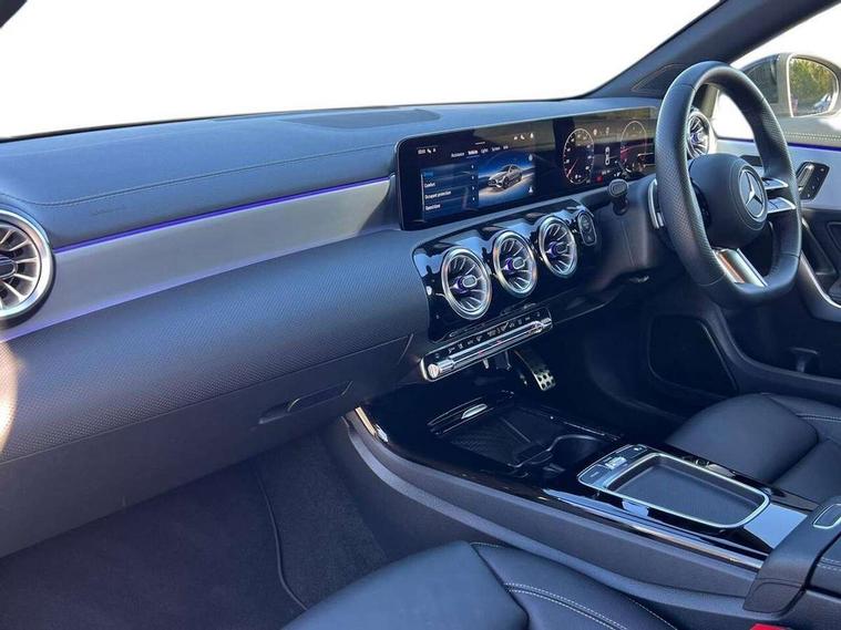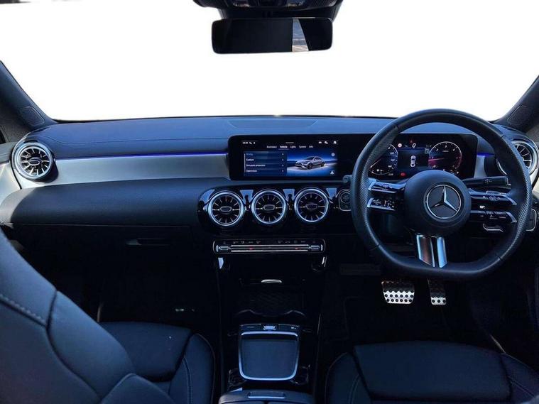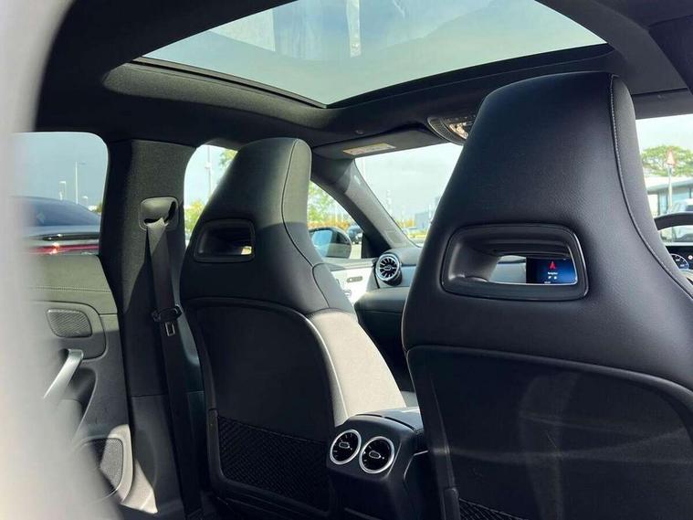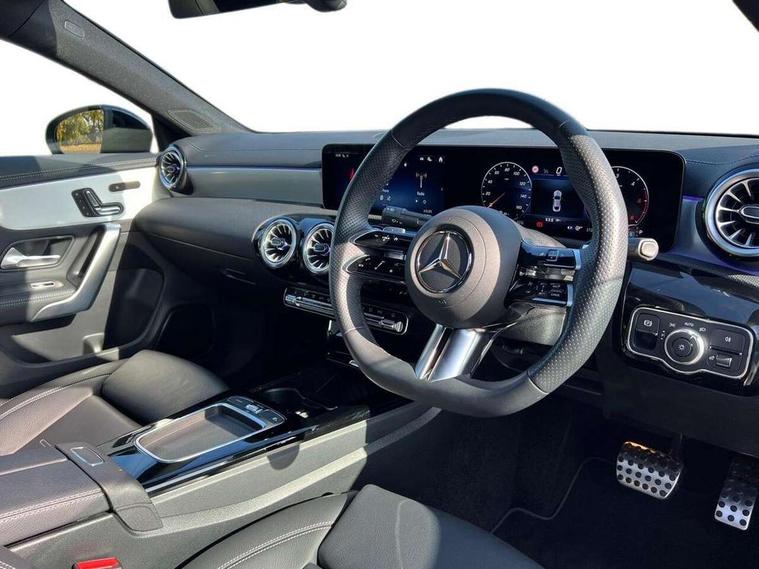 10.25 inch Instrument display with digital cockpit, 10.25 inch touchscreen central media display, Active lane keeping assist, Attention assist - Monitors steering behaviour and long journey fatigue, Bluetooth connection, Car wash mode, Cruise control with limiter, Direct steer system, DYNAMIC SELECT with a choice of driving modes (ECO, Comfort, Sport and Individual), ECO start/stop function, Fluid level warning indicator for fuel, oil, coolant and washer fluid, Hard-disk navigation, Hey Mercedes Voice activation, Lamp failure indicator, MBUX augmented reality for navigation, Mercedes me connect including emergency call system, accident recovery, breakdown and maintenance management, Mercedes me remote services, Outside temperature gauge, Owners manual in English, Pre-installation of private car share, Radio aerial integrated into front and rear windshields, Service indicator (ASSYST), Smartphone integration with Apple CarPlay and Android auto, Traffic sign assist, Trip computer in multifunction display with current consumption indicator, Wireless charging in the front centre console, Comfort suspension with ride height lowering, Rear axle multi-link, DAB digital radio tuner, MBUX multimedia system, Mercedes Benz advanced sound system (225 W) with 10 speakers, 1 central speaker, speakers on doors, a tweeter on door, one sub woofer + boost amplifier, Pre installation for Mercedes Benz Link, Adaptive brake lights, AMG body styling with AMG front apron and rear apron and visible exhaust tailpipe in chrome trim elements, Body colour door handles (Chrome insert with Keyless entry), Electric panoramic sunroof with automatic tilt and convenience closing fuinctions, rain sensor auto closing and electronic roller sunblind, Electric windows, Electrically adjustable and heated door mirrors with integrated LED indicators, Exhaust system with 2 Visible tailpipe trim elements and rear apron with trim in chrome, Hand free access, Headlamp assist automatic headlamp activation, Heated glass rear windscreen + timer control, High level LED third brake light, Integrated LED daytime running lights, Interior mirror with black reading lamps and frameless, LED tail lamp, Multibeam LED headlamps with adaptive highbeam assist plus, Privacy glass with dark tinting on rear side windows and rear window, Radiator grille with Mercedes-Benz pattern in chrome and central Mercedes star, single louvre in high-gloss black with chrome inserts, Rain sensing windscreen wipers with two sensitivity settings, Rear boot, Rear fog lamp, Rear side wing doors, Variable front intermittent wipers, 3 seat bench in 2nd row, 3 twin spoke flattened multifunction steering wheel in nappa leather - horizontal twin spoke in high gloss black, vertical twin spoke in silver chrome, 40:20:40 split folding rear seat backrests, Air conditioning - Two zone thermotronic luxury automatic climate control with display, Air vents with surround in silver chrome, Automatic child seat recognition sensor, Black roof lining, Brushed stainless steel sports pedals with rubber studs, Electrically adjustable front memory seats including 4 way lumbar support, Floor mats with stitched AMG lettering, Fluorescent jacket, Front centre armrest with stowage, Galvanished gear shift paddles in silver chrome, Heated front seats, Illuminated front door sills with Mercedes Benz lettering and changeable cover, Interior lighting - 64 colour Ambient lighting, Luggage net on driver/front passenger seat backrest, Manually height and reach adjustable steering column, Rear armrest with two integral cup holders for drinks, Rear head restraints, Single front passenger seat, Sport seats with fixed head restraints, Stowage compartment in centre console with retractable cover, Sunvisors with illuminated vanity mirrors, Twin front cupholders, Two outer rear seat isofix and top tether child seat fixing points, Keyless go comfort pack - CLA, Light and sight pack - CLA, Mirror pack - CLA, Night package - CLA, Parking pack with 360 degree camera - CLA, Seat comfort pack - CLA, USB package plus - CLA, Active bonnet pedestrain safety measure which detects an impact and raises bonnet by 65mm, Adaptive brake assist with hold function and hill start assist, Anti lock braking system (ABS) with brake assist, Black seat belts, Bonnet with power domes, Brake calipers with Mercedes-Benz lettering, Brake pad wear warning indicator, Childproof locks manually operated for rear doors and electrically operated for rear power windows, Crash responsive emergency lighting, Driver and front passenger head and sidebags, Driver and front passenger windowbags, Drivers knee airbag, Dual stage driver and front passenger airbags, Electric parking brake, Electronic stability programme with acceleration skid control, ESP curve dynamic assist, Exit warning, Front and rear seatbelt reminder, Front passenger seat occupancy sensor, Perforated front brake discs, Sports braking system, Three point rear seat belts, Tyre pressure monitoring system, Warning triangle and first aid kit, Alarm system with immobiliser and interior protection -Thatcham category 1, Guard 360 deg vehicle protection - tow away protection with visual, acoustic warning, interior monitoring, preinstallation for parking damage, Remote central locking and crash sensor with emergency opening function, Light aluminium with longitudinal grain interior trim, 19" AMG multi-spoke black painted light alloy wheels with high sheen rim finish, Summer tyres, Tirefit tyre sealant kit,