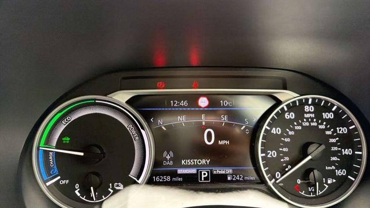 7" full colour TFT screen combimeter, Apple CarPlay and Google Android auto, Drive modes select (Eco, normal and sport), e-Pedal step, Emergency and breakdown call, EV mode selector, Front parking sensor, Intelligent lane intervention, Lane departure warning system, Nissan connect 8" touch screen entertainment system, Nissan connect nav with TomTom traffic, Nissan connect services and Wifi connection, Outside temperature sensor, Power Steering, Rear parking sensor, Traffic sign recognition, Trip computer, Voice recognition, Gasoline particulate filter, 6 speakers, Bluetooth system, USB, Aux-in and 12V socket, DAB Digital radio, Rear console USB port, Auto dimming interior rear view mirror, Auto headlights, Automatic hazard signal with emergency stop signal, Body colour bumpers, Body colour door handles, Electrically adjustable door mirrors with integrated indicators, Follow me home headlights, Front and rear electric window with one touch driver window, Heated and auto folding door mirrors, High beam assist, LED daytime running lights, LED headlamps, LED rear fog lamp, LED rear lamps, Rain sensor windscreen wipers, Rear privacy glass, Rear side wing doors, Rear wiper, Three blink turn signal, 3 height adjustable rear headrests, 3 seat bench in 2nd row, 60/40 split folding rear seat, Automatic climate control, Card holder on driver sunvisor, Cloth upholstery with black and metallic grey syntech leather inserts, Driver and passenger sliding and reclining seats, Driver side rear coat hanger, Driver/passenger sunvisors and vanity mirrors, Front and rear cabin lights, Front armrest, Front door pockets with bottle holders, Front head restraints, Front/rear passenger grab handles, Grey synthetic leather kneepad, Height adjustable driver's seat, Internal chrome door handles, Leather gearshift knob, Leather steering wheel, Luggage board, Luggage space lighting, Monoform sporty seats, Multifunction steering wheel, Rear door bottle holders, Single front passenger seat, Steering wheel mounted gearshift paddles, Telescopic steering wheel adjustment, Two cupholders in front centre console, Two rear isofix child seat anchorage points with top tether, Welcome light and console tray ambient lighting, ABS with EBD and brake assist, Active ride control, Active Trace Control, Driver and passenger airbags, Driver and passenger side airbags, Electric handbrake with auto hold function, Electronic Stability Programme (ESP), Front and rear curtain airbags, Height adjustable seatbelts, Hill start assist, Intelligent emergency braking with pedestrian and cyclist recognition, Rear door child safety locks, Seatbelt reminder for driver/front passenger and rear seats, Single tone horn, Three 3 point rear seatbelts, Traction control, Tyre pressure monitoring system, VDC Dynamic Vehicle Control, Ventilated rear brake discs, Alarm, Immobiliser, Intelligent key and start push button with walk away lock and approach unlock functions, Remote central locking,