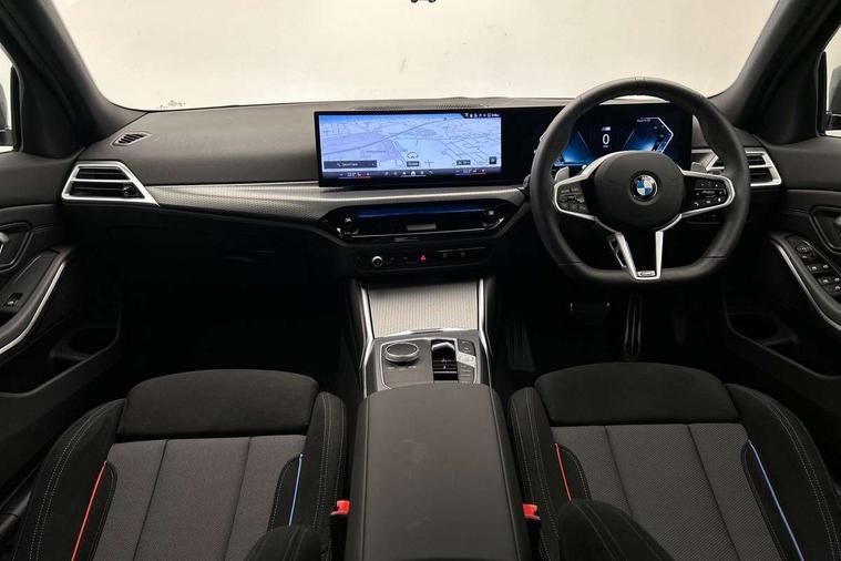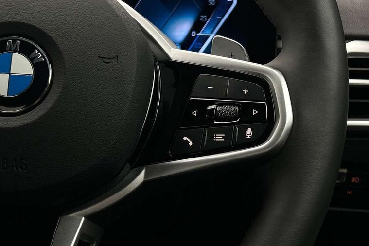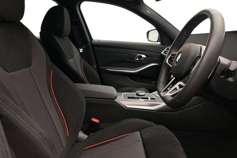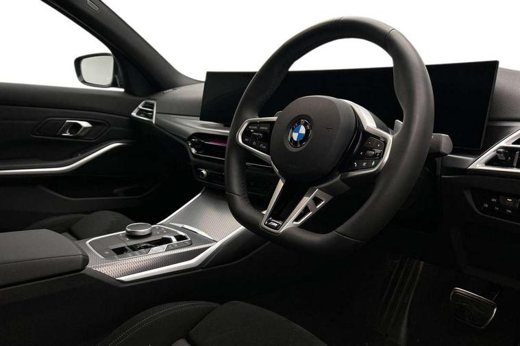 Active guard plus, Attentiveness assist, Automatic Start/stop button, Bluetooth Wi-Fi interface, BMW iDrive, BMW Teleservices, ConnectedDrive Services - last state call, Live cockpit plus with Navigation + 12.3" instrument display + 14.9" display, Intelligent voice assist, 2 USB, 4G LTE connect, Oil sensor for level and grade, Personal e-SIM, Shifting point display, Variable sport steering, Double joint spring strut front axle, Fuel tank breather system, Steptronic Sport automatic transmission with steering wheel mounted gearshift paddles launch control and xtreme drive lever control, DAB tuner, 3rd brake light, Auto dimming rear view mirror, Automatic headlight beam throw control with load dependent regulating reaction, dynamic compensation of braking dive and acceleration squat, Bi-LED Low and high beam headlights, BMW emblem, engine compartment lid and tailgate, Body colour roof fin, Door sill strips, Electric windows - front and rear, with open/close fingertip control, anti-trap facility and comfort closing, Fading support, Folding wing mirror with auto dimming, Follow me home headlight function, Front and rear bumper system with replaceable deformation elements, Front apron plastic in body colour, Fuel filler flap - right rear in body colour, Heat protection glazing on front windows and windscreen, Heated washer jets, High gloss chrome kidney frame with high gloss black kidney struts, LED daytime running lights, LED rear lights, LED turn indicator, Licence plate panel integrated into front bumper and tailgate, M high gloss shadow line exterior trim, Matt black B-pillar finsher, Matt black window recess cover, Model designation on right side of tailgate, One piece front bumper cover including towing eye cover in body colour, Rain sensor with automatic headlight activation, Rear boot, Rear side wing doors, Reversing lights, Side frame decorative moulding black matt, Trailer stabilisation logic, Visible exhaust tailpipe finisher, Welcome lights in interior and door handle area, 12V power socket in front storage compartment, 2 front cupholder in centre console with clamping elements and matt black inlay, 3 seat bench in 2nd row, 3 spoke M Sport multifunction flat bottom leather steering wheel, 3 zone automatic air conditioning, 40:20:40 split folding rear seat with loading system, Anthracite headlining, Armrest integrated in front and rear door trim + front centre console armrest, BMW ID, Cruise control operation in steering wheel, Driving experience mode switch, Folding rear centre armrest with 2 cupholders, Front and rear headrests, Front and rear velour floor mats, Front reading light, Heated front seats, Height adjustable mechanically and infinitely variable steering column, Illuminated armrest storage compartment, Illuminated glove compartment, Illuminated luggage compartment, Lashing eyelets in luggage compartment, Single front passenger seat, Sunvisors with illuminated vanity mirrors and ticket pocket, Toolkit located in luggage compartment, Connected pack professional - 3 Series Saloon/Touring, Interior and exterior mirror pack - 3 Series Touring/Saloon, M sport exterior styling pack - 3 Series Saloon/Touring, Parking assistant pack - 3 Series, 3x3 point rear seatbelts, BMW emergency call, Child locks on rear doors, Crash sensor activating of airbags, Unlocking doors, hazard warning lights, interior light, safety battery terminal, Drive-off assistant, Driver and front passenger with seat occupancy detection for driver's and passenger side, Driver and passenger side airbags, body protection at side and airbags deploy from seat backrests, Dry braking, Dynamic brake control, Dynamic stability control + (DSC+) - Anti-lock Braking System (ABS) with brake assist and cornering brake control + Automatic Stability Control (ASC), Dynamic Traction Control - DTC, Electric parking brake including automatic hold function and automatic release of the parking brake when driving off, Electronic differential lock control (EDLC), Front airbag deactivation, Front airbags for driver and front passenger, Head airbags in 1st and 2nd row, head protection at side, curtain airbags open from headliner above 1st and 2nd row, Plastic fuel tank, Side impact protection, Tyre pressure sensors, Ventilated front and rear disc brakes, Warning triangle and first aid kit, Alarm system, Centre lock switch, Closing system with central locking, Electronic vehicle immobiliser, Locking wheel bolts, Tyre repair kit,