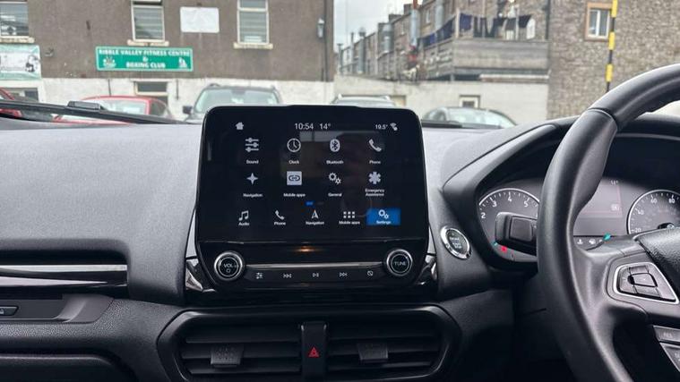 'Ford Power' starter button, Cruise control + speed limiter, Easy fuel capless refuelling system, PAS, Rear parking sensors and rear view camera, Trip computer, Voice control system, 'Quickclear' heated windscreen/heated washer jets, Auto dimming rear view mirror, Automatic headlights, Body colour door handles, Body coloured bumpers, Electric heated door mirrors, Front fog lights, Front grille with chrome trim surround, Headlight levelling control, LED daytime running lights, Rain sensor windscreen wipers, Rear wiper, Silver roof rails, 12V socket in front and rear, 60/40 split rear seats, Ambient interior lighting, Ambient light, Centre console with sliding front armrest, Cooled glovebox, Courtesy lights with map reading light, Driver's side glovebox, Driver/passenger sunvisors and lidded vanity mirrors, EATC - Electronic Auto Temperature control, Folding grab handles, Footwell ambient lighting, Front head restraints, Front seat back map pockets, Front/rear floor mats, Height adjustable drivers seat with lumbar support, Illuminated glovebox, Illuminated luggage compartment, Isofix system on outer rear seats, Leather gear knob and handbrake grip, Leather steering wheel with audio controls, Luggage compartment carpet, Overhead console with sunglasses holder, Part leather upholstery, Rake adjustable rear seats, Reach + rake adjustable steering column, Rear headrests, Steering wheel with chrome inserts, Storage drawers under front seats, Tie down hooks, Variable boot floor, 3x3 point rear seatbelts, ABS, Child locks on rear doors, Curtain airbags, Driver airbag, Drivers knee airbag, Electronic Stability Programme, Emergency brake assist, Front passenger airbag deactivation, Front side airbags, Hill launch assist, Passenger airbag, Seatbelt reminder for driver and front passenger, Traction control, Tyre pressure monitoring system, Immobiliser, MyKey system, Remote central locking, Thatcham 1 volume sensing alarm, Tyre repair kit,