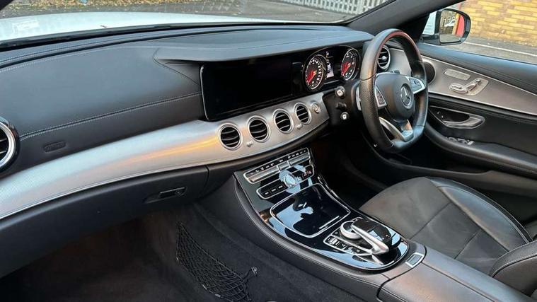 Active park assist with parktronic system, Analogue clock, Attention assist, Bluetooth interface for hands free telephone, Boot release from drivers seat, Brake wear warning light, DYNAMIC SELECT with a choice of driving modes (ECO, Comfort, Sport, Sport+ and Individual), Easy-pack tailgate - Powered opening/closing automatically, Mercedes connect me, Multi function trip computer, Park assist pilot with front and rear park assist, Remote boot release, Service indicator (ASSYST), Speed sensitive power steering, Diesel particulate filter, DAB Digital radio, Media interface, Steering wheel mounted audio controls, USB/aux input socket, Adaptive brake lights, Aerial integrated in rear window, AMG bodystyling, Body colour bumpers, Body colour door handles, Body colour door mirrors, Chrome roof rails, Electrically adjustable and heated door mirrors, LED Headlights, Polished aluminium upper window surround, Polished aluminium waistline, Radiator grille with integral star and 2 louvres in matt iridium silver with chrome trim, Rain sensor windscreen wipers, 3 spoke AMG steering wheel in Nappa leather, 40:20:40 split folding rear bench seat, Ambient lighting, AMG floormats, Artico man-made leather upper dash trim, Auto Mercedes-Benz child seat recognition sensor, Black roof lining, Chrome door pins, Folding shopping box, Front and rear door pockets, Front centre armrest with storage compartment, Front door sills with Mercedes Benz lettering, Heated front seats, Height/reach adjust steering wheel, Interior rear light/integral reading lights, Isofix rear child seat fastenings, Lockable/illuminated air conditioned glovebox, Multi function steering wheel, Sports pedals with stainless steel surfaces and rubber studs, Storage compartment with 12V socket in centre console, Sunvisors with illuminated vanity mirrors, Interior lighting pack - E Class, Keyless Go comfort pack - E Class, Memory pack - E Class, Mirror pack - E Class, 3x3 point rear seatbelts, Active bonnet, Active brake assist, Childproof rear door locks, Driver and passenger side/thorax airbags, Driver/front passenger airbag, Drivers knee airbag, Electronic parking brake, Hill hold assist, Hill start assist, Pre-Safe anticipatory safety system, Seat occupancy sensor, Seatbelt warning, Tyre pressure monitoring system, Warning triangle and first aid kit, Window airbags, Alarm system/interior protection/immobiliser, Chrome surround in electric key, Run flat tyres,