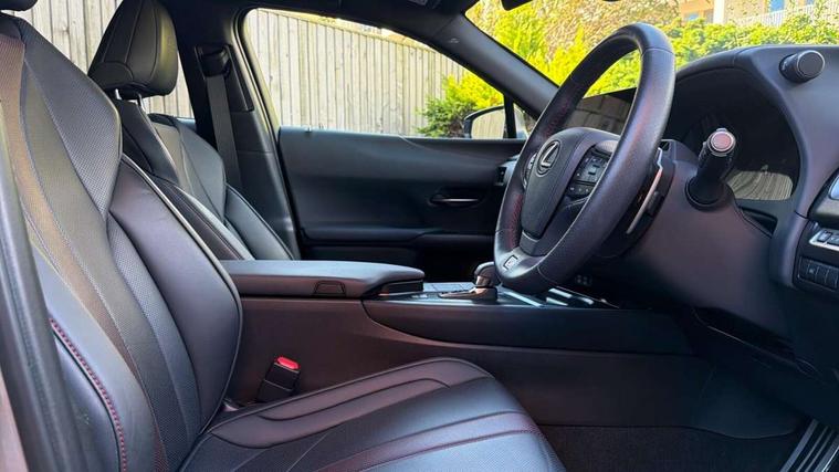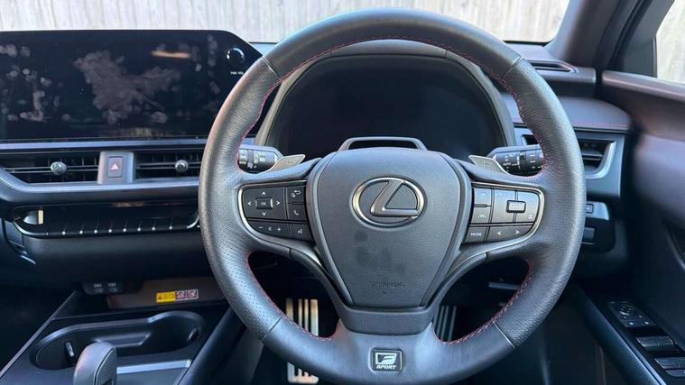 5 Driving modes EV/Normal/Eco/Sport/Sport+, Analogue clock with GPS function, Apple car play/Android Auto, Blind spot monitoring (BSM) with Rear cross traffic alert and auto brake (RCTAB), Bluetooth mobile connectivity, Driver monitoring system, E-call, Electric power steering (EPS) with speed sensitive features, Emergency steering assist, F SPORT exclusive digital speedometer, Front and rear parking sensor with intelligent clearance sonar, Front and rear smart entry, Front bicyclist detection, Front motorcycle rider detection daytime, Front pedestrian detection, Fully digital 12.3" combimeter, multi-information display, Functional module switch for driver seat, Handsfree power back door, Intersection turn assist, Lane change flasher function, Lexus link pro with 12.3" Touchscreen, embedded navigation, LSS+3 includes dynamic radar cruise control, pre collision system, lane departure alert, emergency driving stop, proactive driving assist and OTA, Parking assist monitor with on-screen guard, Pre-crash system, Predictive efficiency drive, Push button start, Remote touch interface, Reversing camera, Road sign assist, Tailgate electric lift and close, Tailgate height memory function, Traffic sign recognition, Trip computer, Wireless apple C smartphone integration, Wireless Smartphone charger, Adaptive variable suspension with rear performance dampers, Coil spring suspension front and rear, Vehicle Dynamics Integrated Management (VDIM), Vehicle Stability Control (VSC), 10 speakers premium audio system, 2 front USB C and 2 rear USB C charging points, AM/FM and DAB radio, AUX socket with VTR compatibility, Steering wheel mounted audio controls, 3 flash lane change indciators, 750kg towing capacity, Acoustic windscreen, Active brake lights, Aero stabilising arch mouldings, Aero stabilising rear lights, Aero ventilated wheels, Auto dimming interior rear view mirror, Auto headlights, Automatic flashing hazard rear headlights (FHL) and safe exit assist (SEA), Bi-LED (low and high beam) headlights with Auto High Beam (AHB), Black and body-coloured outer mirror cover, Body adhesive, laser screw welding and laser brazed roof structure, Body colour roof drip mouldings, Body coloured door handles, Body coloured roof spoiler, Chrome door belt moulding, Chrome moulding side windows frame, Door outside handle puddle lamp, Electro chromic, heated, auto folding door mirrors with reverse tilt function, F mesh signature grille, F SPORT badge front wings, F SPORT exterior styling, F Sport front bumper jet black bumper and grille garnish, F Sport rear bumper, F SPORT stainless steel scuff plates with LEXUS, Follow me home lights, Front and rear one touch power windows, with anti-jam protection, Front and rear performance rod, Halogen front indicator lights, Landing shibo door mirrors, LED cornering headlights, LED daytime running lights, LED front fog lights, LED rear combination tail lights, LED rear fog light, LED third brake light, Lexus chrome plated rear badge, Light green UV reduction windows, Paint protection film, Privacy glass, rear doors and tailgate, Rain sensor windscreen wipers, Rear side wing doors, Rear wiper, Resin rear scuff plates, Shark fin roof aerial, Silver roof rails, Single hidden exhaust pipe, Towing preparation, Variable front intermittent wipers, Water repellent glass front side glass, Wiper blade, 12V accessory port centre console and luggage compartment, 2 cup holders in the front and rear centre console, 2 way manually adjustable rear headrests, 2 x folding shopping bag hooks in boot, 2 x sun visors with vanity mirror and lamp, 3 seat bench in 2nd row, 3 spoke perforated leather trimmed steering wheel with paddle shift, 4 way manually adjustable front headrest, 4 x tie down hooks in the boot, 60/40 split folding rear seat, 8-way electrically adjustable front seats with 2-way power lumbar support, Active sound control, Ambient illumination front centre console, Automatic air recirculation control, Black roof lining, Card holder installed in driver and passengers sun visors, Centre armrest with storage, Driver and passenger door pocket, Driver side machined aluminium footrest, Dual zone electronic climate control + Nano-E humidity sensor, F SPORT logo embossed on front headrests, F SPORT seats, Glovebox, Heated front seats, Heated steering wheel, i-Size attachment outer rear seats, Illuminated entry system, Integral knee pads for front centre console, LED boot light, LED Door courtesy lights, LED glove box light, LED interior illumination, Luggage cover manually folding, Machined aluminium sports pedals, Map pockets in the rear of passenger's front seat, Perforated leather gearshift, Rear air vents with 2 USB chargers, Rear center armrest, Remote climate control, S-Flow technology for climate control, Single front passenger seat, Smooth leather F sport upholstery, Storage tray under audio panel, Tahara door panel finish, Tahara meter hood, Textile carpet mats, Tilt/telescopic adjustable electric steering wheel, Touch Screen Cloth, Under deck storage, Under desk side storage, 2 x Isofix child rear seat restraints, 3x3 point rear seatbelts, Acoustic vehicle alerting system, Anti-lock braking system (ABS), BAS (Brake Assist System), Driver and front passenger 2 stage airbag, Driver and front passenger knee airbag, Driver/front passenger side airbags, EBD - Electronic brakeforce distribution, ECB (Electronically Controlled Brake System), Electric child locks, Electric parking brake, Front adjustable seatbelt anchor points, Front and rear curtain shield airbags, Front outer seatbelt+pre-tensioners, force limiter+tension reduction: 3-point with active safety link to PCS, Front wheel brake 16.5 inch discs, Hill start assist control (HAC), Passenger airbag cut-off device, Rear outer seatbelt+pre-tensioners, force limiter+tension reduction: 3-point with active safety link to PCS, Centre belt w/o pre tensioner+force limiter, Rear wheel brake - 16inch discs, Secondary Collision Brake (SCB), TRC 
