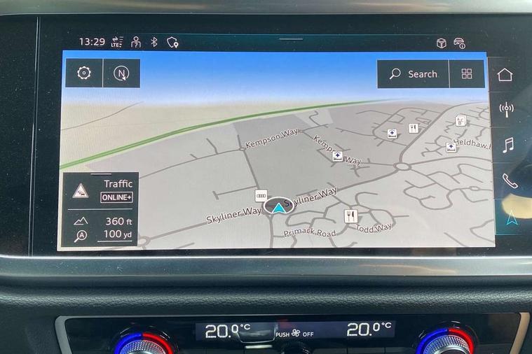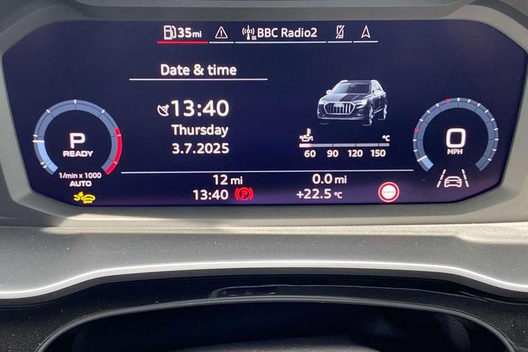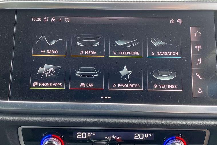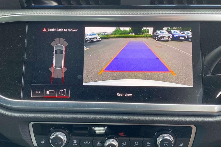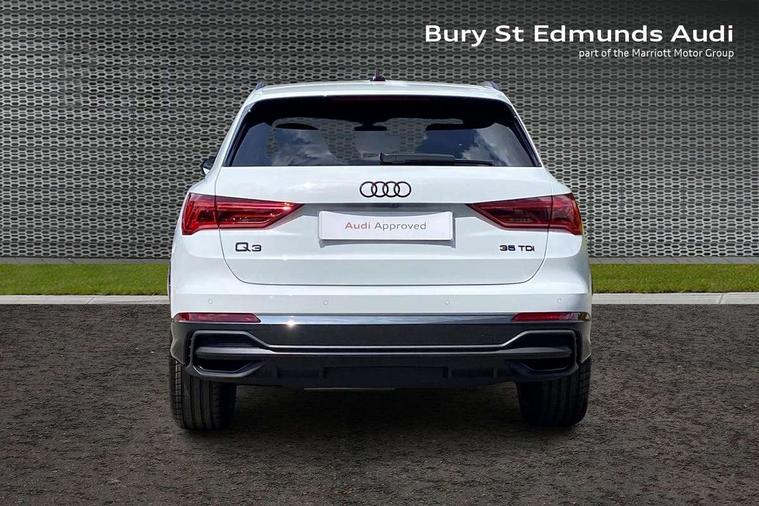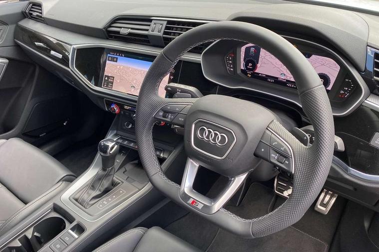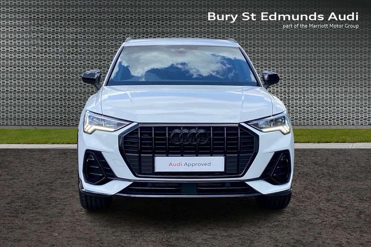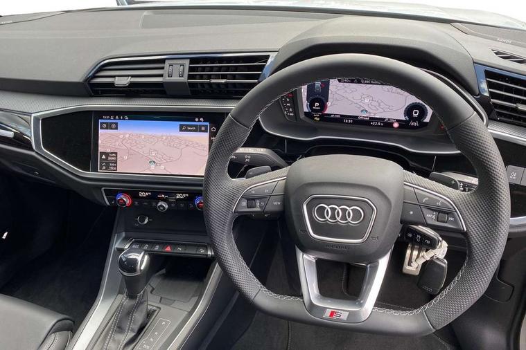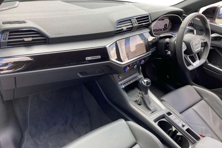 Amazon alexa Integration, Audi connect safety and service, Audi drive select, Audi lane departure warning, Audi Virtual Cockpit - 10.25" display, Bluetooth interface, Camera based traffic sign recognition, Distraction and Fatigue warning, Legal emergency call, MMI Navigation Plus with high resolution 10.1 inch touchscreen colour display, Power operated tailgate, Progressive steering, Service interval indicator, Smartphone interface includes wireless Apple carplay/Android Auto, Start stop system with recuperation, Voice control system with natural language interaction, Diesel particulate filter, Sports suspension, 2 USB-C ports with charge and data functions, 6 passive loudspeakers, DAB digital radio module, Acoustic windscreen, Anthracite black radiator grille, Audi Beam uses LEDs to project the Audi logo onto the ground as you exit your Q3, Auto dimming door mirrors, Auto dimming frameless rear view mirror, Black roof rails, Electrically folding, adjustable and heated door mirrors with integrated LED side indicators and kerb view function for passenger side, Front and rear electric windows, Front fog lights, Grille vertical bars in aluminium silver/Matt, High gloss black finish B and C pillars, LED Dynamic rear indicators, LED headlights with LED daytime running lights, LED rear lights, LED third brake light, Privacy glass dark tinted rear and rear-side windows (from B-pillar backwards), Rain and light sensors, Rear diffuser grille in grained matt black, Rear diffuser strip in matt anthracite black, Rear side wing doors, Rear wiper, S line bumpers in contrasting Manhattan grey, Variable front intermittent wipers, 12V socket in rear centre console, 3 seat bench in 2nd row, 40:20:40 folding with manual adjustment for 60:40 forwards/backwards position and backrest angle, Adjustable rear seat bench/backrest with centre armrest and cupholder, Black carpet mats, Black cloth headlining, Dual zone electronic climate control, Electric lumbar support, Front and rear black floor mats with contrast stitching in rock grey, Front and rear headrests, Front centre armrest, Height and reach adjustable steering wheel, Illuminated door sill trims with S logo, ISOFIX child seat mounting for front passenger with airbag deactivation and outer rear seat including top tether attachment point for outer rear seats, Luggage compartment sill protection in stainless steel, Manual front seats with height adjustment, Perforated leather gearknob, Single front passenger seat, Stainless steel pedals, Twin leather upholstery with front sport seats + S embossing, Black styling pack - Q3, Non smoking pack - Q3, 3x3 point rear seatbelts, 6 airbags - Driver, front passenger, curtain and side windows, Audi pre-sense front with pedestrain and cyclist recognition, Electrically operated child locks on rear doors, Electromechanical parking brake, Electronic stabilisation control including ABS, ASR and EDL, Front seatbelt reminder, Hill descent control, Hill hold assist, Pre sense basic, Seatbelt monitoring, Tyre pressure warning, Warning triangle and first aid kit, Anti theft wheel bolts, Immobiliser, Remote central locking, Thatcham approved category 1 anti theft alarm, Aluminium look interior elements, Detail dashboard around MMI touch colour display in glass look, black with surround in aluminium look, Leatherette door armrest, Piano black inlay,