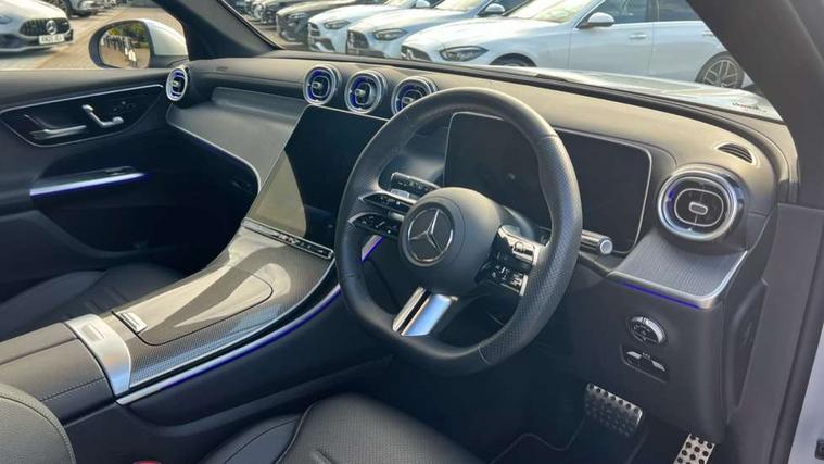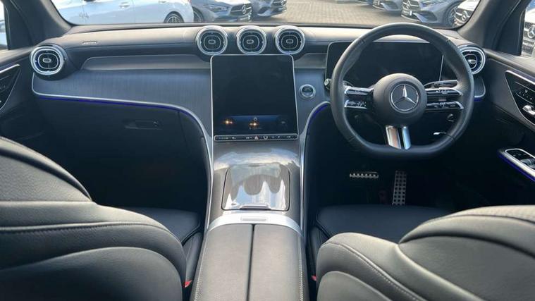 11.9" high resolution multimedia colour display, 12.3" Digital individually configurable instrument display, Acoustic presence indicator, Active lane keeping assist, Attention assist, Blind spot assist, Bluetooth interface for hands free telephone, Collision prevention assist plus, Cruise control with speedtronic variable speed limiter, Dashcam - front camera for video recording, Direct steer speed sensitive steering, DYNAMIC SELECT with a choice of driving modes (ECO, Comfort, Sport, Sport+ and Individual), eCall emergency call system, ECO start/stop function, Fingerprint scanner, Fluorescent jacket for driver, Hard disc navigation, Instrument display in miles with English lettering, MBUX augmented reality for navigation, MBUX navigation premium, MBUX voice control activated by keywords "Hey Mercedes", Mercedes me connect, Outside temperature display, Remote boot release, Remote services, Road sign recognition system, Service indicator (ASSYST), Smartphone integration, Status display for rear seat belts in instrument cluster, Traffic sign assist, Trip computer, Wireless charging, 48V Mild hybrid technology, 4MATIC permanent four wheel drive, 62 litre fuel tank, 9G TRONIC plus automatic transmission, Petrol Particulate Filter (PPF), Sport suspension, DAB digital radio tuner, MBUX extended functions, Mercedes benz sound system, Pre installation for Mercedes Benz Link, Adaptive brake lights, Adaptive high beam assist plus, Aluminium look running boards with rubber studs, Aluminium roof rails, AMG bodystyling front apron, rear apron and side skirts, AMG Line exterior, Auto headlights, Body colour bumpers, Body colour door mirrors, Digital light LED headlights, Electrically adjustable door mirrors, Front and rear electric windows, Headlight washers, Heat insulating dark tinted glass, Heated rear window, High level LED brake light, Integrated LED daytime running lights, LED indicator lights, LED rear fog lights, LED tail lamp, Motor way mode function and locator lighting, Noise acoustic glass, Radiator grille with Mercedes Benz pattern and integreated Mercedes star and louvre in dark grey matt with chrome inlay and black frame, Rain sensor windscreen wipers, Range adjustable headlights, Rear side wing doors, Rear wiper, Transparent Bonnet, Two chrome plated tailpipe trim elements, Variable front intermittent wipers, Welcome and follow-me home light functionality, Wider wheel arch for AMG wheels, 3 seat bench in 2nd row, 40:20:40 split folding rear seats, Ambient lighting premium, AMG line interior, Artico man-made leather upholstery, Audio and onboard settings control on multifunction steering wheel, Automatic child seat recognition sensor, Black fabric roof lining, Black floor mats with AMG lettering, Double cup holder in centre console, Easy-pack removable load compartment cover, Electrically height/reach adjustable steering column, Front centre armrest with stowage compartment, Front head restraints, Galvanised steering wheel gearshift paddles, Heated front seats, Illuminated door sill panels with Mercedes Benz lettering, Illuminated glove compartment, Instrument panel and beltlines in ARTICO manmade leather in nappa look, Multifunction sports steering wheel in nappa leather, Rear centre headrest, Rear head restraints, Rear top tether child seat ISOFIX attachment, Single front passenger seat, Sports pedals with stainless steel surfaces and rubber studs, Sports seats, Sun visors, THERMATIC 2 zone automatic climate control, Anti theft protection package - GLC, Boot comfort package - GLC, Exterior chrome package - GLC, Interior chrome package - GLC, Interior lighting pack - GLC, Keyless-Go comfort package - GLC, Memory pack - GLC, Mirror pack - GLC, Parking package with 360 degree camera - GLC, Seat comfort package - GLC, Stowage space package - GLC, USB Plus Pack - GLC, 3 rear 3 point seatbelts, Active braking assist, Anti-lock braking system (ABS), ASR traction control, Automatic front passenger airbag deactivation, Black seat belts, Brake calipers with Mercedes-Benz lettering + perforated brake discs, Braking system with larger brake discs on the front axle, Child proof door locks, Dual-stage airbags - driver and front passenger, driver knee bag and window bags for driver, front passenger and rear passengers, Electronic parking brake, Electronic stability programme (ESP) with curve dynamic assist and cross wind assist, Front and rear seatbelt reminder, Front passenger seat occupancy sensor, Front seatbelt pretensioners, Hill start assist, Tyre pressure monitoring system, Warning triangle and first aid kit, Automatic door locking, Guard 360 degree vehicle protection plus, Interior protection/immobiliser, Remote central locking, Centre console in metal structure finish, Metal structure trim, 20" AMG 5 spoke aerodynamically optimised light alloy wheels in painted black with high sheen finish, Summer tyres, TIREFIT with tyre inflation compressor,