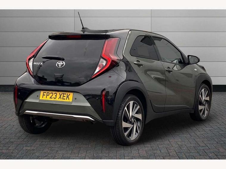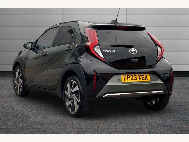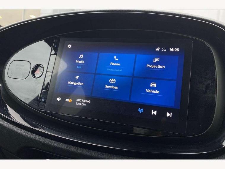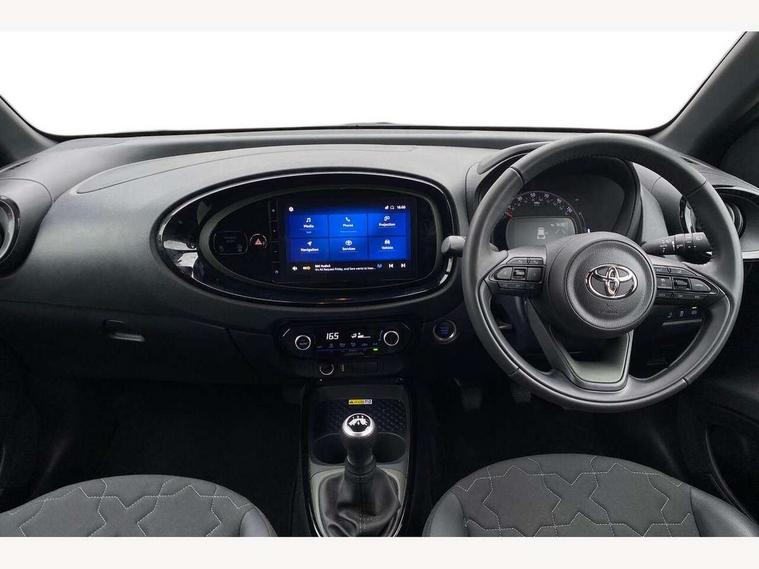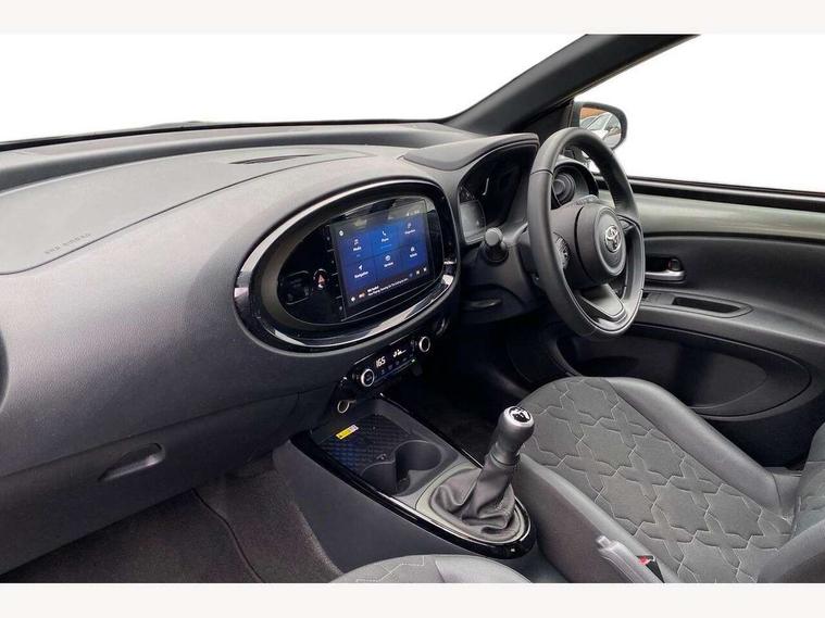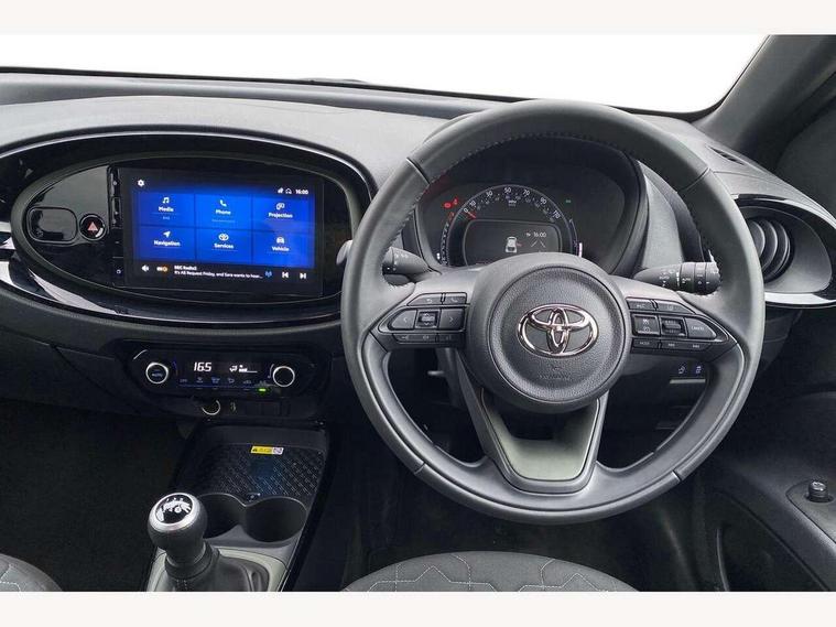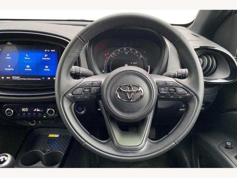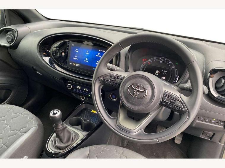 4.2" TFT colour screen, Adjustable speed limiter, Analogue speedometer, Bluetooth connectivity, Digital tachograph, Driver attention alert system, eCall emergency call system, Electric power steering, Front and rear parking sensors with auto brake, Intersection turn assist, Key reminder warning, Noise reduction kit, Pre collision system with emergency steering assist, Remote boot door release on key, Reversing camera with static guide lines, Smart entry and push button start, Speed limit display, Start and stop, Wireless charger, Wireless Smartphone Integration includes Apple CarPlay and Android auto, Vehicle Stability Control (VSC), 4 speakers, 9" HD multimedia display touch screen with Toyota smart connect, DAB digital audio broadcast, USB connector, Auto headlights, Auto wipers, Automatic headlights cut-off, Automatic high beam On/Off switch, Bicycle towing hook, Black fog light surrounds, Black side protection mouldings, Black wheel arch mouldings, Body colour door handles, Body coloured front bumper, Boot door scuff plate, Eclipse black rear bumper, Electric heated door mirrors, Follow me home headlights, Front and rear underruns in silver, Front fog lights, Front power windows, Gloss black door mirrors, Gloss black upper front grille, Headlight cut-off reminder, LED daytime running lights guide, LED front light guide, LED High mounted stop lamp, LED projector headlights, Manual day/night rear view mirror, Manual headlight levelling, Pagoda roof, Power adjustable door mirrors, Power back door, Privacy glass, Rain sensor, Rear combination lights LED bulb type, Rear side wing doors, Rear windscreen defogger, Rear windscreen wiper, Remote hazard lights system, Short antenna, Variable intermittent windscreen wipers, 12v power outlet - front, 2 seat bench in 2nd row, 3 spoke leather steering wheel, 50/50 split folding rear seat, Adhesive roof headlining, Adjustable speed limiter switch on steering wheel, Audio and telephone switches on steering wheel, Auto air conditioning, Black roof lining, Body colour satin anodised insert on steering wheel, Boot light, Centre room light, Chrome interior door handles, Chrome surround on air conditioning buttons, Clean air filter, Console box storage, Floor mats, Front and rear cup holders, Front head rest deco art, Front head restraints, Height adjustable driver seat, Intelligent adaptive cruise control switch on steering wheel, ISOFIX child restraint system on rear seats, Lane departure alert switch on steering wheel, Leather gearshift knob, Light blue ambient lighting in centre console, Manual tilt steering wheel, Manually reclining and sliding driver seat, Manually reclining and sliding front passenger seat, Multimedia switches on steering wheel, Partial synthetic leather upholstery, Pollen filter, Rear door pockets, Rear head restraints, Satin silver insert on gear shift knob, Single compartment glovebox with lights, Single front passenger seat, Soft tonneau cover, Sun visors with mirror on driver and passenger side, Voice recognition switch on steering wheel, Toyota safety sense pack - Aygo X, Anti lock braking system + Electronic brake force distribution, Child safety door lock, Emergency brake light signal (EBS), Hill start assist control (HAC), Passenger airbag on/off switch, Seat belt reminder for front and rear seats, Supplement restraints system (SRS) - 6 airbags, Traction control, Tyre pressure warning system, Immobiliser, Remote power door locks, Black wheel centre caps, Tyre repair kit,