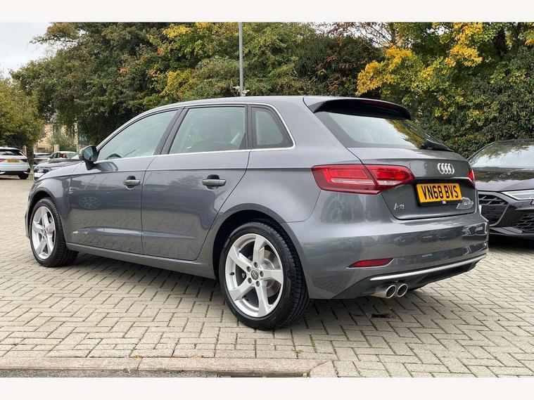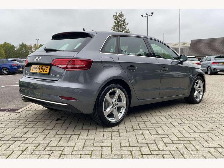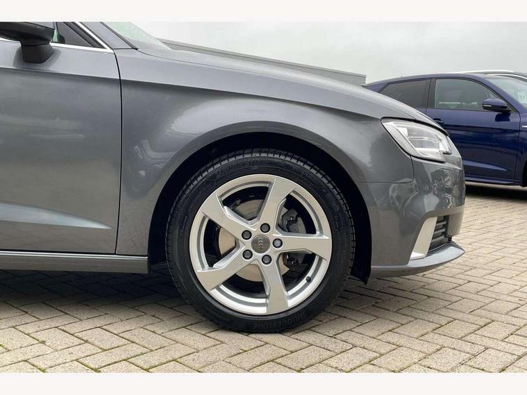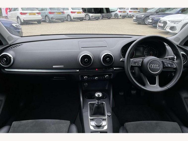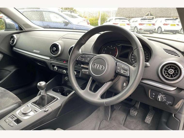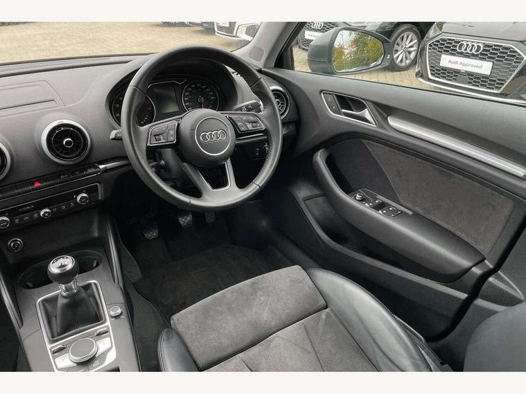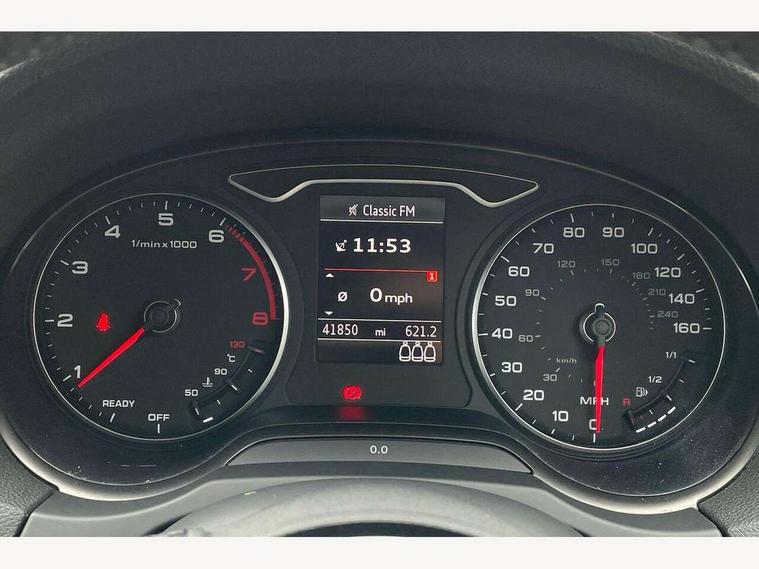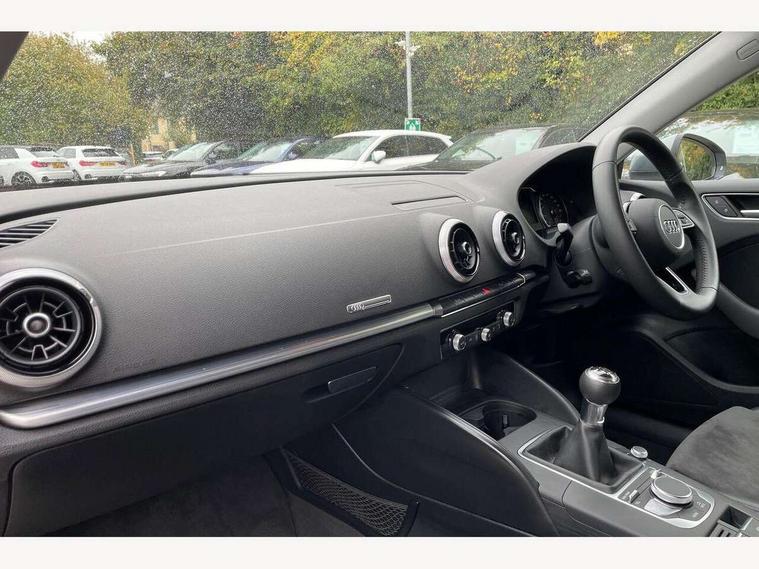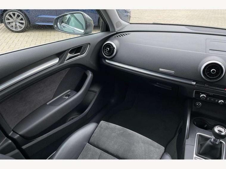 Audi connect, Audi drive select, Audi smartphone interface, Automatic start/stop system, Colour driver's information system display, Electro - mechanical power assisted steering, Mobile telephone preparation - bluetooth interface, SD card based satellite navigation system, Service interval indicator, Speed limit display, Voice control system, Voice recognition for navigation system, 2 USB interfaces and Aux-In jack, Audi music interface, CD player, DAB Digital radio, MMI radio plus with 7" colour MMI screen and MMI controller, Aluminium window trim, Auto dimming rear view mirror with light and rain sensors, Body colour bumpers, Body colour door mirrors, Body colour roof spoiler with aerodynamic inserts in high gloss black, Chrome exhaust tailpipes, Electric front windows, Electric rear windows, Electrically adjustable and heated door mirrors with integrated LED side indicators, Heated windscreen washer jets, Matt black radiator grille, Rear wiper, Sport specific side air inlet grille and diffuser insert, Xenon headlights with LED Daytime running light, 3 adjustable rear headrests, 4 lashing points to secure luggage, Adjustable front centre armrest, Aluminium door sill trims, Cloth headlining, Dual zone electronic climate control, Front and rear interior lights with delay, Front sports seats, Front/rear floor mats, Glovebox light, Height/depth adjustable steering column, Isofix child seat preparation for front passenger/outer rear seats inc passenger airbag deactivation, Rock grey headlining, Storage compartments in doors side trims, centre console and under front drivers seat, Non smoking pack - A3, 3 point seatbelts on all seats, ABS/EBD, Active bonnet, Active front headrests, Airbags - front driver/passenger, front & rear side, curtain, drivers knee, ASR, EDL, Electromechanical parking brake, ESC - Electronic Stability Control + traction control, Front passenger airbag deactivation, Hill hold assist, Manual rear child locks, Multi-Collision braking, Seatbelt warning, Tyre pressure warning, Warning triangle and first aid kit, Anti theft alarm, Anti-theft wheel bolts, Remote control central locking, Thatcham category 1 alarm + immobiliser, Aluminium air vent surrounds, Aluminium mistral silver inlay, Aluminium trim elements,