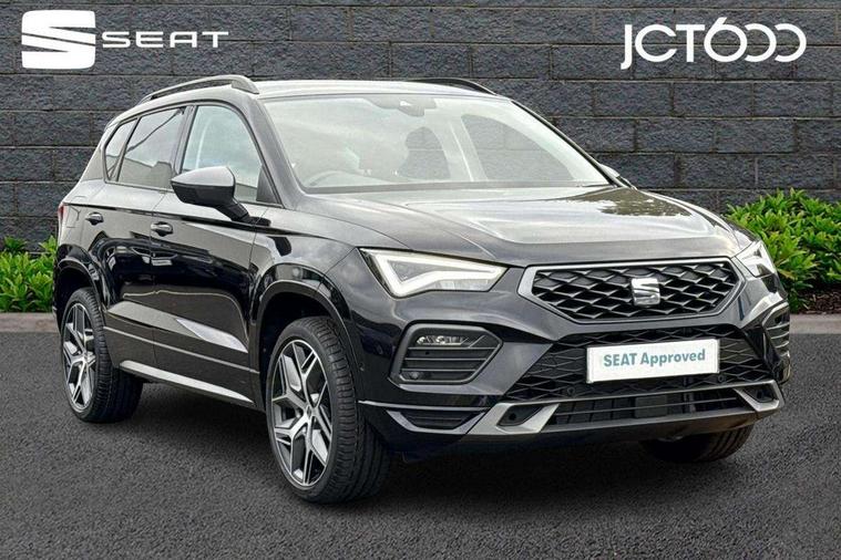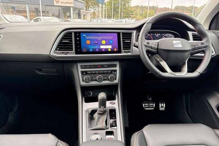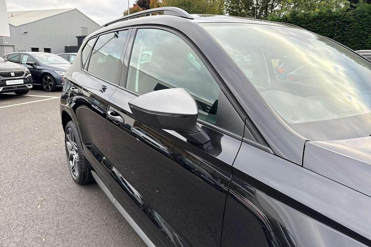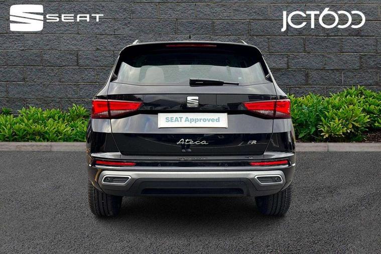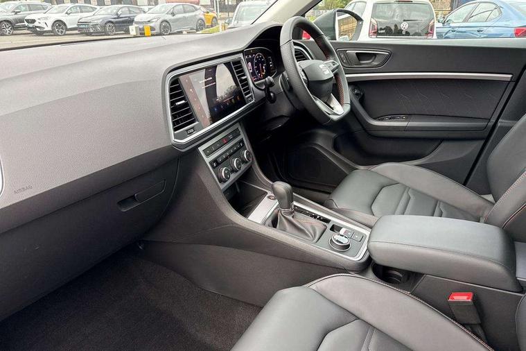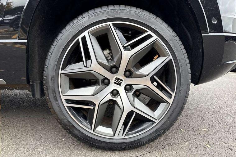 10" Digital cockpit, Cruise control system with speed limiter, E-call, Outside temperature gauge, Progressive power assisted steering, SEAT drive profile with driving experience button - Normal, Sport, Eco and Individual mode, gearshift, steering and throttle response, Self parking functionality (includes front and rear parking sensors), Start/stop system, Tailgate, Trip computer, wired and wireless full link smartphone integration, Wireless phone charger, Steering wheel mounted audio/phone controls, Black roof rails, Black side window trim, Body colour bumpers, Body coloured wheel arch surrounds, Chrome front grille frame, Dark tinted rear windows, Daytime running lights, Door mirrors with welcome light silhouette, Dynamic headlight range control with self adjusting whilst driving, Electric adjustable/heated/folding door mirrors, Front and rear electric windows, Full LED headlamps with lens and LED front fog lamps with cornering function, Illuminated aluminium front door sill, LED 3rd brake light, LED rear tail lights with dynamic indicators, Rear exhaust tailpipe, Rear fog lights, Rear side wing doors, Rear spoiler, Rear wash/wipe, Variable front intermittent wipers, 12v socket in front, 3 seat bench in 2nd row, 60/40 split folding rear seat, Aluminium pedals, Dual zone climate control, Electric adjustable driver seat with memory function, Front and rear head restraints, Front centre armrest, Front seat back storage pockets, Heated front seats, Height adjustable passenger seats with lumbar adjustment, ISOFIX points in outer rear seats with top tether anchorage points, Leather sports steering wheel and gear knob, Leather upholstery with front comfort seats, Manual lumbar support on driver seat, Rear armrest and easy back seat release mechanism from boot, Single front passenger seat, Steering wheel mounted gearshift paddles, Convenience pack - Ateca, Interior lighting pack - Ateca, Navigation system pack with DAB - Ateca, Safety and driving pack with attention and drowsiness assist - Ateca, 3x3 point rear seatbelts, ABS, Traction control system (TCS), Electronic stability control (ESC) and Electronic differential lock system (XDS), Airbags - Driver and front passenger airbag with deactivation, front side, two curtain and driver's knee airbags, Electric parking brake with auto hold function, Front and rear seatbelt reminder, Front assist with autonomous emergency braking, Hill hold control, Manual rear child locks, Single tone horn, Tiredness recognition system, Tyre pressure monitoring system, Alarm, Keyless entry, Locking wheel bolts, Remote central locking, Chrome interior detailing, 19" Exclusive machined alloy wheels with decorative inserts 36/7 in cosmo grey,