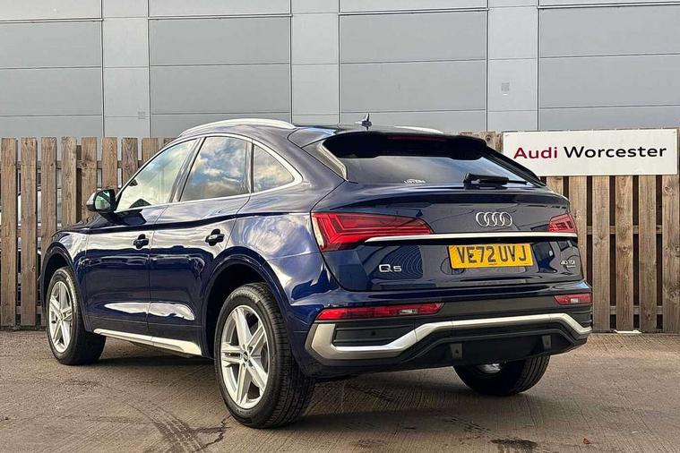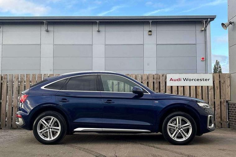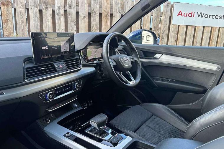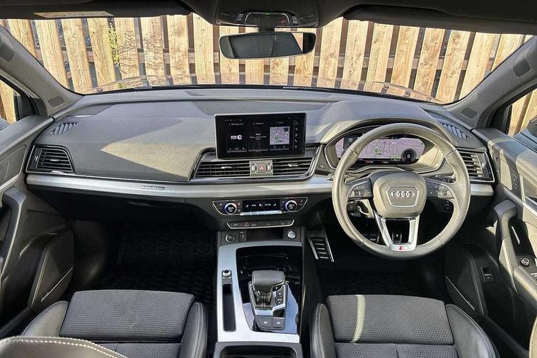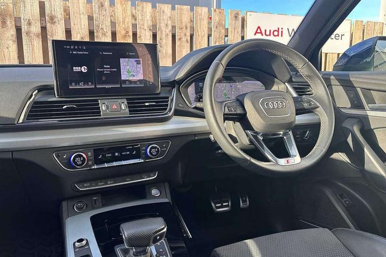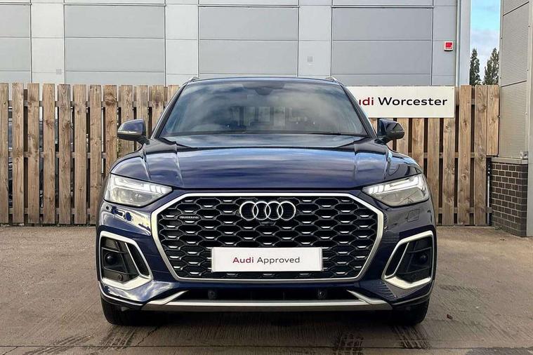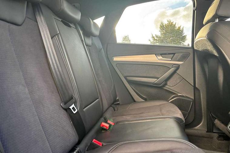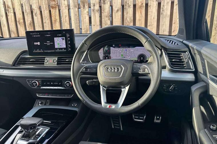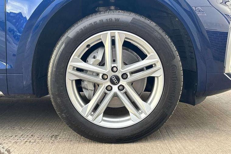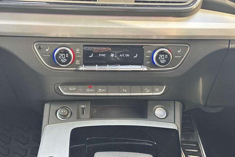 Audi connect safety and service (e-call), Audi connect with Amazon Alexa Integration, Audi drive select, Audi virtual cockpit plus with 12.3" screen and three different layout designs, Audi wireless smartphone interface, Automatic start-stop system with coasting functionality and efficiency programme, Bluetooth interface, Electro - mechanical power assisted steering, MMI navigation plus with 10.1" touch screen, Power tailgate, Reversing camera, Service interval indicator, Voice control system with Audi hotword activation "Hey Audi", Diesel particulate filter, Quattro on demand, S line sports suspension, 2 x USB charging port with aux input socket, DAB Digital radio, Acoustic windscreen, Aluminium roof rails, Audi matrix LED headlights with dynamic front and rear indicators, Auto dimming door mirrors, Auto dimming rear view mirror, Automatic headlight adjustment, Automatic headlights and windscreen wipers, Body colour door mirrors, Body colour rear diffuser with matt aluminium silver surrounds, Body colour underbody protection, Chrome plated exhaust trims, Daytime running lights, Door sills in Selenite silver, Electric adjustable/heated/folding door mirrors, Front air inlet surrounds in aluminium, Front and rear electric windows, Front radiator grille in honeycomb design, Headlight washers, High level LED brake light, Lower bumpers painted in contrast Manhattan grey, Rear chrome trim strip below lights, Rear privacy glass and rear side windows, Rear side wing doors, Rear wiper, Roof bars, S Line badges on the front wings, S Line front and rear bumpers, S Line rear spoiler, S Line side skirts, 3 rear headrests, 40:20:40 split folding 3 rear bench seat in 2nd row with rear centre armrest, Black cloth headlining, Comfort front centre armrest, Contrast stitching on seats, steering wheel and gear lever gaiter, Deluxe 3 zone electronic climate control, Front head restraints, Front/rear floor mats, Gear lever in black leather, Heated front seats, Height/reach adjustable steering column, Illuminated door sill trims with S logo, ISOFIX child seat mounting and top tether, Manual seat adjustment with 4-way electric lumbar support, Removable luggage compartment floor, Single front passenger seat, Stainless steel pedals, Sunvisors with vanity mirrors, Trunk roller cover, High gloss pack - Q5, LED interior light pack - Q5, 3 point seatbelts on all seats, 6 airbags - Driver, front passenger, curtain and side airbags, Electrically operated child locks on rear doors, Electromechanical parking brake, Electronic stabilisation control including ABS, ASR and EDL, Front passenger airbag deactivation, Hill descent control, Hill hold assist, Multi collision brake assist, Pop-up bonnet for pedestrian protection, Pre sense city, Seat belt force limiter, Seatbelt monitoring, Tyre pressure warning, Warning triangle and first aid kit, Anti theft alarm, Anti-theft wheel bolts, Keyless Go access/ignition system, Remote central locking, Matt brushed aluminium inlays,