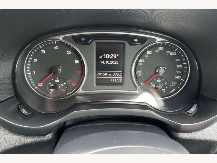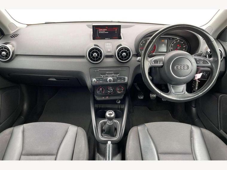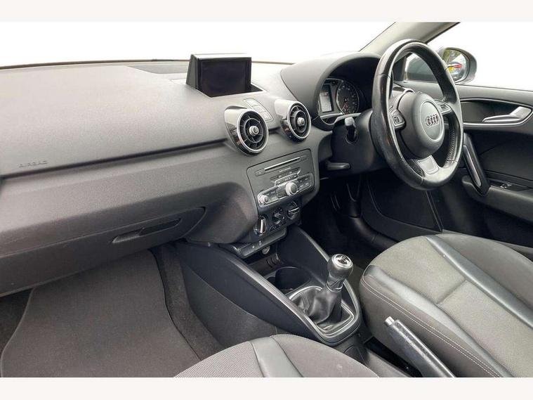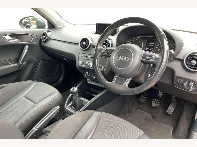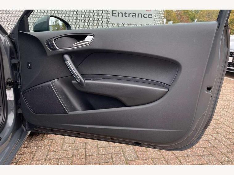 Electro-mechanical PAS, Low washer fluid indicator, Service interval indicator, Voice control system, Additional SD card reader, Audi music interface, Bluetooth audio streaming, DAB Digital radio, Adaptive brake lights, Electric adjustable door mirrors, Electric front windows, Front fog lights, Heat insulating glass, Heated door mirrors, Heated rear windscreen, Rear wiper, 12V Accessory socket in centre console, 3 spoke leather multifunction sports steering wheel, Adjustable rear head restraints, Cupholders in centre console, Door sills trims with aluminium inlays, Front floor mats, Front head restraints, Front seats - 'Easy Entry', Front sports seats, Height adjustable front seats, Illuminated glovebox, Isofix attachments on outer rear seats, Jack and tool kit, Leather handbrake, Lumbar adjustment for front seats, Rake/reach adjustable steering wheel, Split folding rear seats, Connectivity pack - A1, ABS/EBD, Brake assist function, Driver and passenger side airbags, Driver/Front Passenger airbags, EDL, ESP with ASR, First aid kit, Front and rear seatbelt reminder, Front passenger airbag deactivation, Head airbags, Height adjustable front seatbelts, Rear three point seatbelts x 2, Tyre pressure monitor, Warning triangle, Locking wheel bolts, Remote control central locking, Thatcham category 1 alarm + immobiliser, Tyre repair kit,